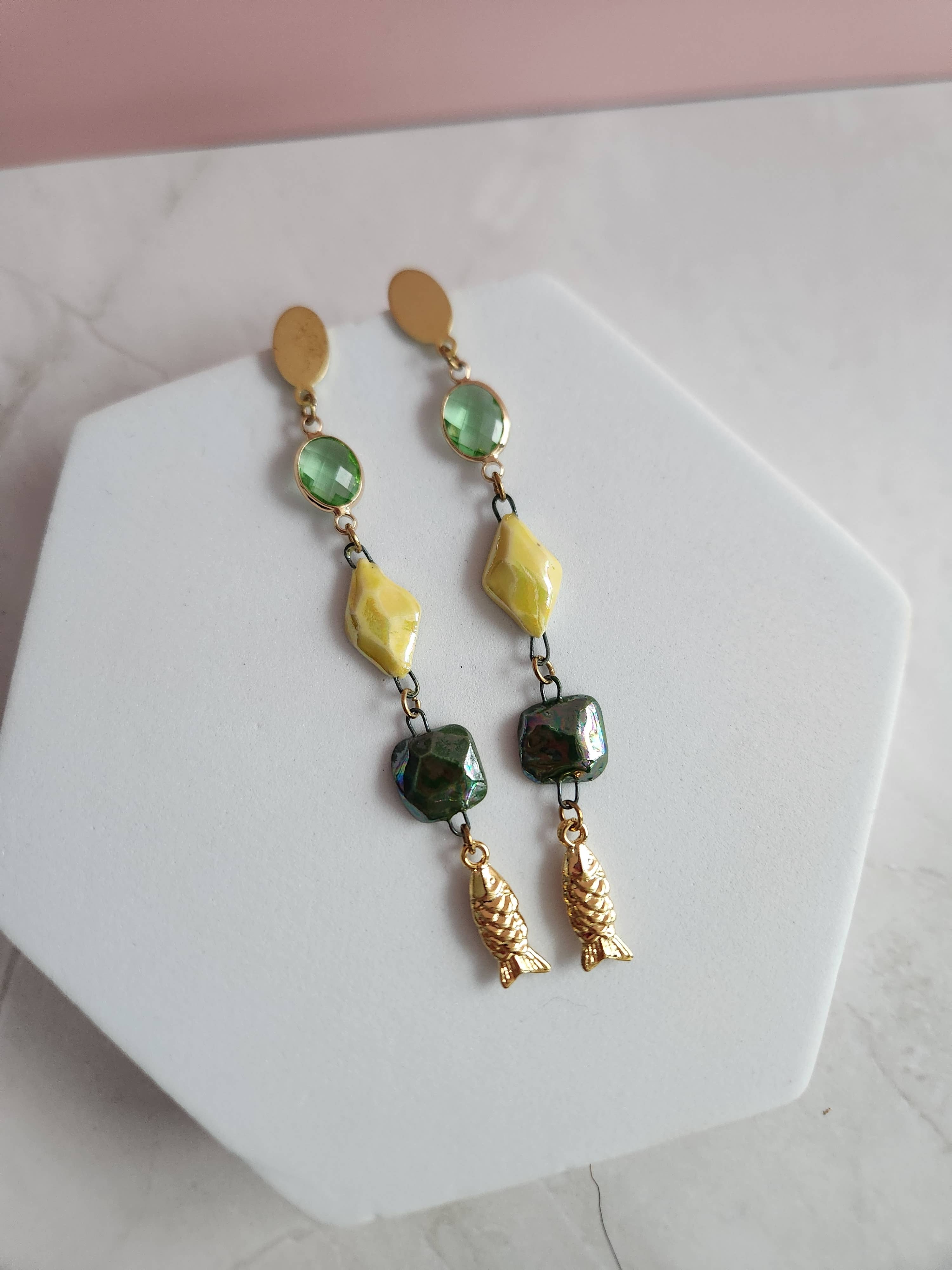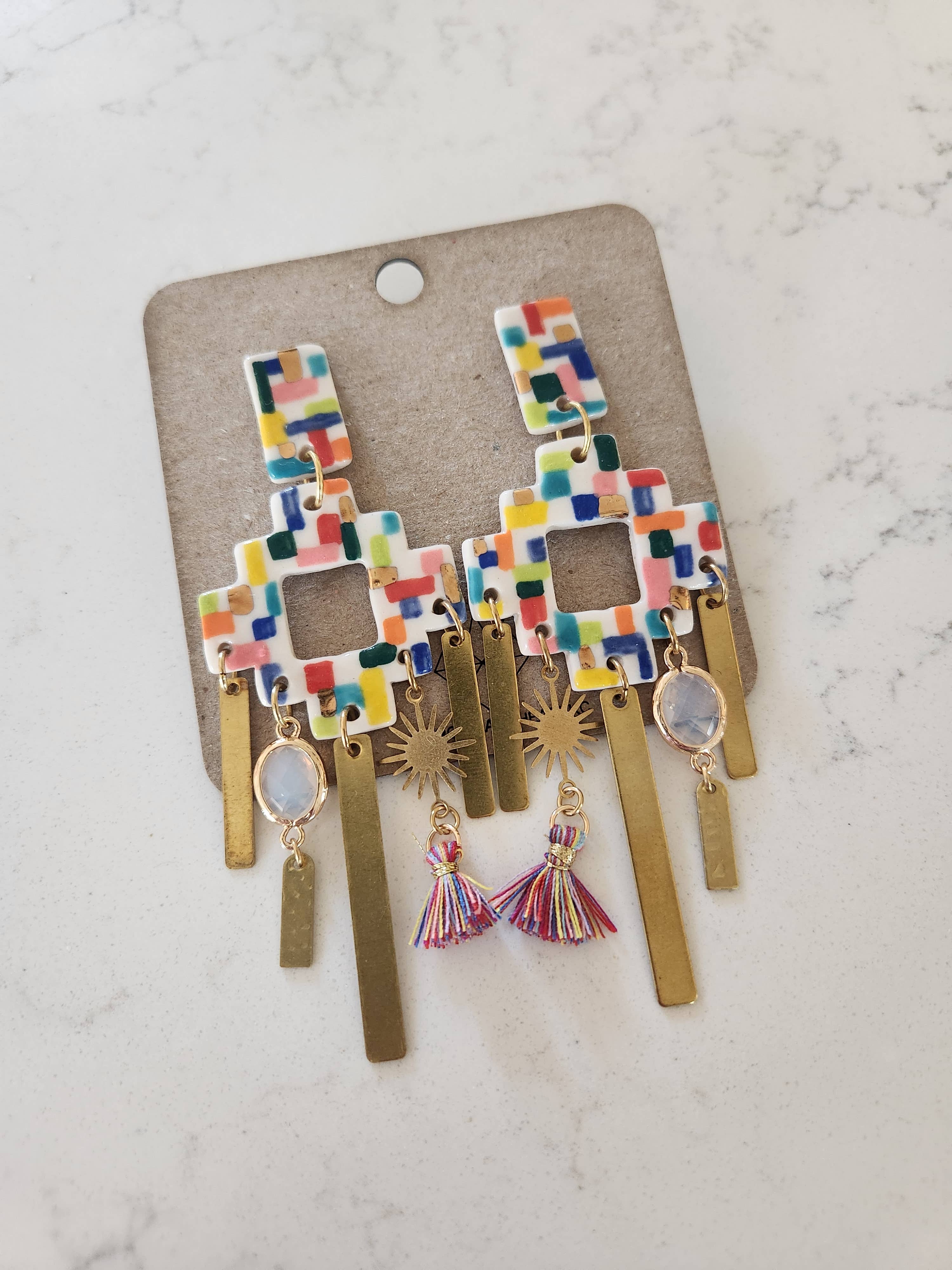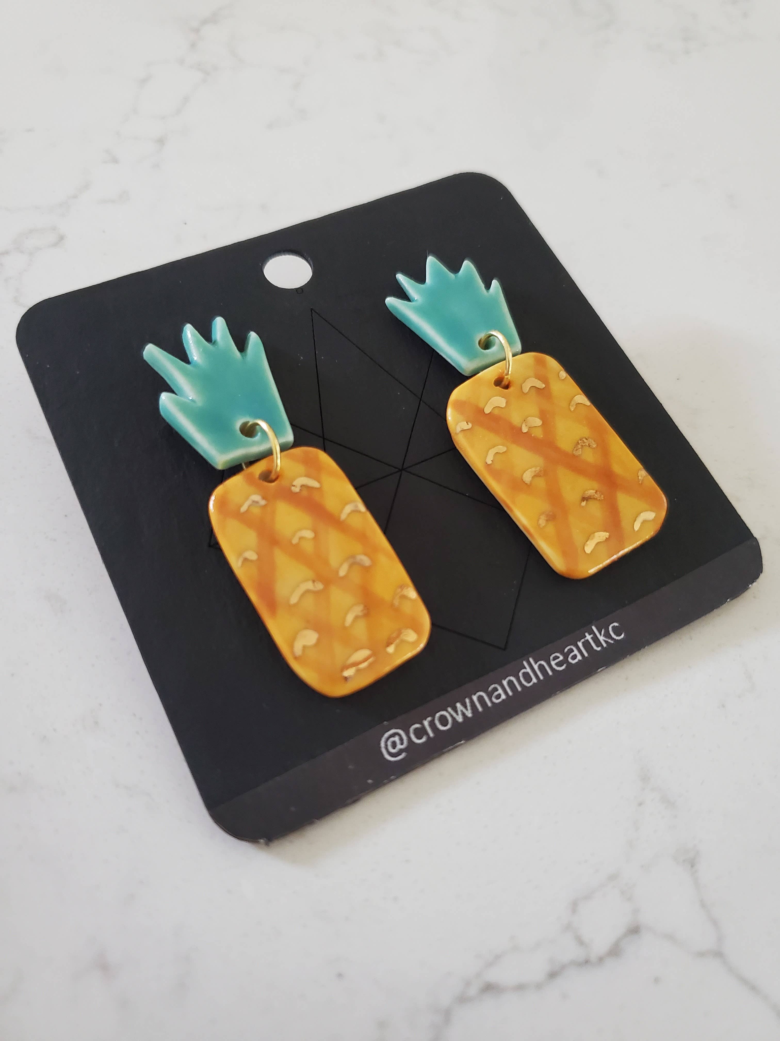 Crown & Heart is the brand name behind my (Sara Kharatyan) collection of modern ceramic jewelry. Created in 2017, the brand is designed to complement any wardrobe with statement pieces ranging from unique and colorful to simple and classic. Each piece is handmade by me in my home studio. The porcelain is cut, dried, and smoothed. Then, each piece is hand painted with a variety of glazes in several layers before being fired. Real 22k gold luster or pearl accents are then added before a second firing. I then assemble and package each piece of jewelry, combining elements of metal, wood, glass, and fibers. Crown & Heart offers a new small batch collection each year, so customers can continue to collect this unique, OOAK wearable art. I am based in Kansas City, Missouri and work as an part-time elementary school art teacher outside of the studio. I am also a wife and mother to two boys. I am a one-person business, so please be mindful when placing orders and check the posted lead time, which can be as long as 3 months when I have high order volumes. I do not accept cancellations if the ship date falls within the posted lead time. Porcelain is a light-weight and durable ceramic, but it is breakable. Pieces should be handled and displayed with care, and customers should be advised to treat their new jewelry as they would any other ceramic ware, taking caution not to drop it on hard surfaces. Thank you for supporting my small business!
