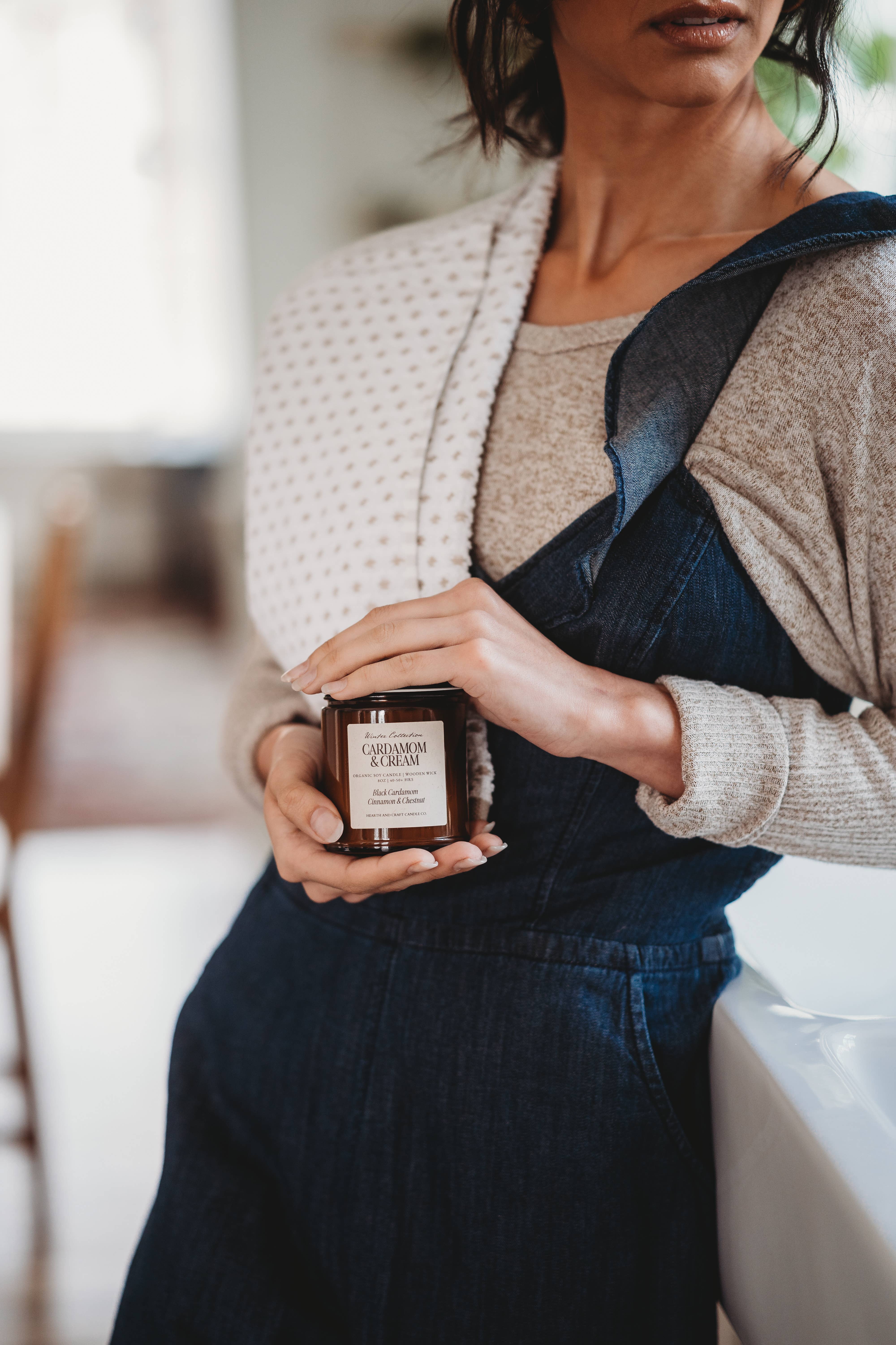 Full fragrance list: https://hearthandcraftcandleco.com/pages/our-fragrances Inspired by “hygge,” the Danish concept of creating coziness and enjoying life's simple pleasures - family, friends, contentment, good vibes and a warm glow. Hearth and Craft Co’s mission is to connect you with your cozy side and to cherish the slower & simple moments in life. Each candle at Hearth and Craft Co. is thoughtfully hand-poured in Lincoln, NE. Offering small batch natural soy wax, wood wick and phthalate free fragrance and essential oils blends - all in eco-friendly & reusable jars, mugs and packing materials.