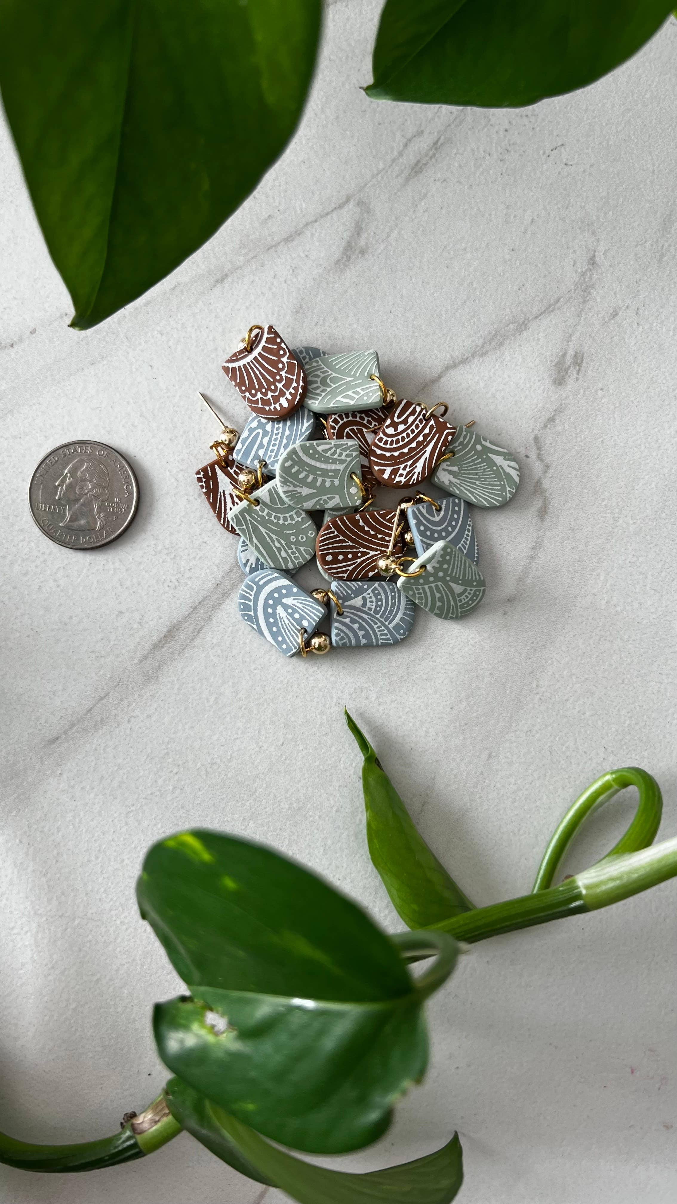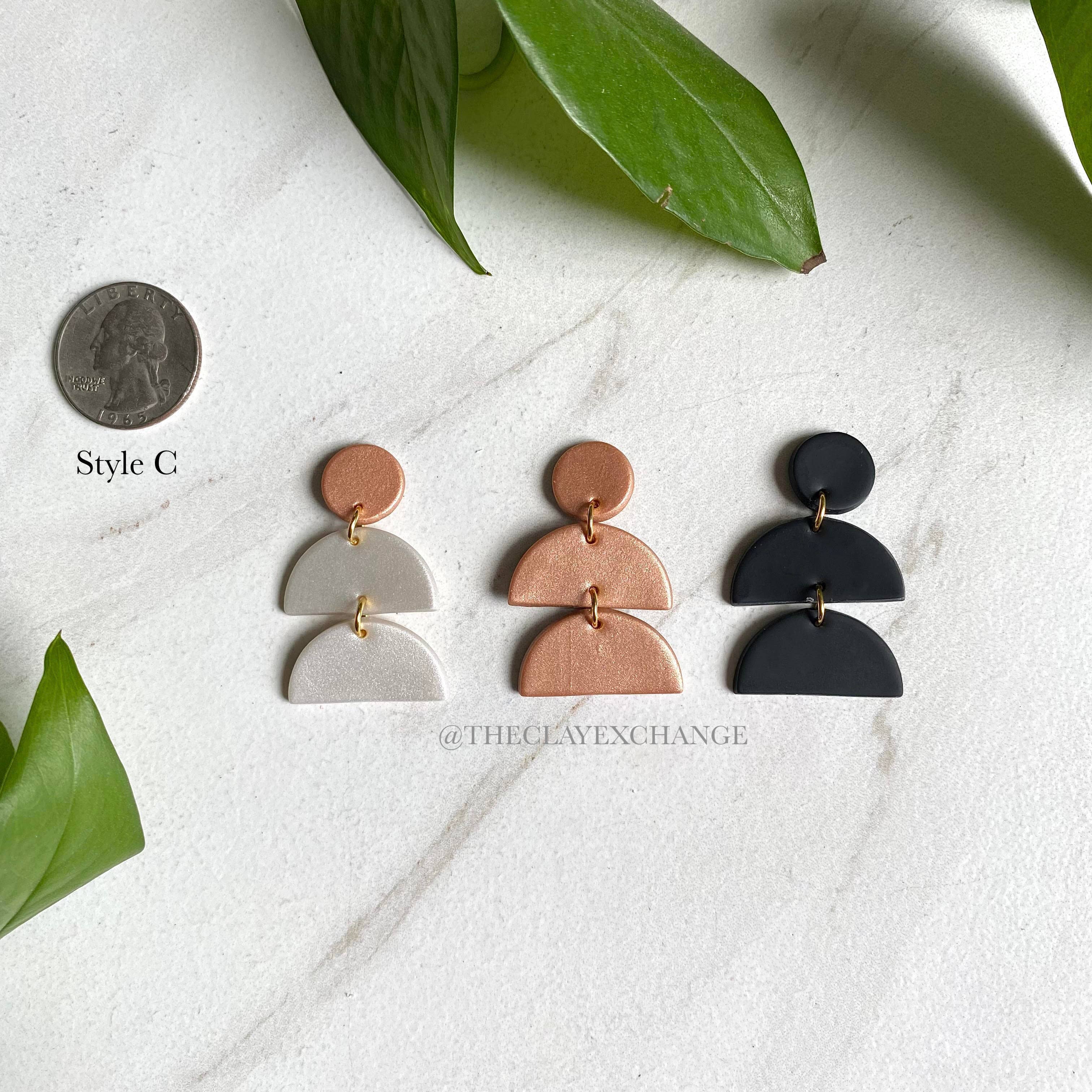 My name is Hayley and I am the maker behind The Clay Exchange! I am a wife, mom, and North Carolina transplant living on the Jersey Shore. The Clay Exchange all sprouted from my desire to make unique, handmade gifts for my sister and friend for their birthdays. I began making clay earrings, having no idea how much I would enjoy it. In the 18 months since making my first pair, I have enjoyed the challenge of perfecting my craft, learning new techniques, and fulfilling orders that ship out all across the United States! I love the challenge of creating my own color palettes from things I see around me and mixing clay to match the color palettes naturally present in everyday life. Thank you so much for being here, for looking at the pieces I create, and for your support!