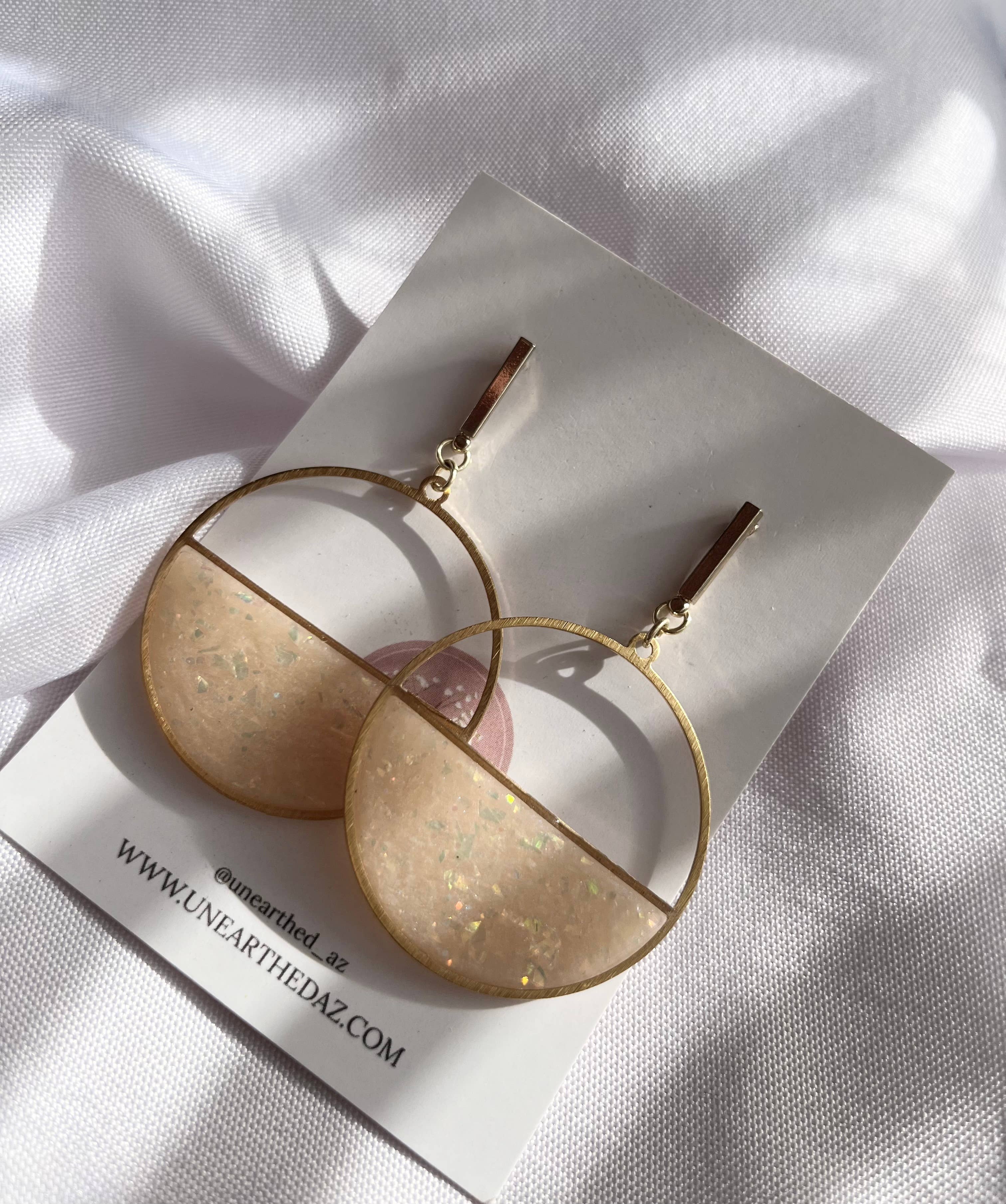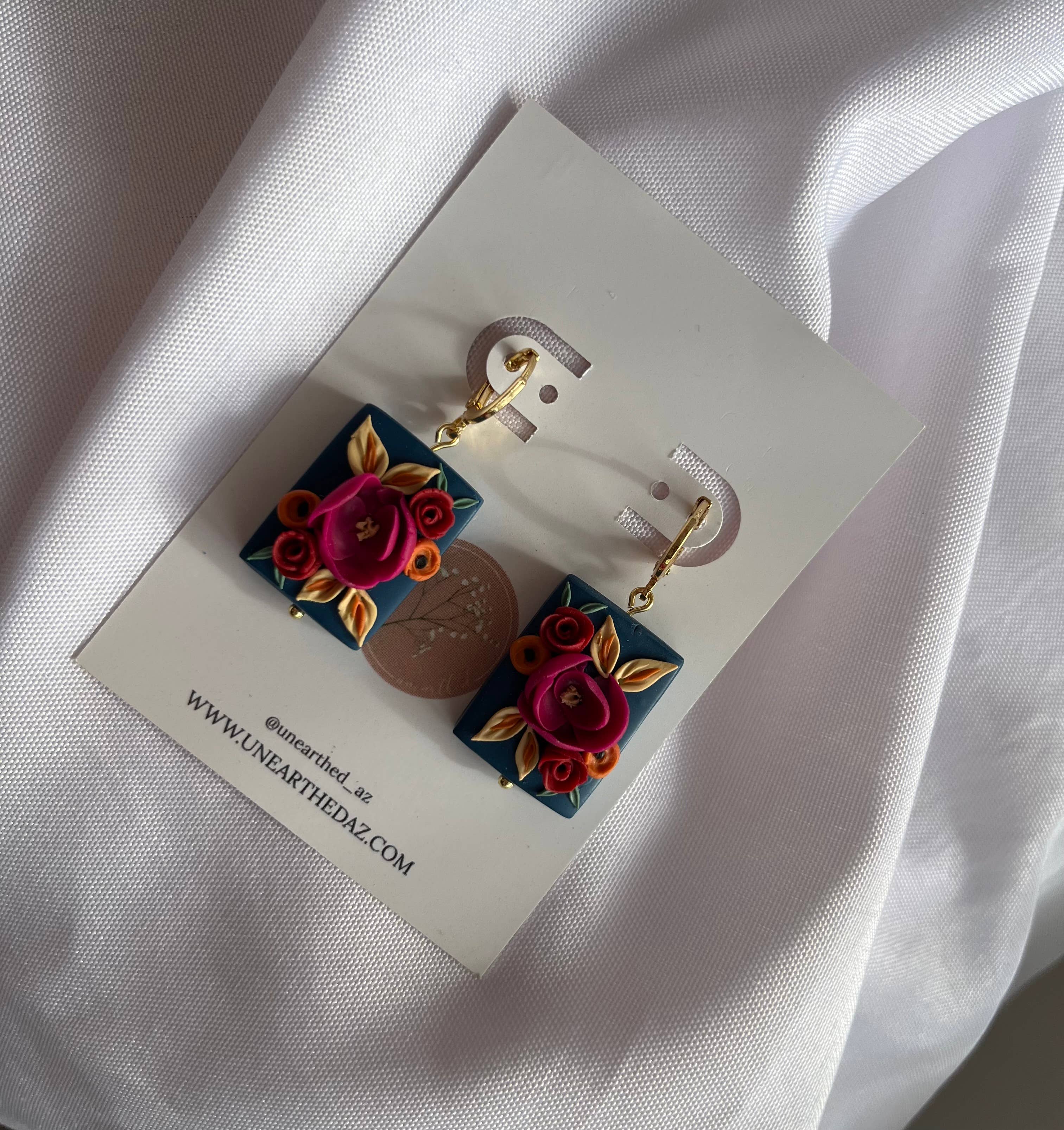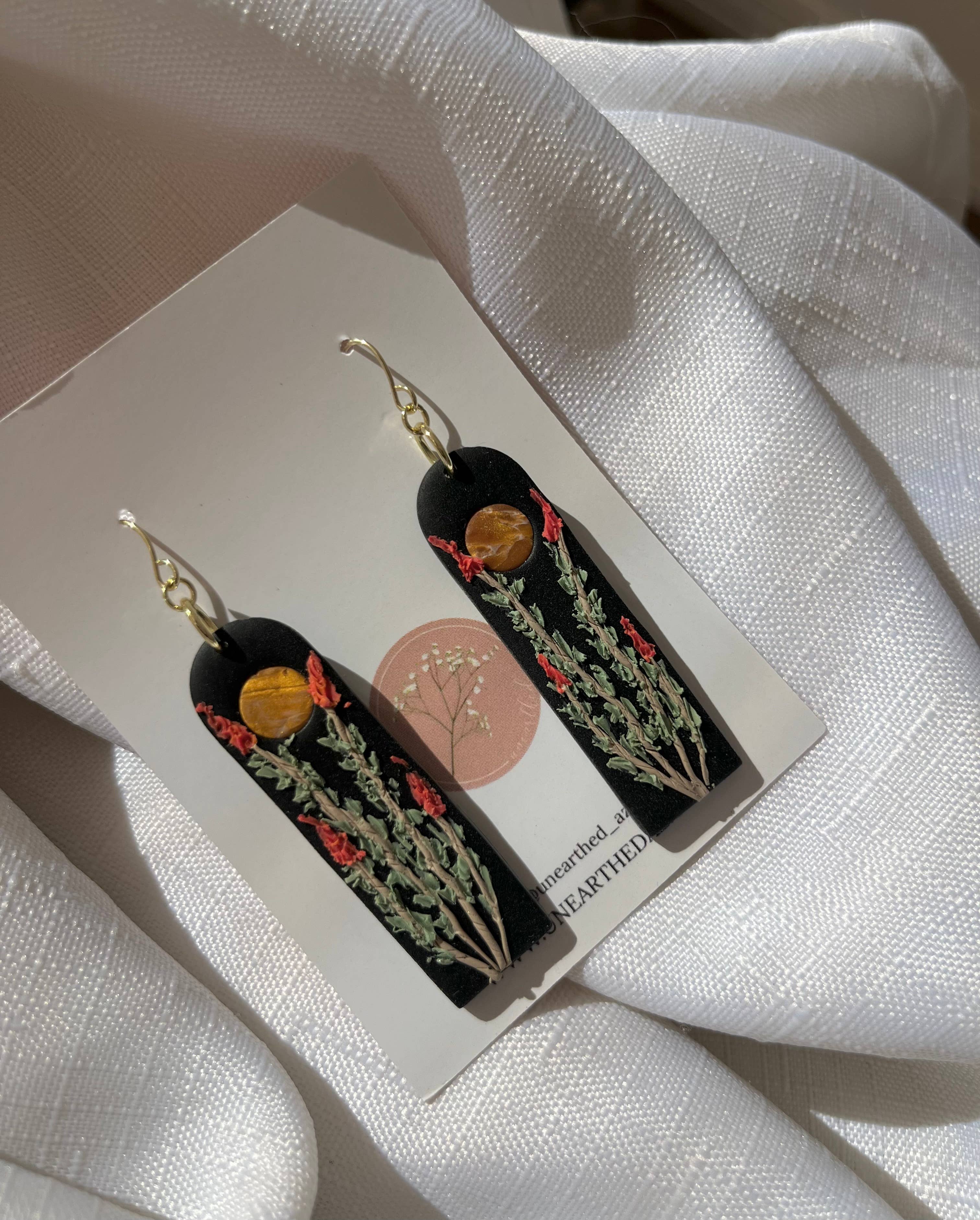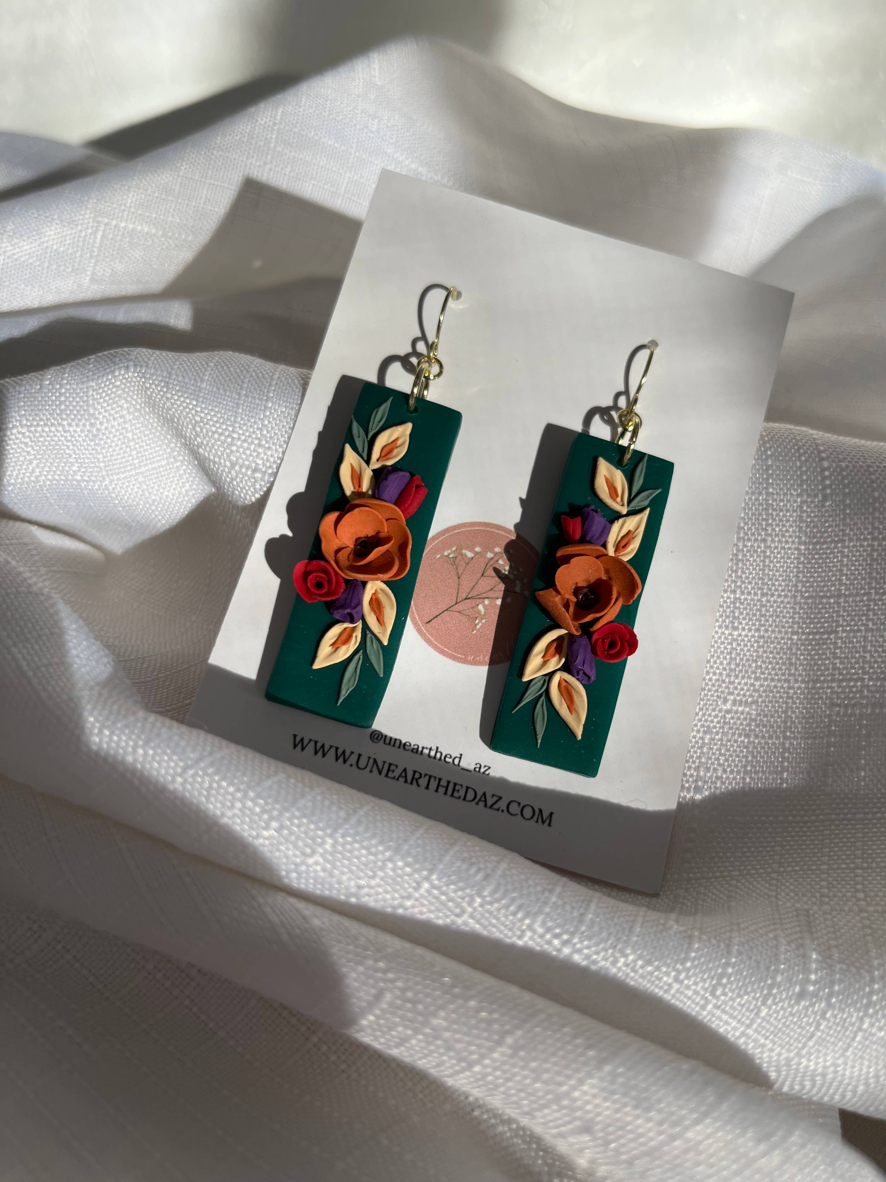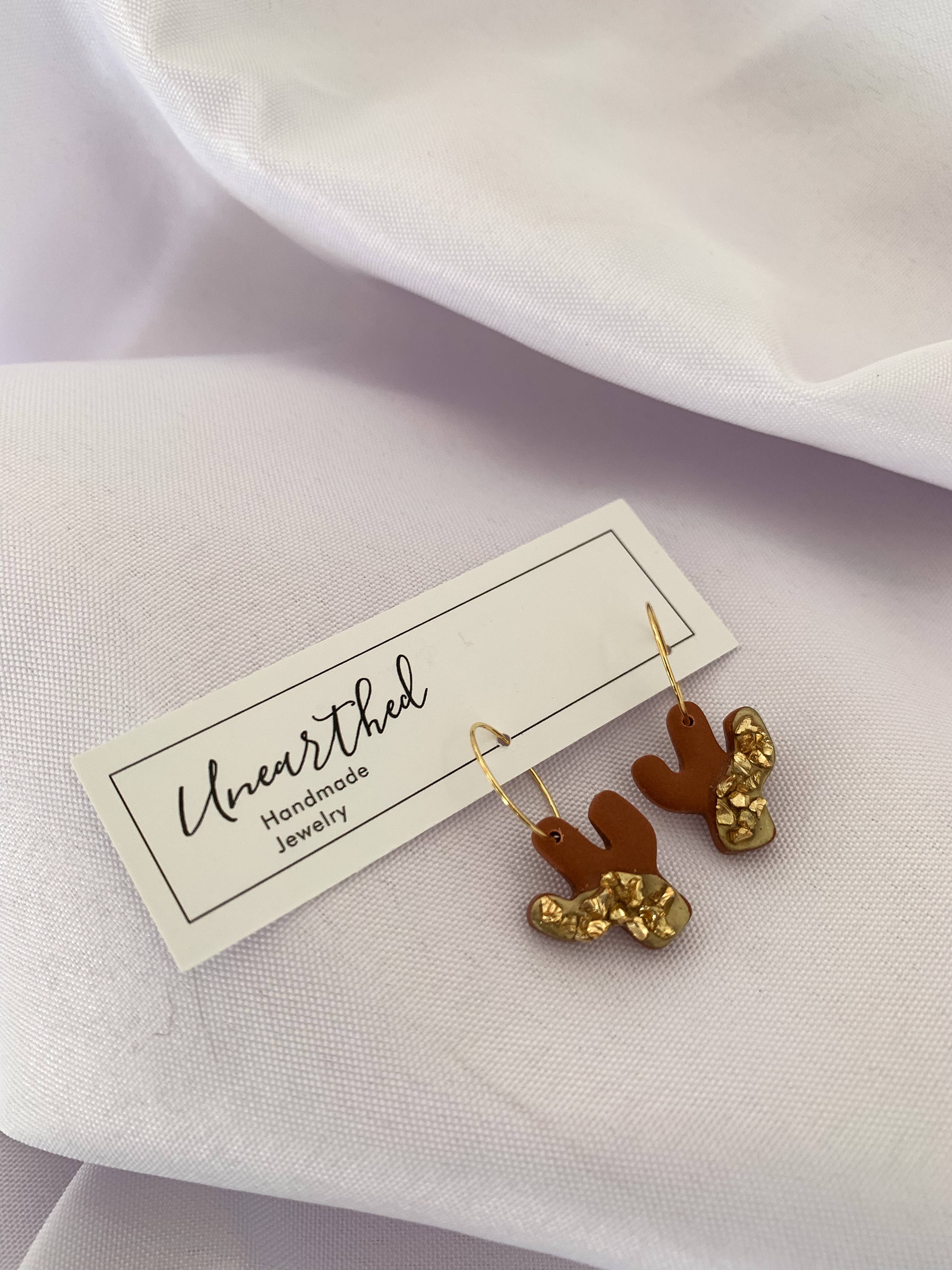Hi! My name is Kathryn Peña, creator and owner of Unearthed. I create jewelry by hand using polymer clay and resin. My brand is unique as I celebrate my love for the land by incorporating things I find from the earth in my pieces such as: real flowers that I have collected and dried, seeds, shells, mica, etc. I believe that there is something special about making wearable art with treasures from the land because in some way, it connects us further with it. I started creating clay pieces back in 2020, but made it a business in 2022. My small business is run and managed by just myself and my husband, Jake. Of course our 3 year old daughter helps too! We just recently added twin boys to our family in September of 2022! My brand was started as a means of paying for an aviation mechanic program. The aviation program was a full-time program so rather than getting a night job away from my daughter, I taught myself a skill. I was able to complete my aviation program but have since taken the leap of faith in turning a hobby into a business. More than ever, I am determined and driven to grow my business because it means that I get to stay home and raise my three babies. I look forward to the opportunity Faire offers and I can’t wait to work with you!