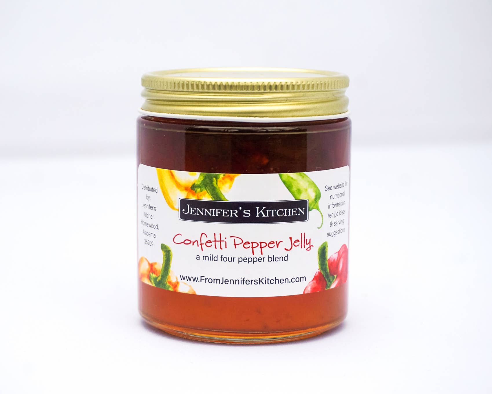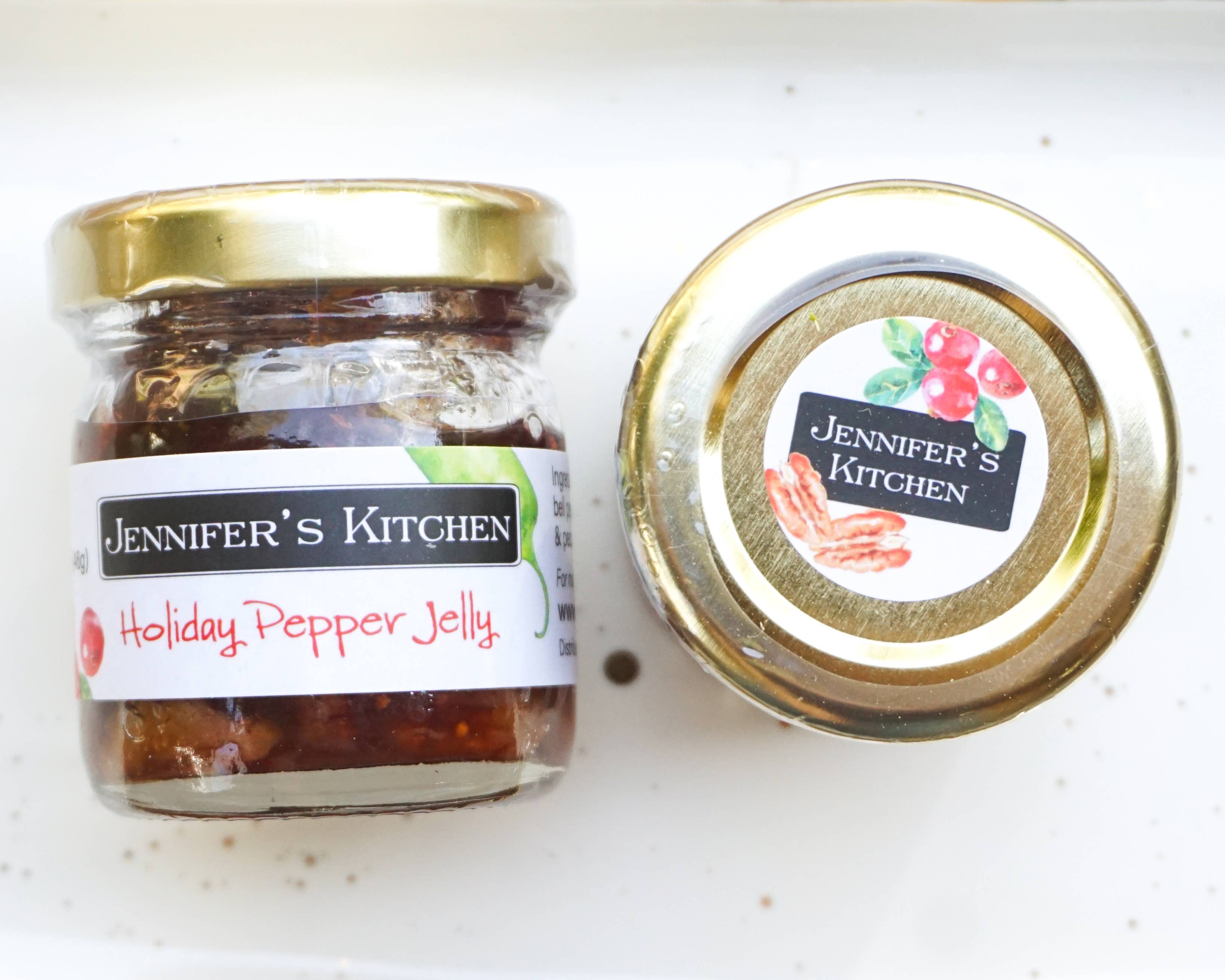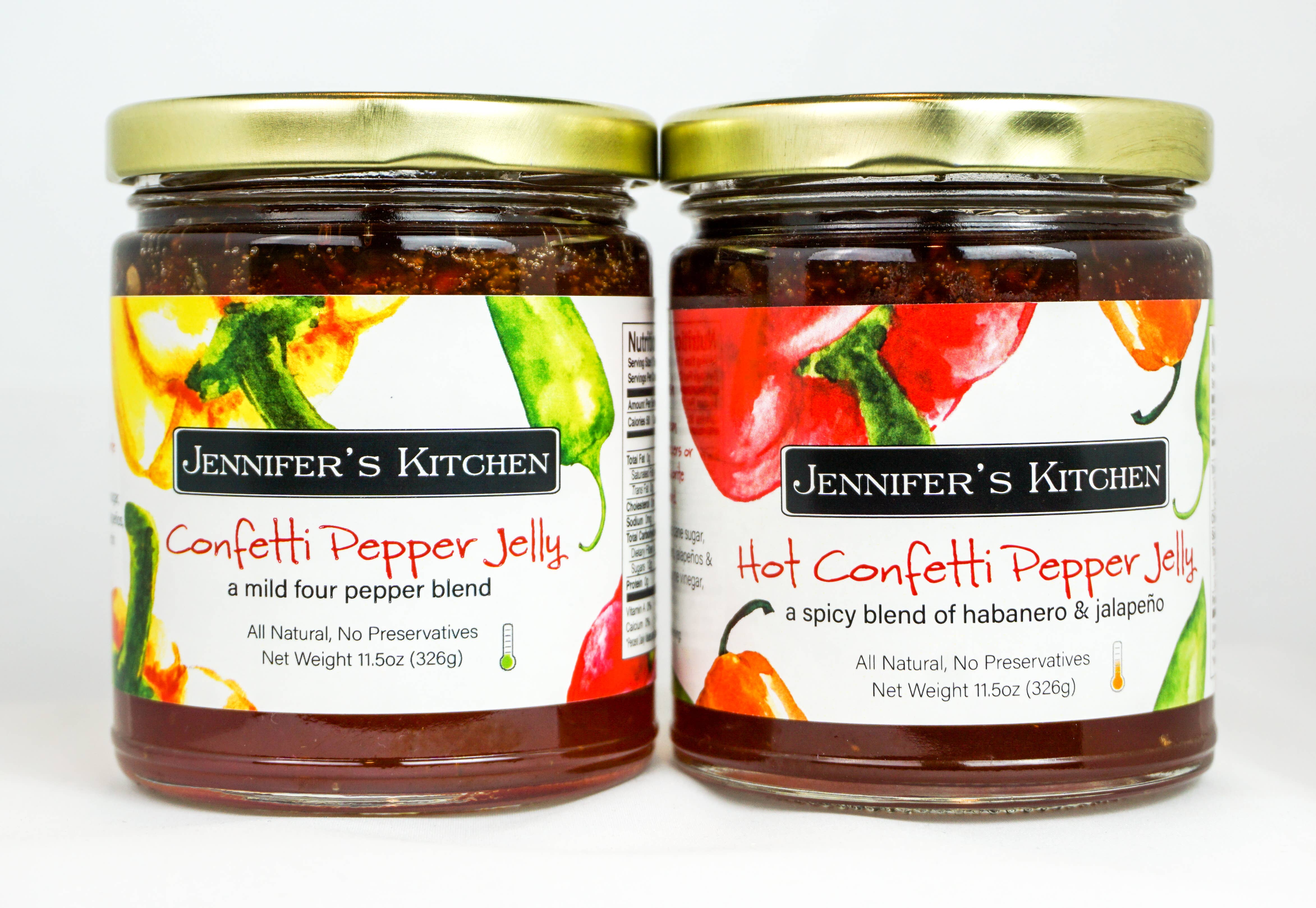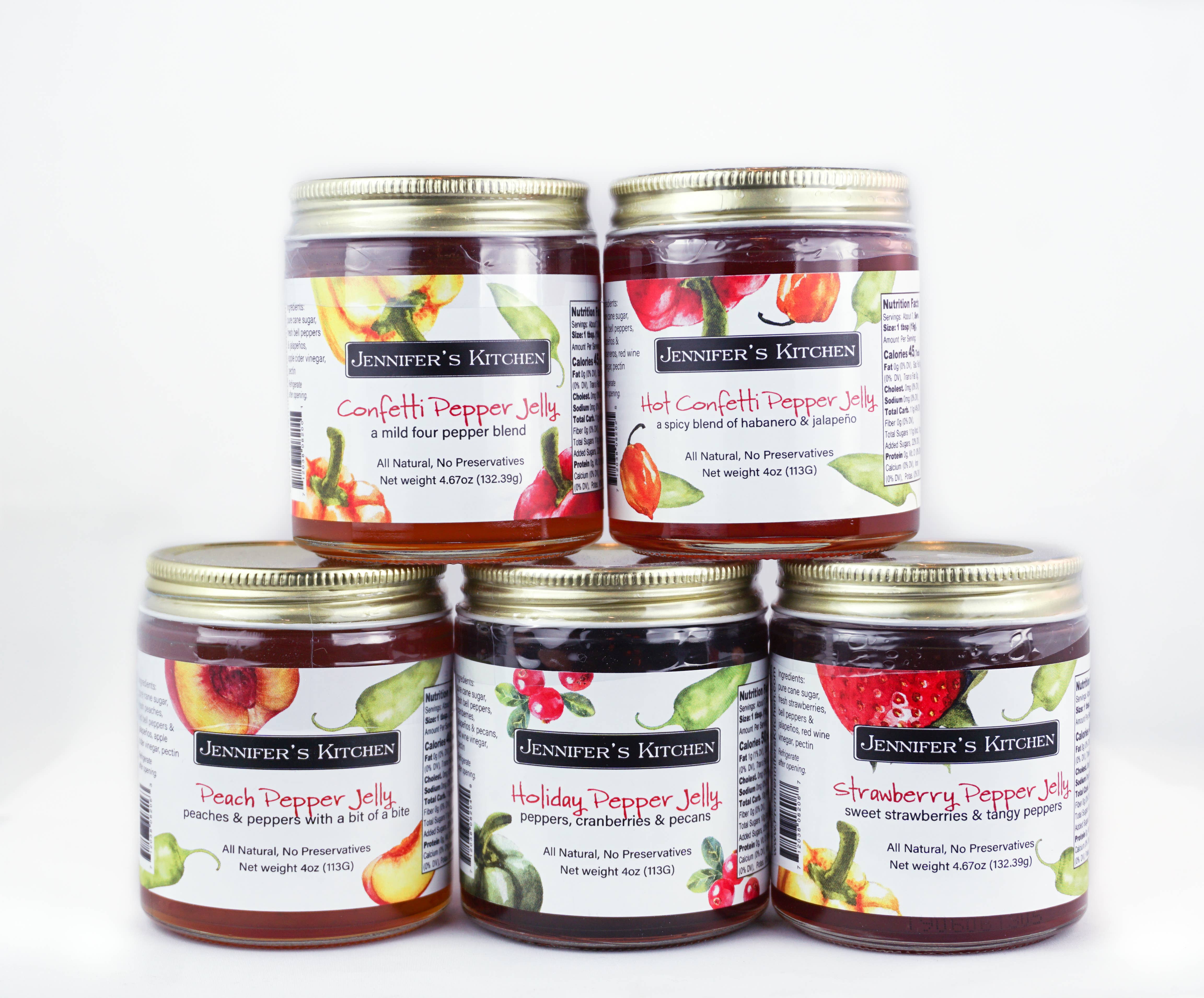 Jennifer's Kitchen was born when a simple gift of homemade preserves sparked a love of sharing goods with friends and family. Today, Jennifer’s Kitchen American-made pepper jellies remain inspired by her weekly trips to the farmer’s market, using fresh, natural ingredients in all our products. Our pepper jellies are always free of artificial preservatives, dyes and are also vegan.