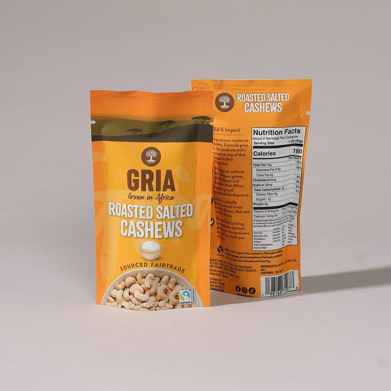 GRIA sources only the best organic and fairtrade produce from the continent of Africa, supports agricultural development in the regions we export from, and brings delicious snacks directly to our customers across the US. We offer a range of cashew snacks, from traditional favorites to bold and exciting flavors. We are proudly African-owned and based in Boston, Massachusetts.