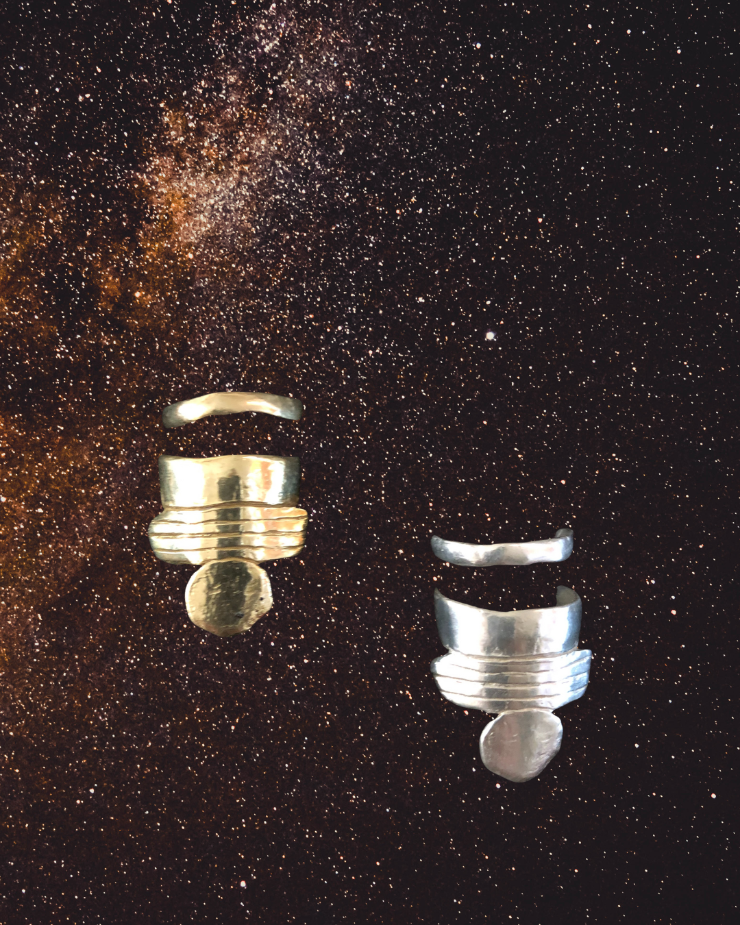 EVerything & NOthing embodies the idea of cosmic duality and finding balance in the midst of chaos. Amanda Hess was born on the mid-western prairie and now resides in Santa Cruz, CA where she designs and creates in her studio. Her designs reflect the unexpected, a melding of classic design with a fresh modern lens and found objects often inspire her collections. A deep-rooted respect for Mother Earth and human rights is at the heart of the brand. Past collections have emerged from objects such as mushrooms, rattlesnake tails and American-mined stones. No detail is overlooked when it comes to quality and responsible sourcing. Amanda is committed to supporting other conscious, American based businesses with similar values. Classic yet bold, interesting yet versatile, androgynistic designs created for all. EVerything & NOthing has a dedicated following of conscientious, artistically inspired individuals from various walks of life. Amanda thrives on creating and sharing her interpretation of beauty with a community who values and appreciates it.
