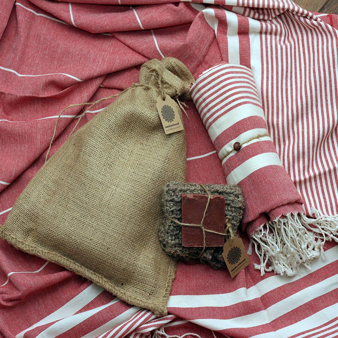 ***WE OFFER AFFORDABLE SHIPPING IN THE EU - PLEASE CONTACT US!*** As MadeAtHand has Anatolian roots, we go back to our homeland to find the best quality artisan textiles and bath necessities for wholesale and retail. Turkish tradition meets modern beauty. Representing authentic traditional techniques, we offer comfortable and beautiful towels and natural soaps, all handmade. Famous for Pestemal towels since centuries, the city of Buldan is home to the best artisan weavers. Our selected weaver ateliers handloom soft towels out of 100% high-quality cotton on a traditional 16th-century loom called Kara Tezgah. For our skincare and bath necessities collection, we rely on 100% natural ingredients. Soap bars are made of plant-based and essential oils, and herbs, and hammam scrub gloves out of plant-based fibers and goat hair yarn. Additionally, our collection’s handmade mandalas are great decoration items that add a high vibration to a home. madeathand stands for local produce, natural ingredients, and historical craft. We embrace our Turkish history, whilst taking care of the planet today.