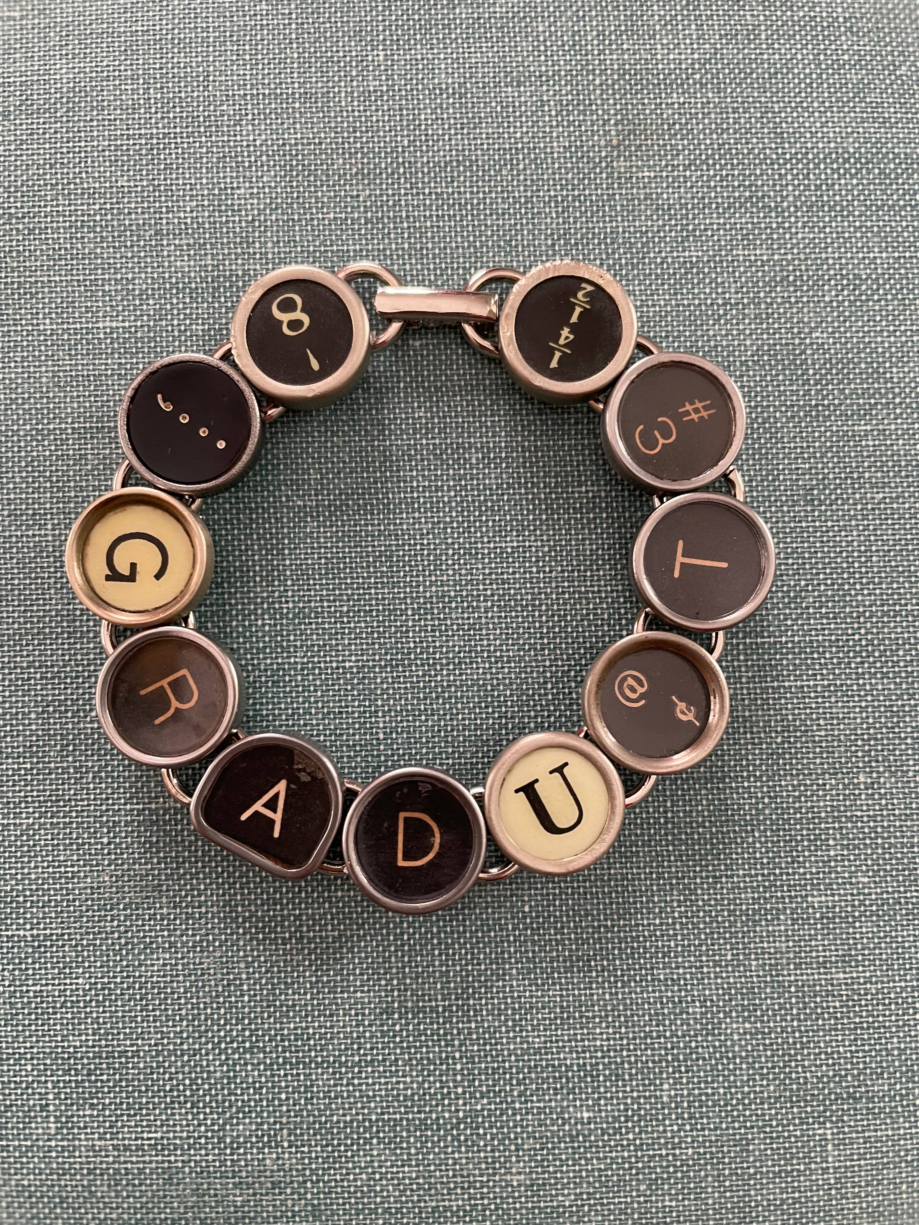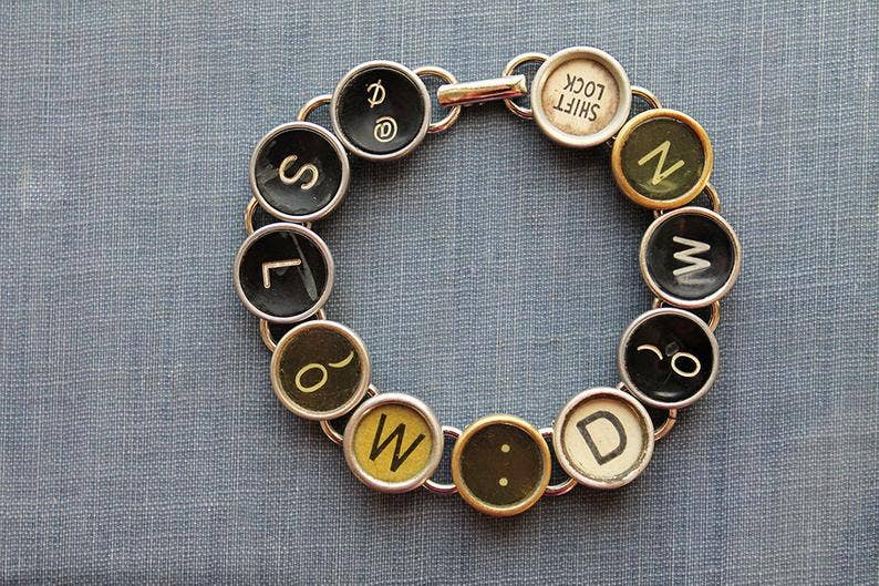 As a former high school teacher, Joy Sparks found herself drawn to the history behind old typewriters. There was something about the way they look, the way they sound, the way they create. Every typewriter tells a story, literally, and she couldn't help imagining the stories told by each piece she found. Turning them into jewelry was the logical combination of two of her biggest passions. For almost 20 years now, she has been searching for typewriters anywhere and everywhere, turning transforming them from artifacts to art. Joy taught herself the unique process of removing the keys, grinding the backs, and making them into one of a kind pieces of jewelry.