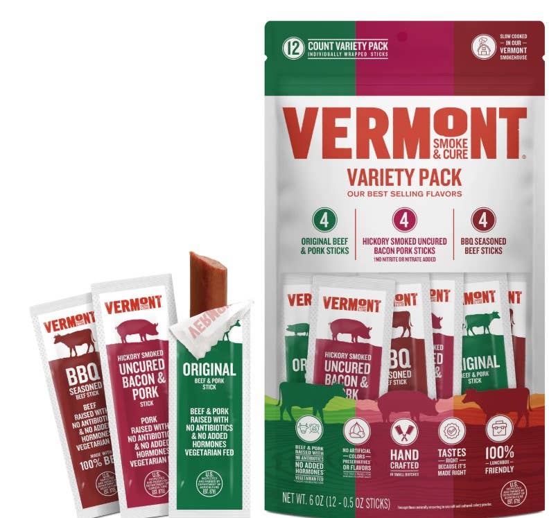 At Vermont Smoke & Cure®, we’ve been consciously crafting smoked meats and meat snacks for over 50 years. We use responsibly sourced meats and simple ingredients, spices and herbs to create classically familiar and unexpectedly bold varieties. We are committed to providing the highest quality meat snacks that always deliver the finest flavor in every bite. Our meat sticks come in multiple sizes and flavors, perfect for the whole family!