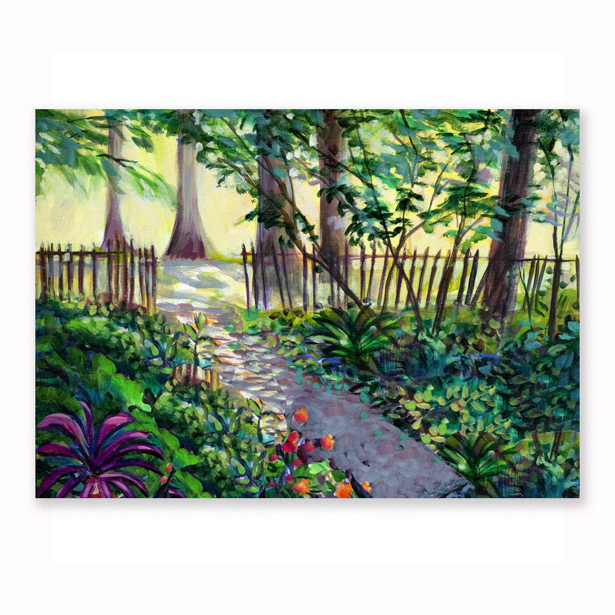 Colorful A6 size greetings cards from my original paintings. My art is about home and everyday pleasures. A pretty vase, a bouquet from the garden, a sleeping dog, a beautiful landscape. I build my paintings with lots of color, dots, and texture. I only pick the best ones for greeting cards.