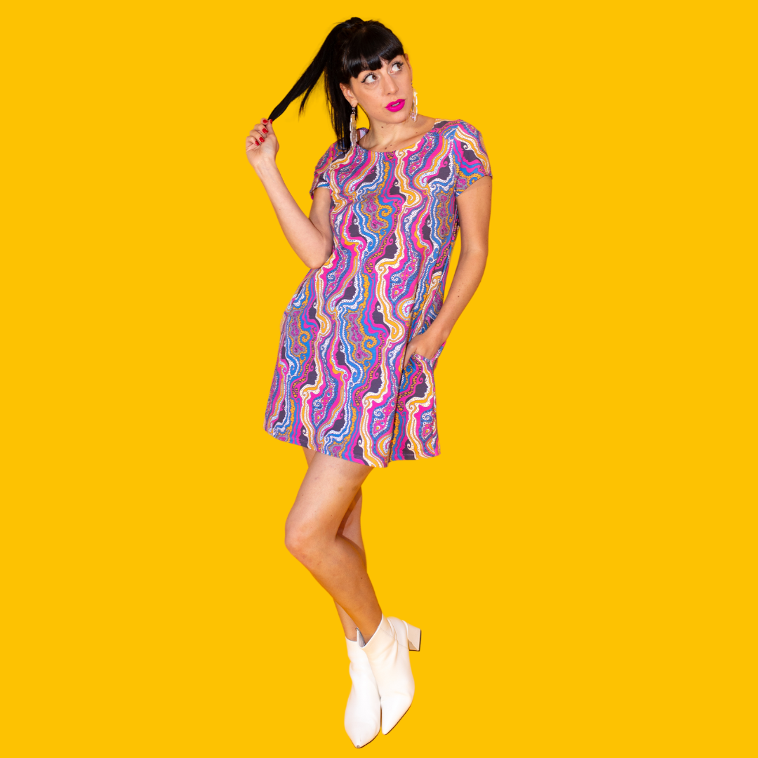 Blue Platypus is a female-owned clothing & accessory brand headquartered in Michigan. We started the company in South Pasadena, California and still produce all our clothing in Los Angeles. We make things in small batches, and we do all our own patterns, graphics and design in house. Heidi, our designer, is anti-beige and believes the world needs more color and quirkiness! Our aesthetic draws heavily from the past, especially the 1960s & '70s. We offer most new styles in XS-4X, as we have discovered in our evolution over the last several years that an expanded size range is appealing to our customers. We have added colorful home goods like tea towels, Swedish dishtowels, enamel pins and patches to our line of jumpsuits, tees, sweatshirts, tunics, dresses and skirts to round out our collections. Our products are unique because we design everything from scratch, and our favorite inspirations include psychedelic posters, midcentury everything, female empowerment, fairy tales, and bold, bold color. It's comfort with a vintage twist, and we encourage you to accessorize it wildly and with vintage pieces. Come down the rabbit hole with us!