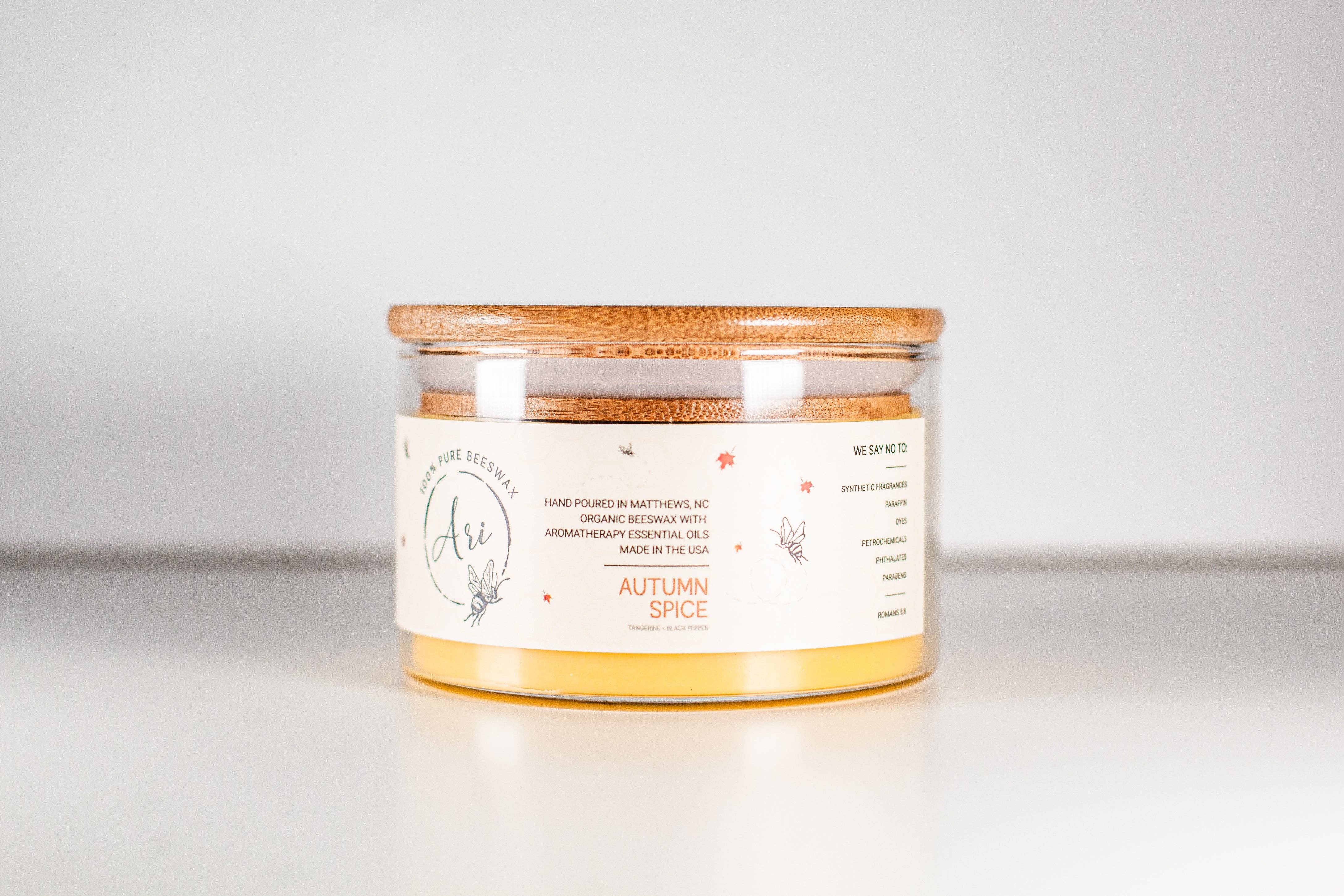 Hello there, I’m Dasha— the founder of Wellness by Ari. We are based in North Carolina and this is where we create our 100% Pure Beeswax Candle. We focus on eco-friendly products and providing a high-quality, hand-poured candle each and every time. In early 2018, Ari Candles began from a desire to create not just a candle but something that will purify and benefit the atmosphere and air quality of your home. This desire came after burning a candle that was gifted to us and seeing black residue in our kids noses after burning the candle. That’s when we said “Never Again!” and began working on creating a candle that would not only be pleasant to burn but beneficial.
