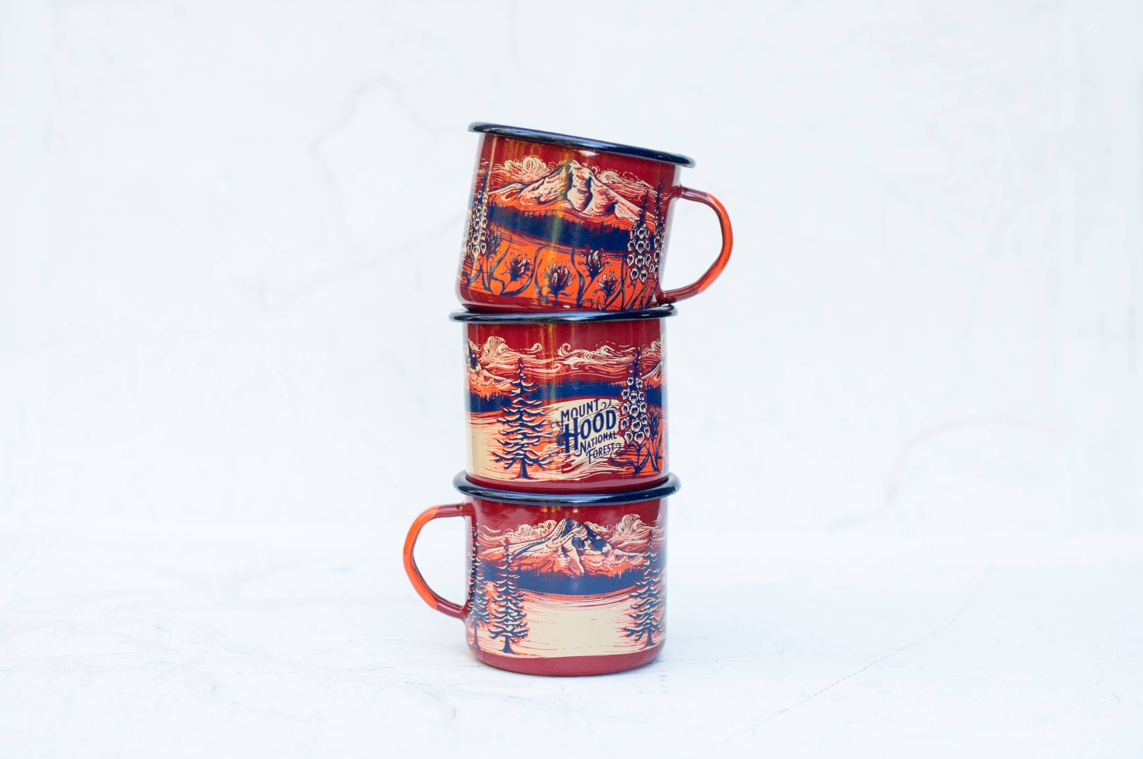 Aiming to capture the connection people feel towards their favorite wild places, Portland artist Katie Reim offers her paintings as prints, cards, and quality outdoor goods. Fascinated by the lines on topography maps, Katie pairs them with the inspirations and adventures she seeks in nature.
