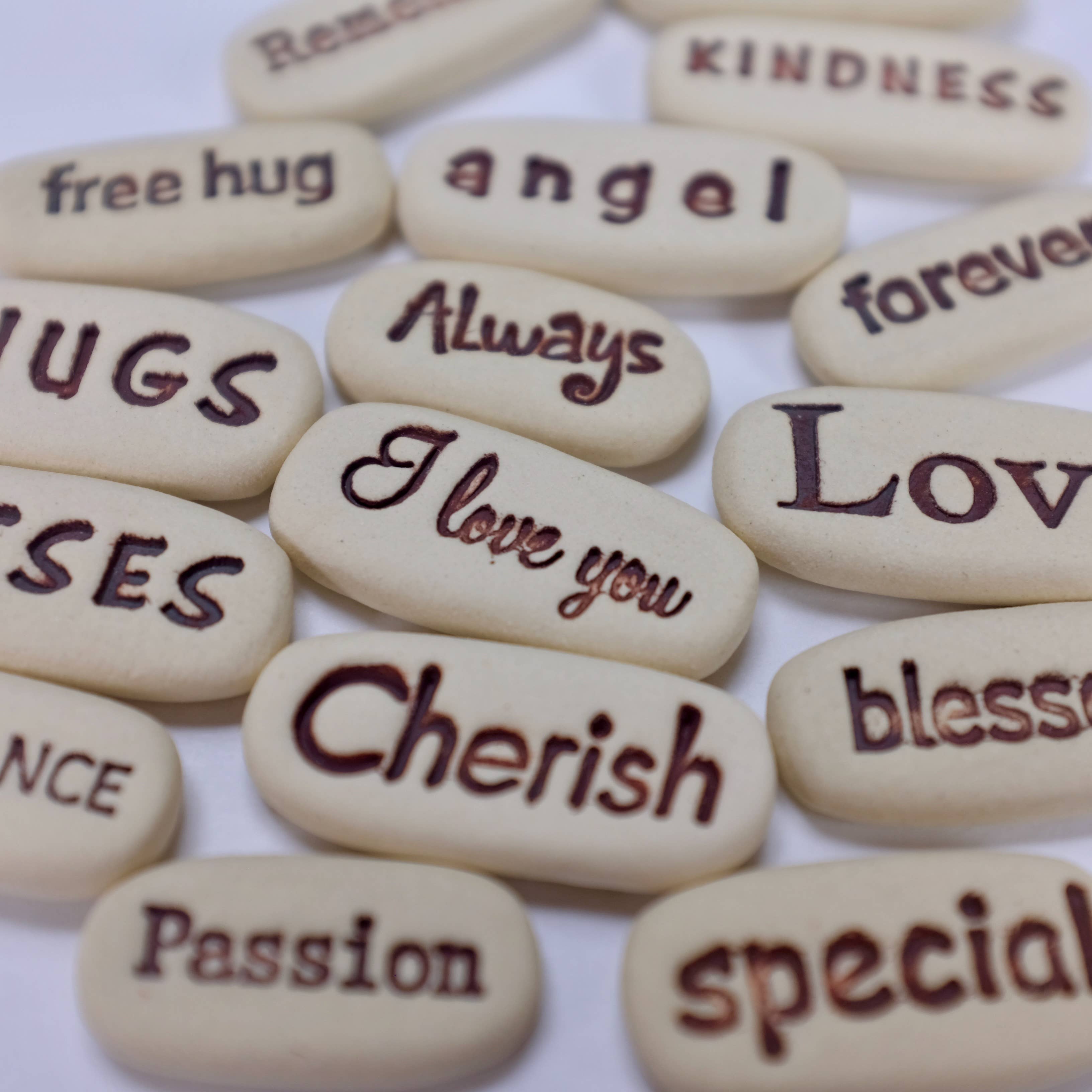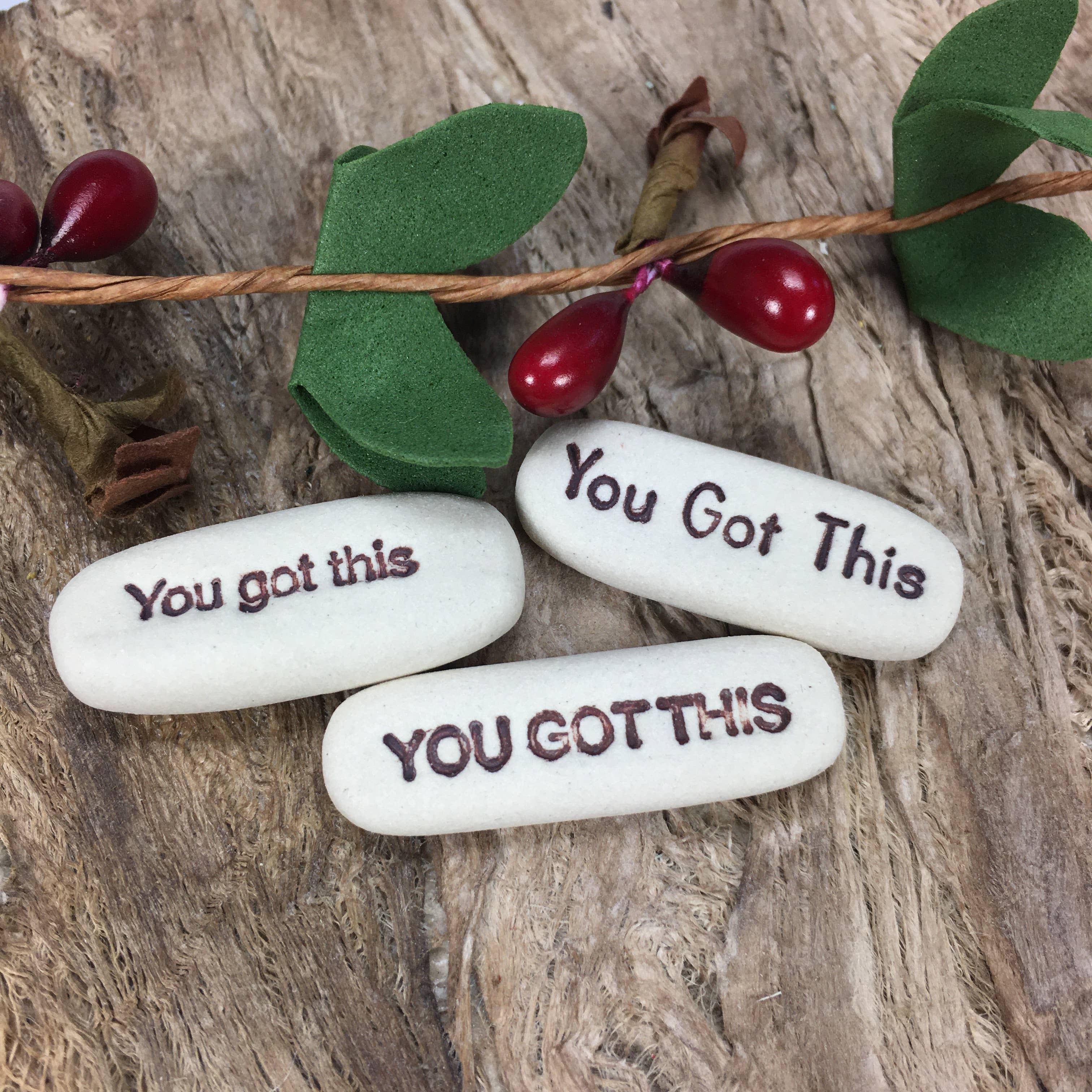 Jennifer Hanson is a small, one woman owned business based in Colorado Springs. She specializes in small batch pottery and inspirational clay words she calls Pocket Meditations. Her primary focus is hand built pottery but she is known to occasionally throw on the wheel. Jennifer loves to create new collections relevant to her interests and trends. She believes that art speaks to the heart and can be used to connect people. Her pocket meditations and pottery is her way to doing that. She has several helpers she affectionately calls minions. They do lots of work like packing and shipping, prepping clay, glazing, and help make the pocket meditations. All Spinning Star Studio handmade pottery is high quality and is sure to pack a big punch.