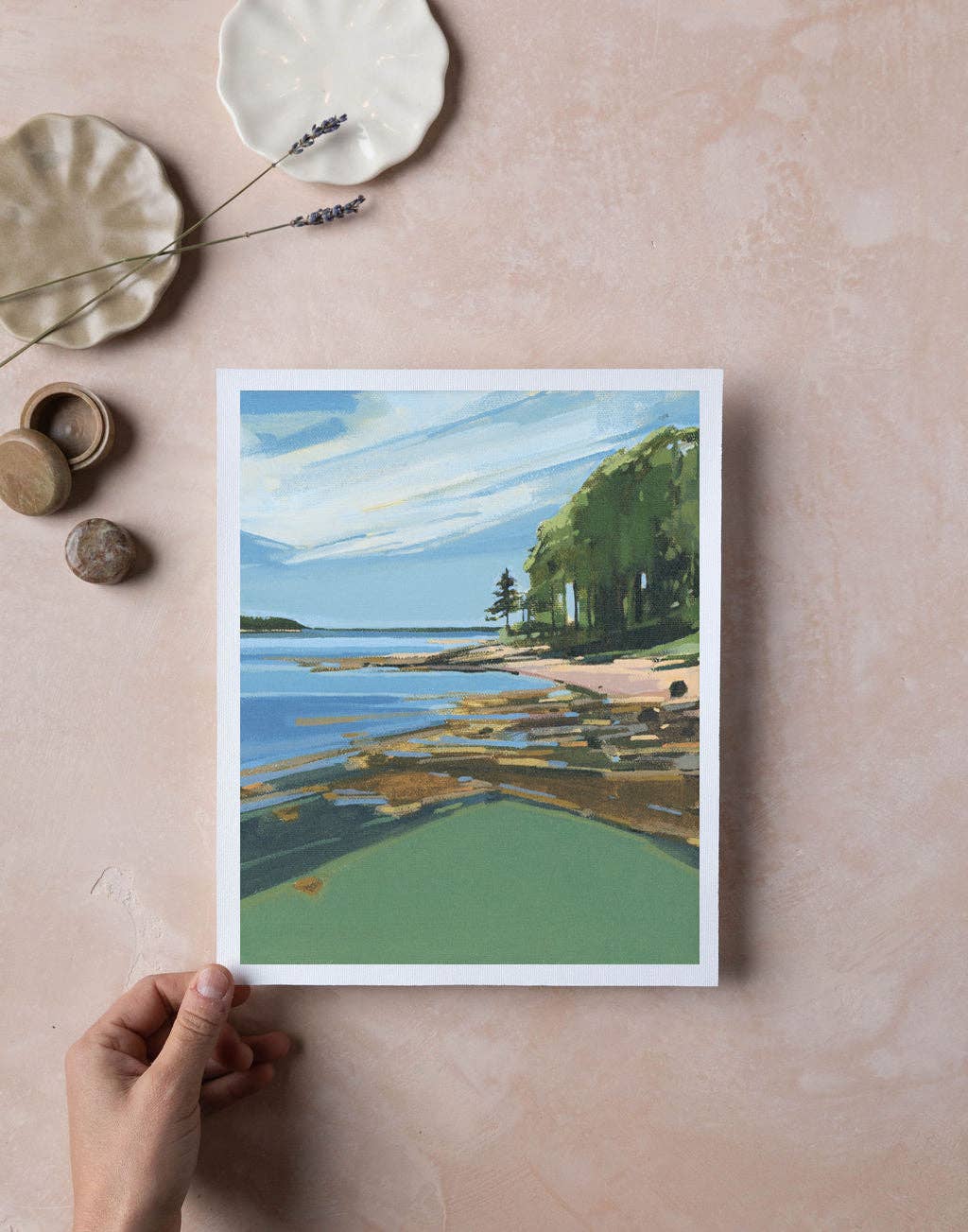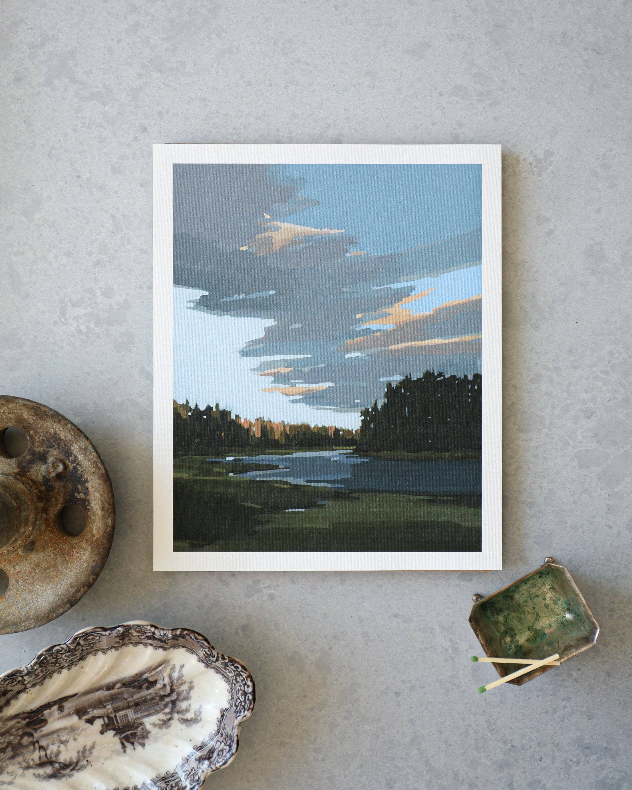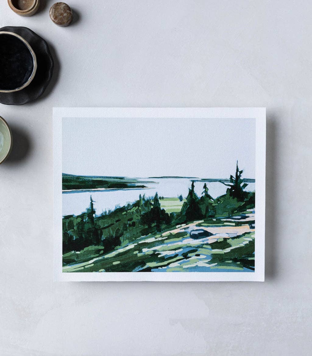 I am a Maine native in love with the outdoors. My surroundings are a constant source of inspiration for the contemporary landscapes I create. I paint original acrylic paintings on canvas which I then make into archival print reproductions to accommodate most all budgets. Accessibility and quality are two core values of my business. Details: Printed with archival inks on canvas. The reproduction image is scanned for optimal resolution and intentionally captures the original texture of the canvas. The effect is a more original-looking print. As the size of the print increases, so will the appearance of texture. The sizes listed are the largest size I am able to create each print respectively, as the image quality and delicacy of the details are very important to me! Signed in graphite on back by Sarah Madeira Day. Color: Please note that color varies from computer screen to computer screen. Color is represented as accurately as possible. Please check colors on multiple screens if you are concerned about color variations. Prints 18x24 and smaller come with chip board and a plastic sleeve for packaging. Prints above 18x24 are shipped as is with stickers for sealing if you choose to wrap in tissue upon purchase in your store. All prints come with marketing material (stickers and business cards).