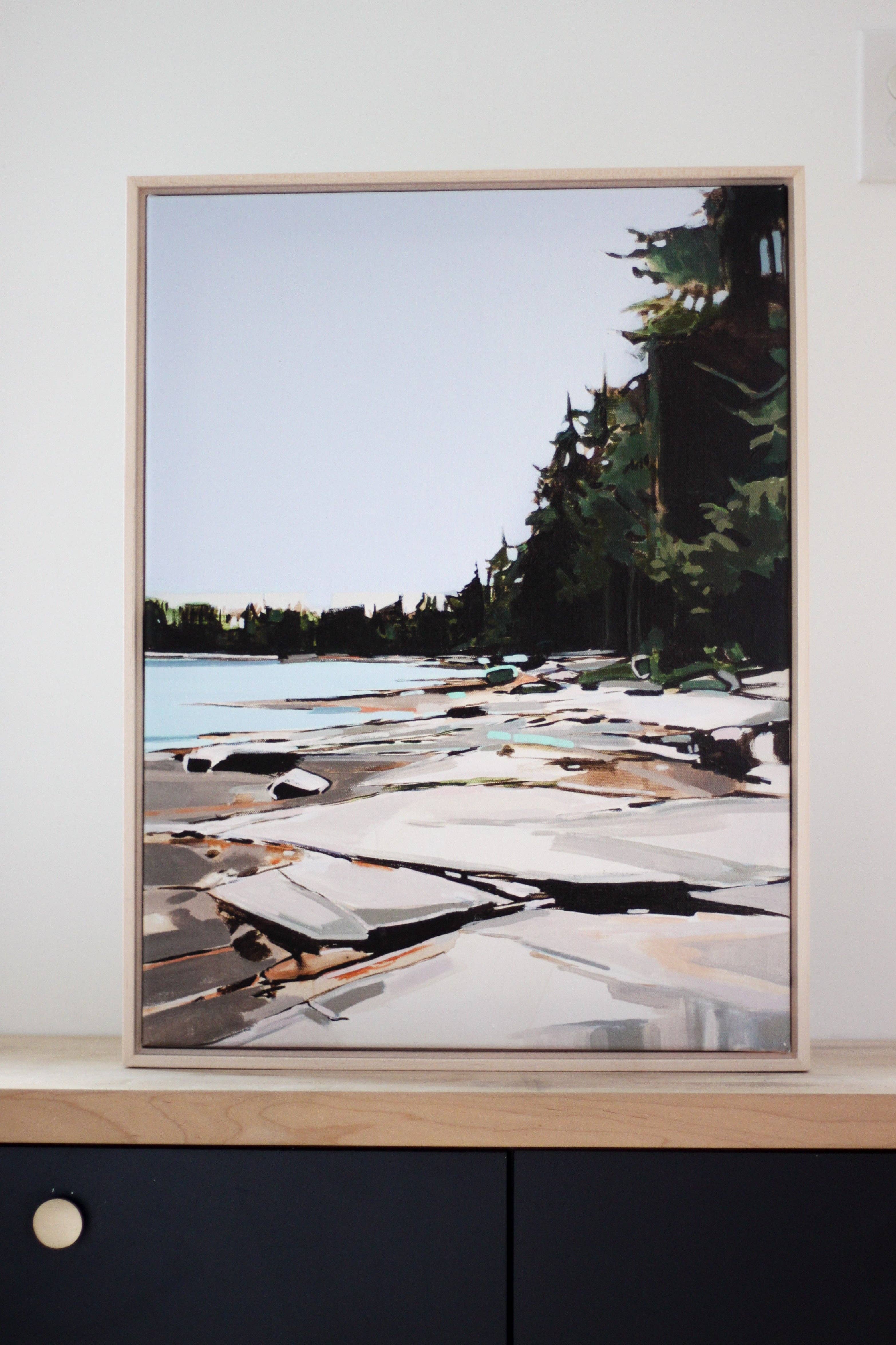 I am a Maine native in love with the outdoors. My surroundings are a constant source of inspiration for the contemporary landscapes I create. I paint original acrylic paintings on canvas which I then make into archival print reproductions to accommodate most all budgets. Accessibility and quality are two core values of my business. Details: Printed with archival inks on canvas. The reproduction image is scanned for optimal resolution and intentionally captures the original texture of the canvas. The effect is a more original-looking print. As the size of the print increases, so will the appearance of texture. The sizes listed are the largest size I am able to create each print respectively, as the image quality and delicacy of the details are very important to me! Signed in graphite on back by Sarah Madeira Day. Color: Please note that color varies from computer screen to computer screen. Color is represented as accurately as possible. Please check colors on multiple screens if you are concerned about color variations. Prints 18x24 and smaller come with chip board and a plastic sleeve for packaging. Prints above 18x24 are shipped as is with stickers for sealing if you choose to wrap in tissue upon purchase in your store. All prints come with marketing material (stickers and business cards).