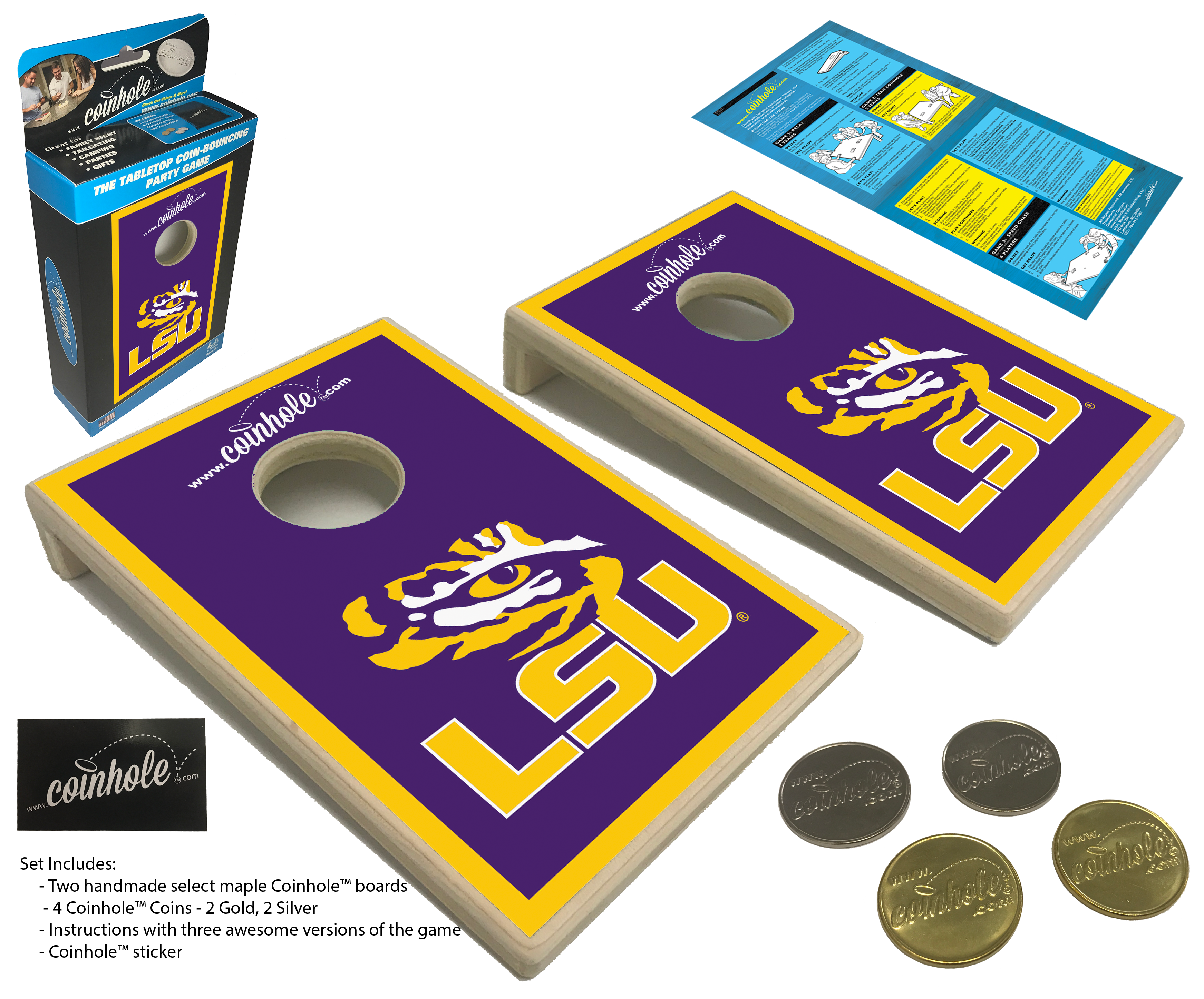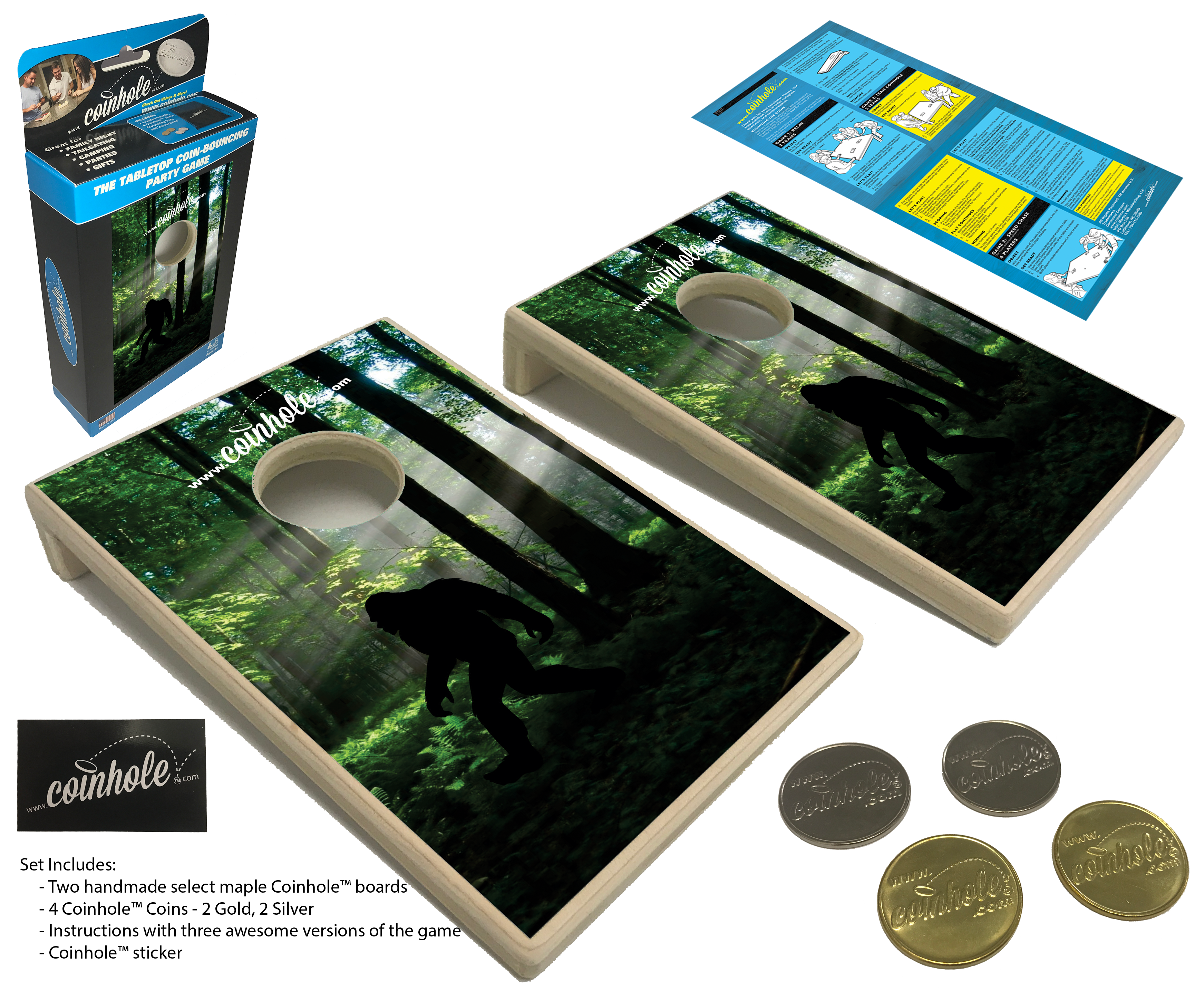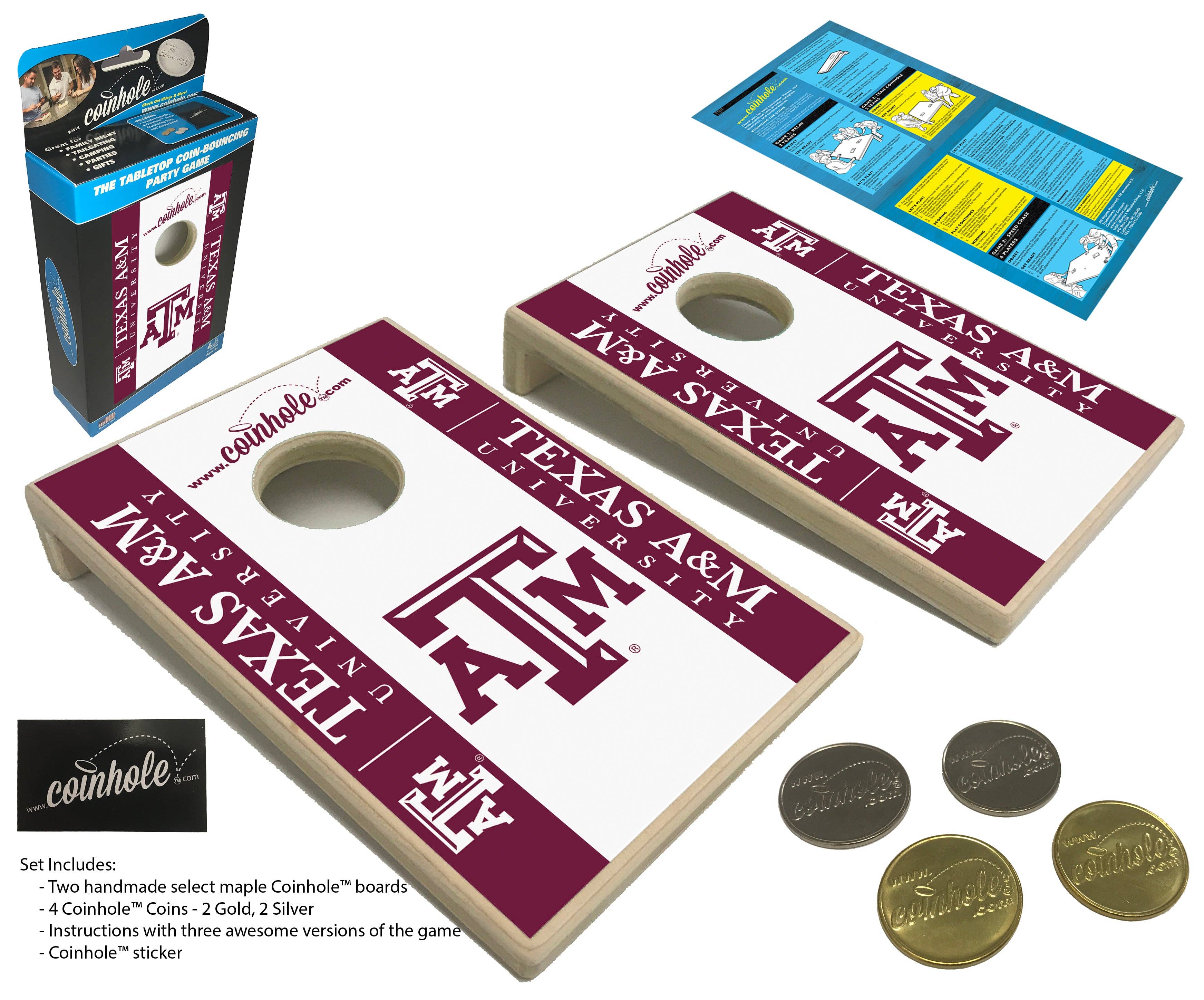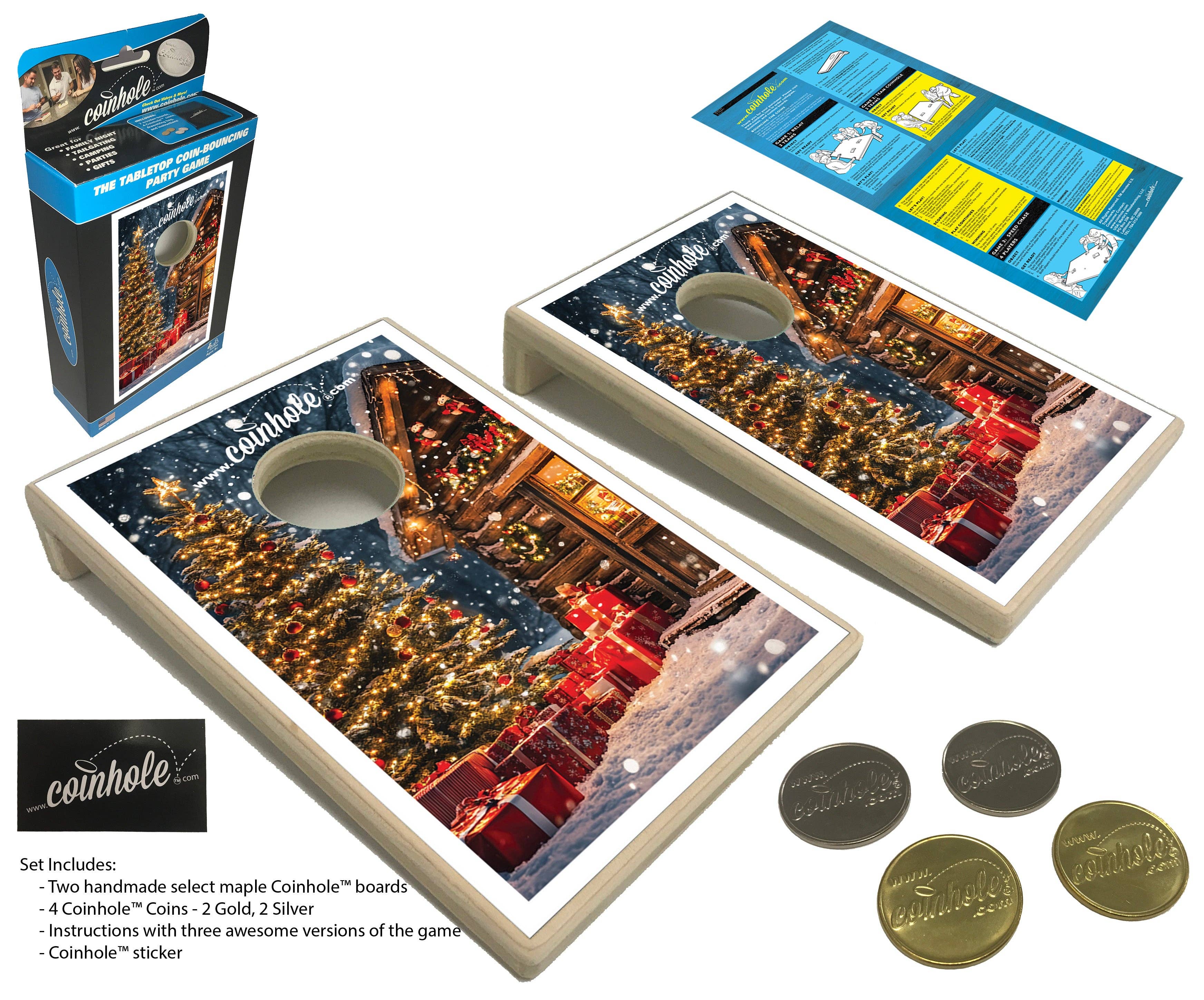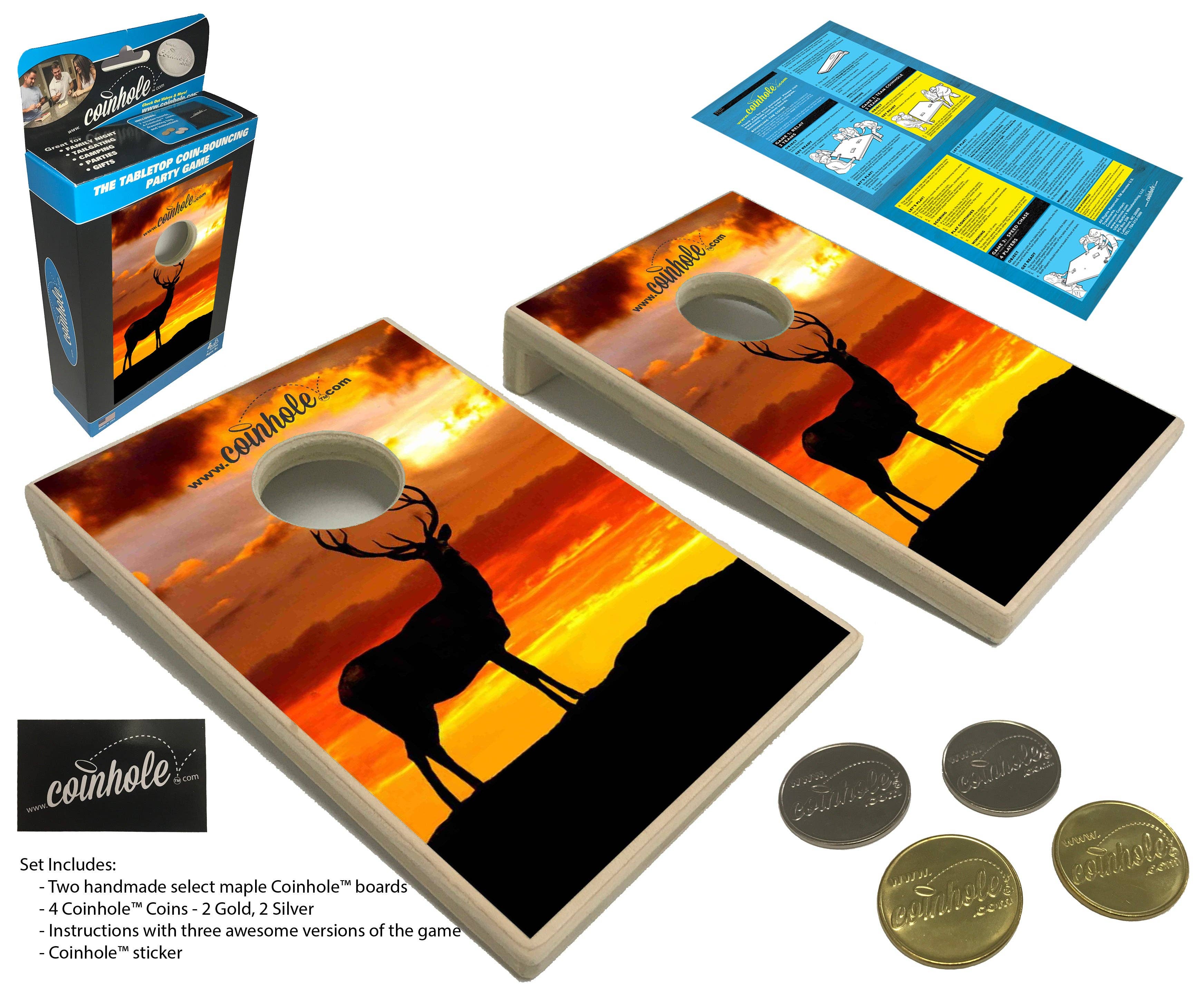 The Tabletop Coin-Bouncing Party Game! Coinhole® is the ultimate coin-bouncing game—perfect for game night, tailgates, promotions, awards, gifts, and more. It started in 2008 with a simple idea: bounce quarters onto mini cornhole boards. In 2016, a viral video made Coinhole® a worldwide hit. Every board is handcrafted in our backyard shop in Lattimore, NC. Want your logo on it? We offer custom boards with your logo or design—included at no extra charge! We've partnered with a wide range of retailers, and our Pocket Coinhole® game sets consistently see the best in-store sell-through, typically retailing from $19.99 to $24.99. Their compact size and high-energy gameplay make them a standout impulse-buy favorite. While the Tabletop Coinhole® boards remain a steady seller and offer more gameplay versatility, our Pocket boards have proven to be the top performer for wholesalers—driving high volume and quick turnover on retail shelves. Two Sizes. Infinite Fun. Thanks for being a part of the Coinhole® journey!
