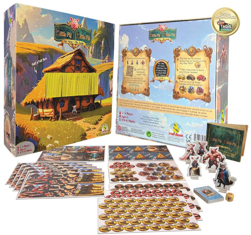 Lethal Chicken Games is a creative game and toy company dedicated to delivering fun, fast-paced, and unforgettable experiences. The idea for the company sparked while founders Alex Mackey and Mike Szalajko were volunteering during Hurricane Irma cleanup, where they bonded over a shared love of games and creativity. That passion led to the launch of their first game, What The Film?!, in 2018, which secured a Target exclusive and earned a Toy of the Year nomination. Since then, Lethal Chicken Games has continued to innovate with hits like Camping with Sasquatch, Yeti Snowbrawl, Trash Dice, and the TAGIE-nominated Little Pig Little Pig. In 2025, the company is expanding its lineup with exciting new releases, including Dumpster Dice and Glamping with Sasquatch, alongside fresh titles like Dice Batter, What's Under Your Bed?, Tortilla Takedown, Sketchy Doodles, and Monster Hands. With a focus on high-quality design, engaging gameplay, and smart logistics, Lethal Chicken Games is raising the bar on fun.