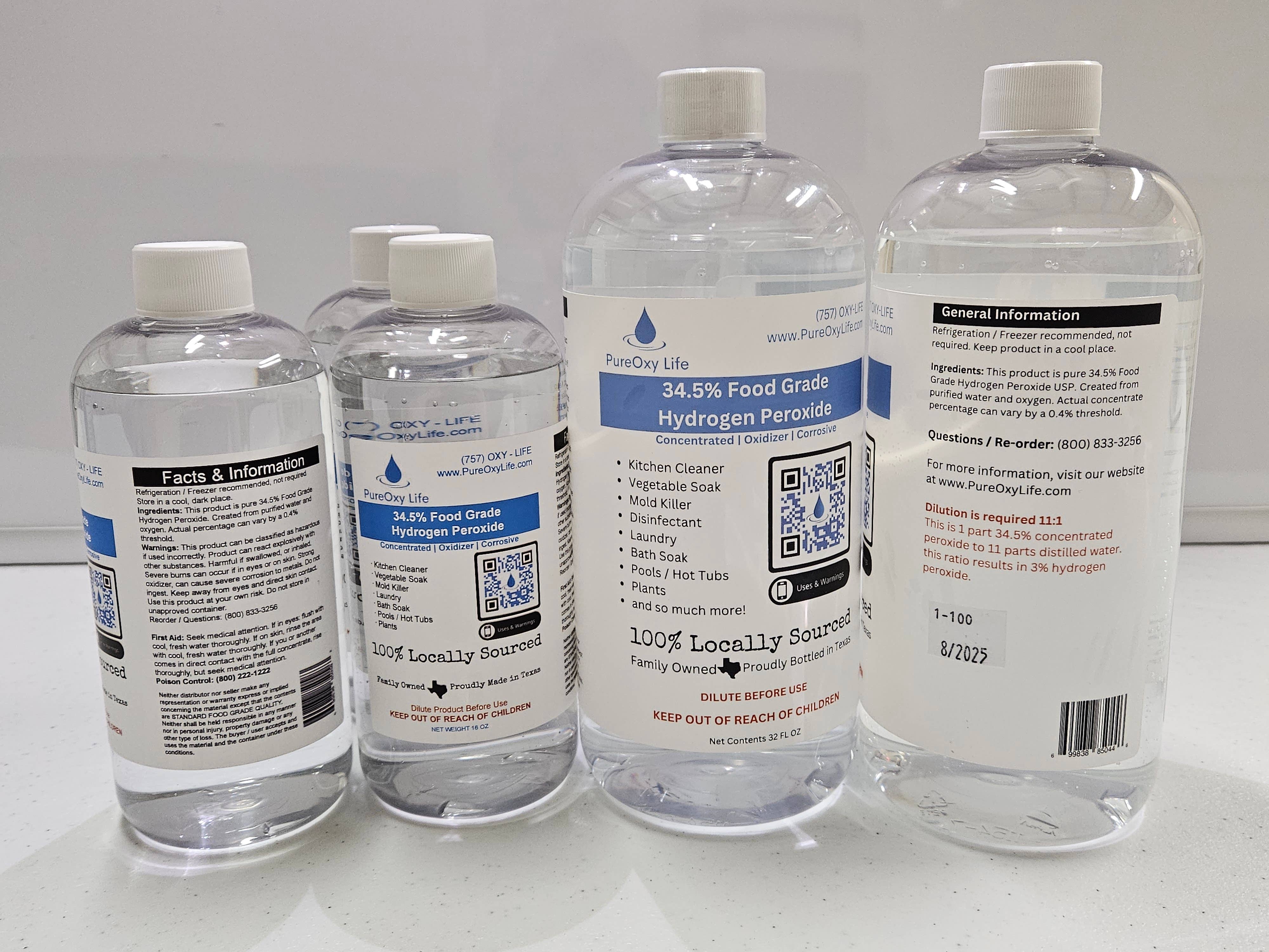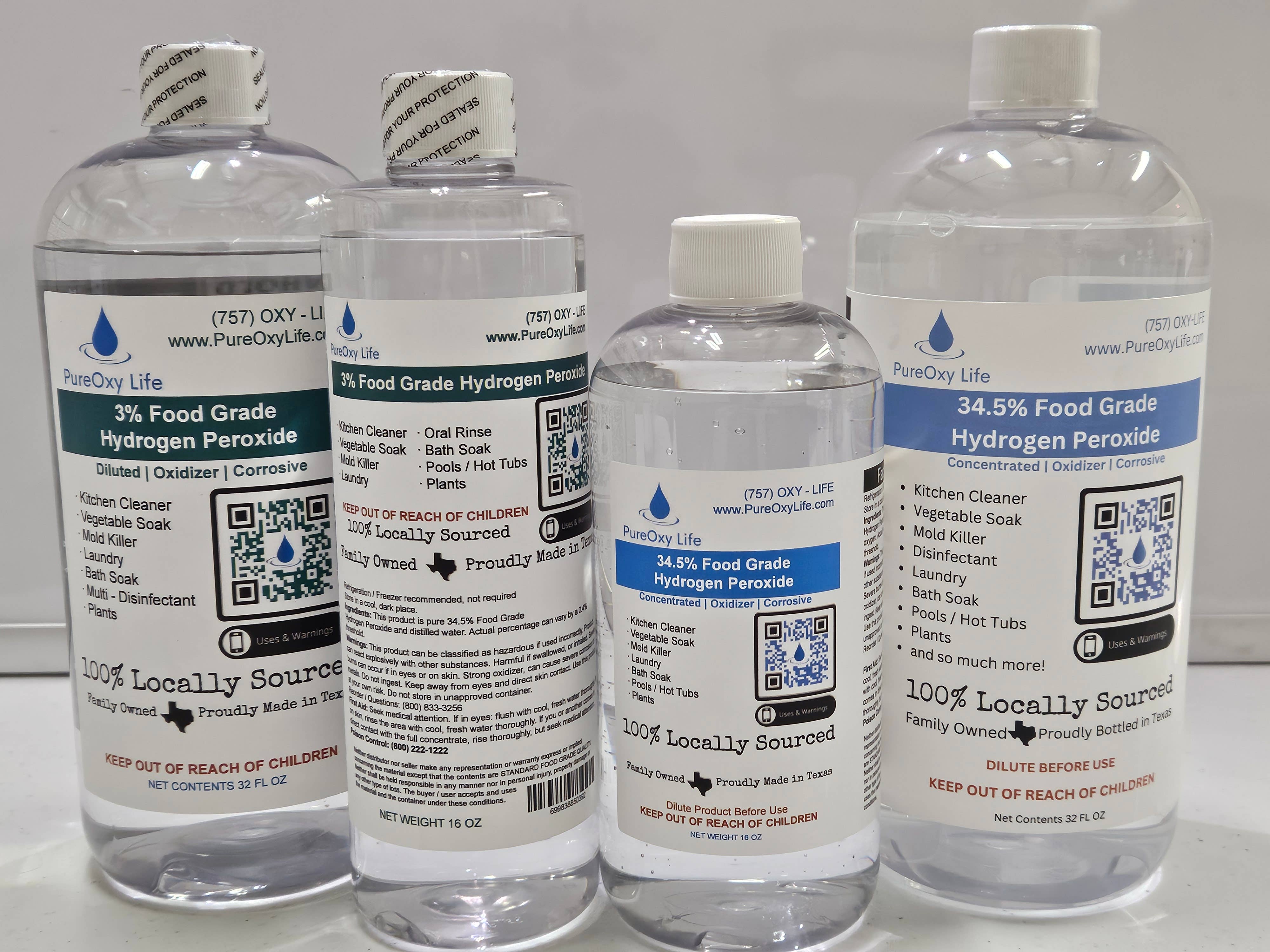 Emerging from its roots in the chemical cleaning industry, PureOxy Life, formerly known as Eagle Enterprise OxyTech, traces its origins to the visionary matriarch dubbed the "God Mother of peroxide." Recognizing the versatile applications and health benefits of Food Grade Hydrogen Peroxide, she laid the foundation for what would become a thriving enterprise. Initially fueled by word-of-mouth within friend circles and health food communities, the business flourished under her guidance. However, with the passing of the God Mother, PureOxy Life experienced a period of dormancy, eventually ceasing operations altogether. It wasn't until recently that the grandchildren, inspired by their grandmother's legacy, embarked on a journey to revive and rejuvenate the family business. Through strategic modernization, rebranding efforts, and an unwavering commitment to quality, they breathed new life into PureOxy Life. Today, PureOxy Life remains steadfastly family-owned and operated, embodying the same entrepreneurial spirit that drove its inception. Every ounce of our meticulously sourced food-grade peroxide undergoes rigorous scrutiny, ensuring unparalleled quality and safety. Proudly crafted in the heart of Texas, PureOxy Life is more than just a product—it's a testament to the enduring legacy of its founder and a commitment to excellence. *Please be aware, the Department of Transportation will not permit the return of any hazmat products, but if any issues, let us know!