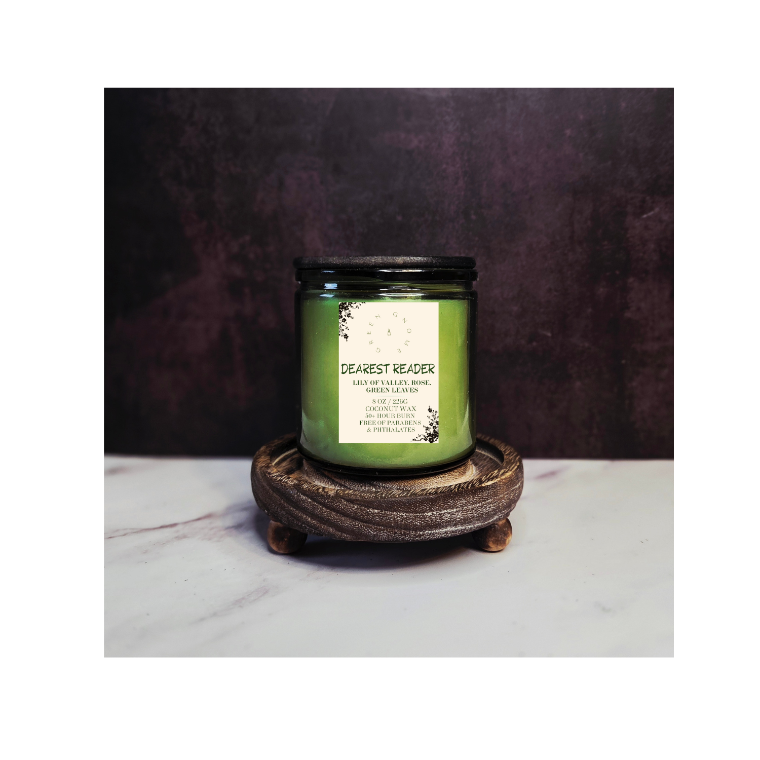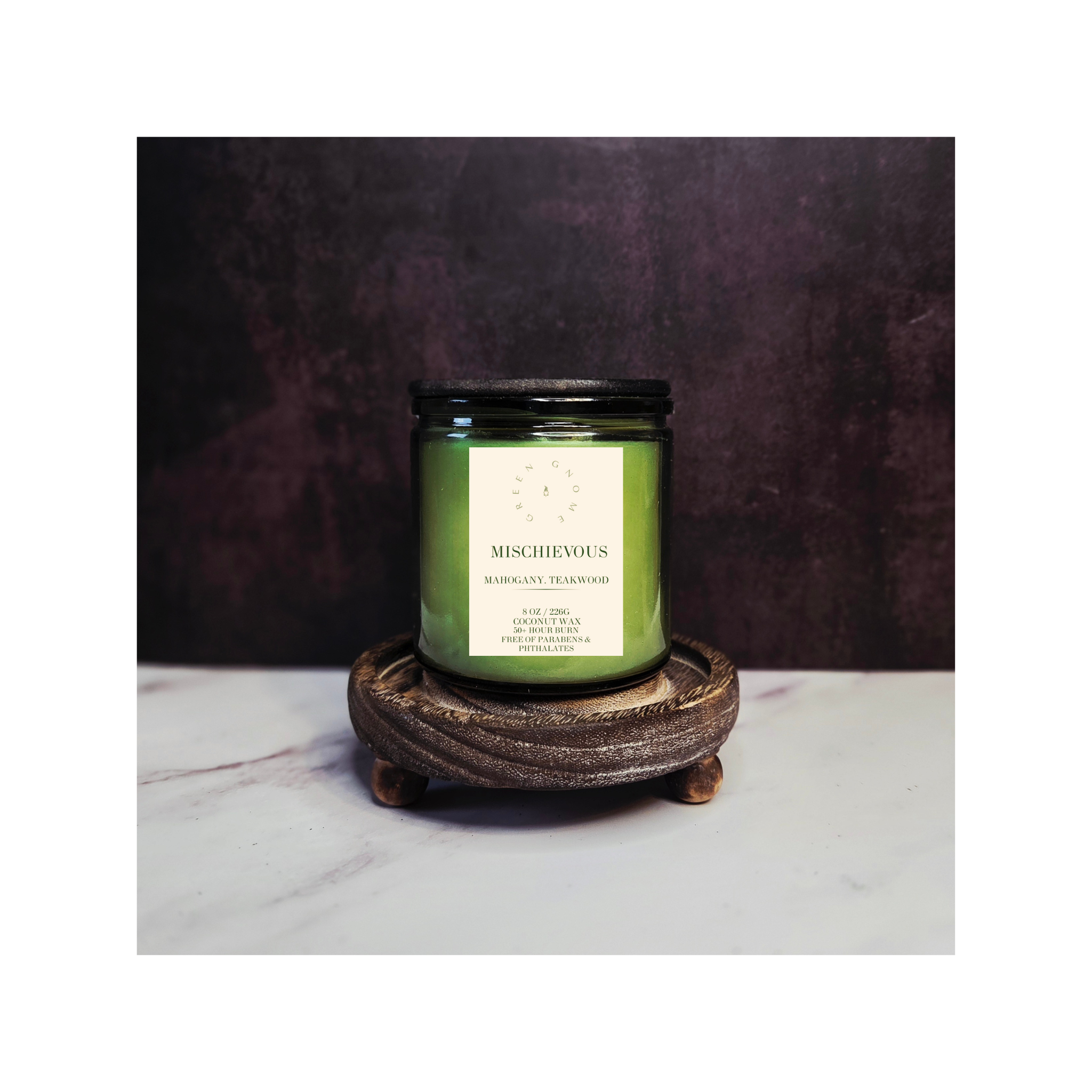 Green Gnome Candle's dedication to our clientele is to provide clean and high-quality ingredients that are natural and eco-friendly. We strive to continue to select the ingredients we would like to use around our own home. No Parabens or Phthalates will ever be used. We hope our products speak for themselves, and we will see you again! Thank You! Erica G. Owner