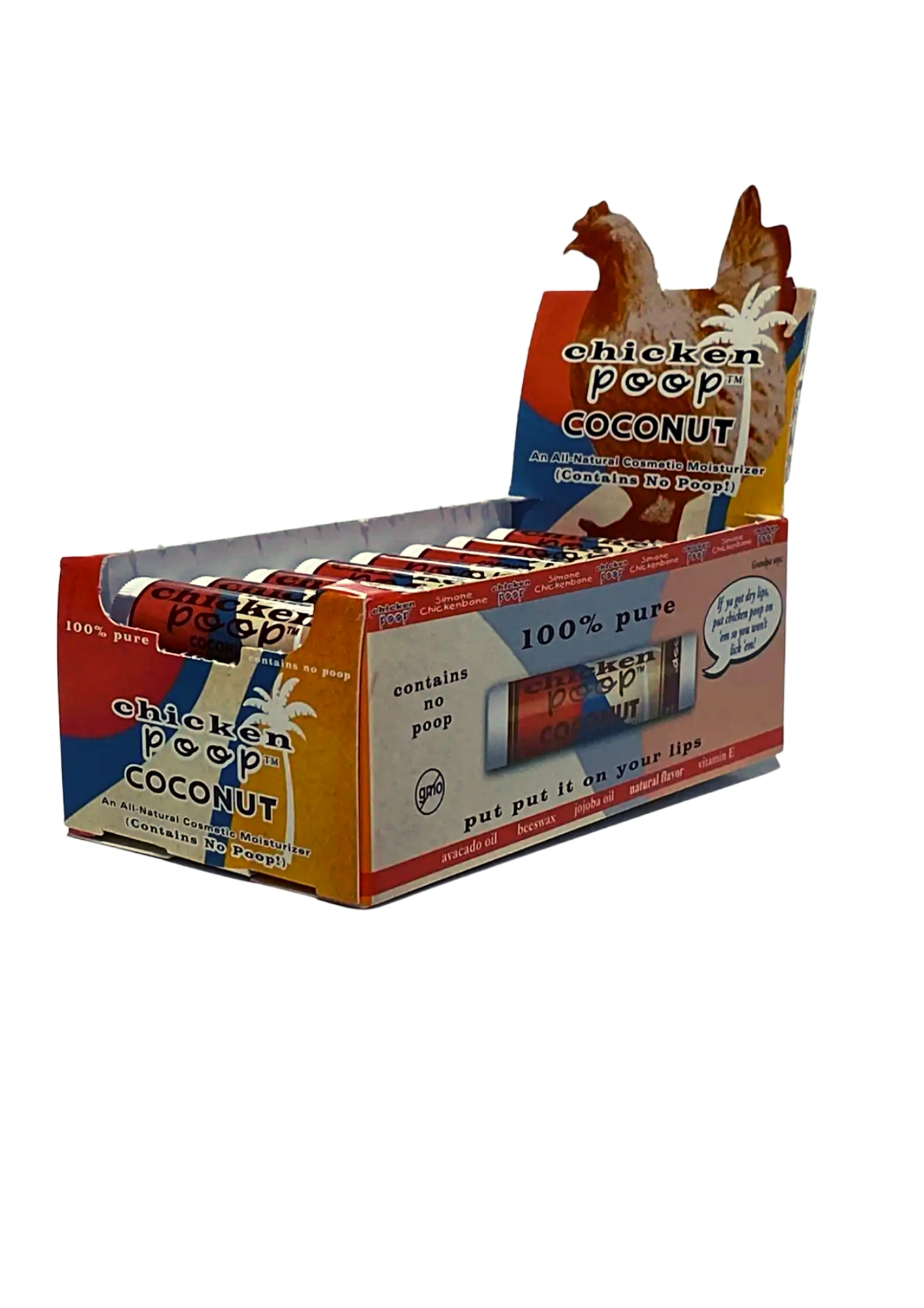 Our story began with a simple idea to create a truly natural lip balm — and a funny little name. Inspired by a quirky saying that can be heard around the farm, the Chicken Poop® brand was born! "Put some chicken poop on 'em so you won't lick 'em" is what the old farmers used to say when you would complain about chapped lips. So, we took our love for the farm life & created a lip balm like no other. With a commitment to natural, nourishing ingredients and a sense of humor that doesn’t take life too seriously, Chicken Poop® Lip Junk quickly became a favorite for anyone seeking a cure for chapped lips. But Chicken Poop® is more than just lip balm. It’s a reminder that the everyday doesn’t have to be boring, and that a sense of humor can brighten even the gloomiest of days. Our products are made with love, laughter, and a promise to keep your lips looking and feeling its best—without any nonsense, chemicals, or, well, actual chicken poop!