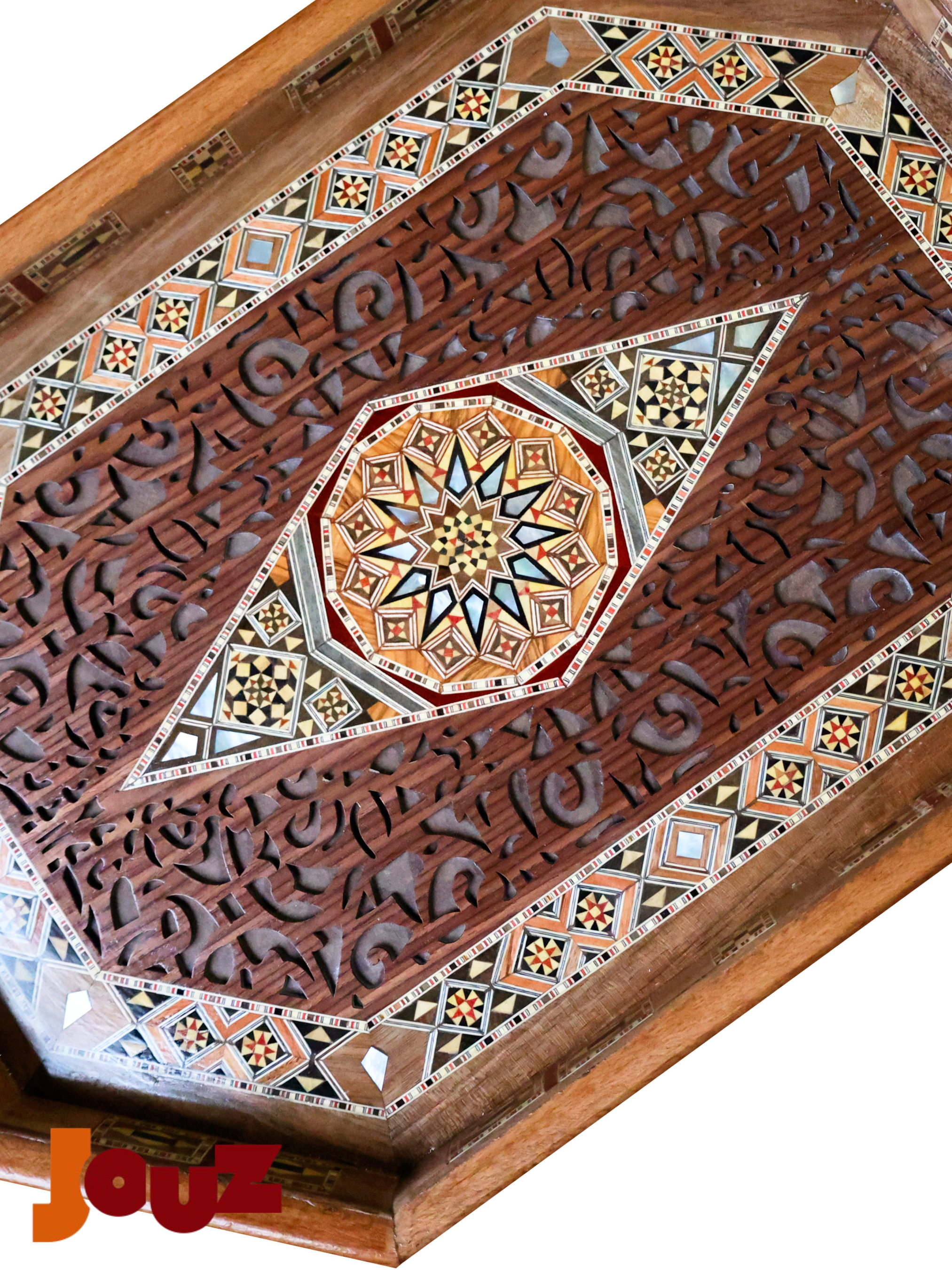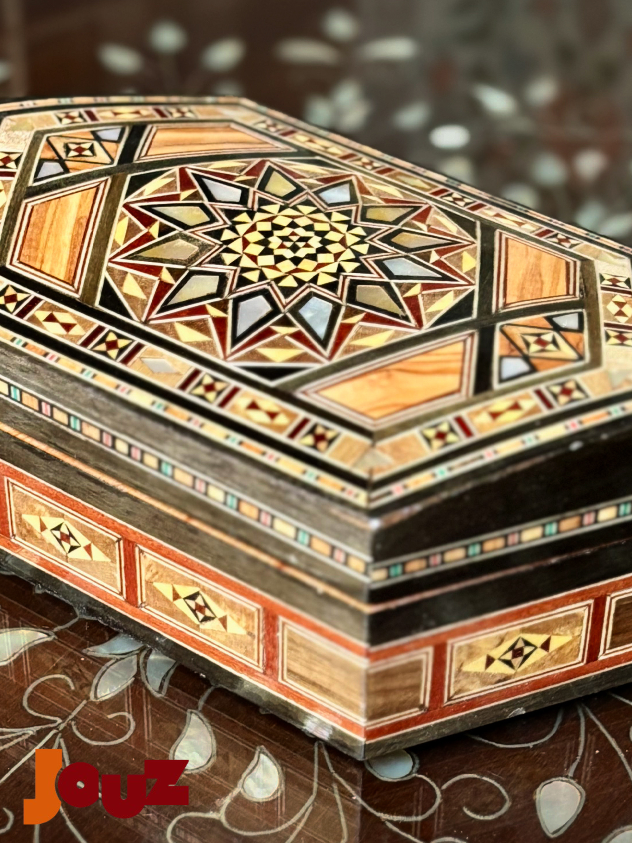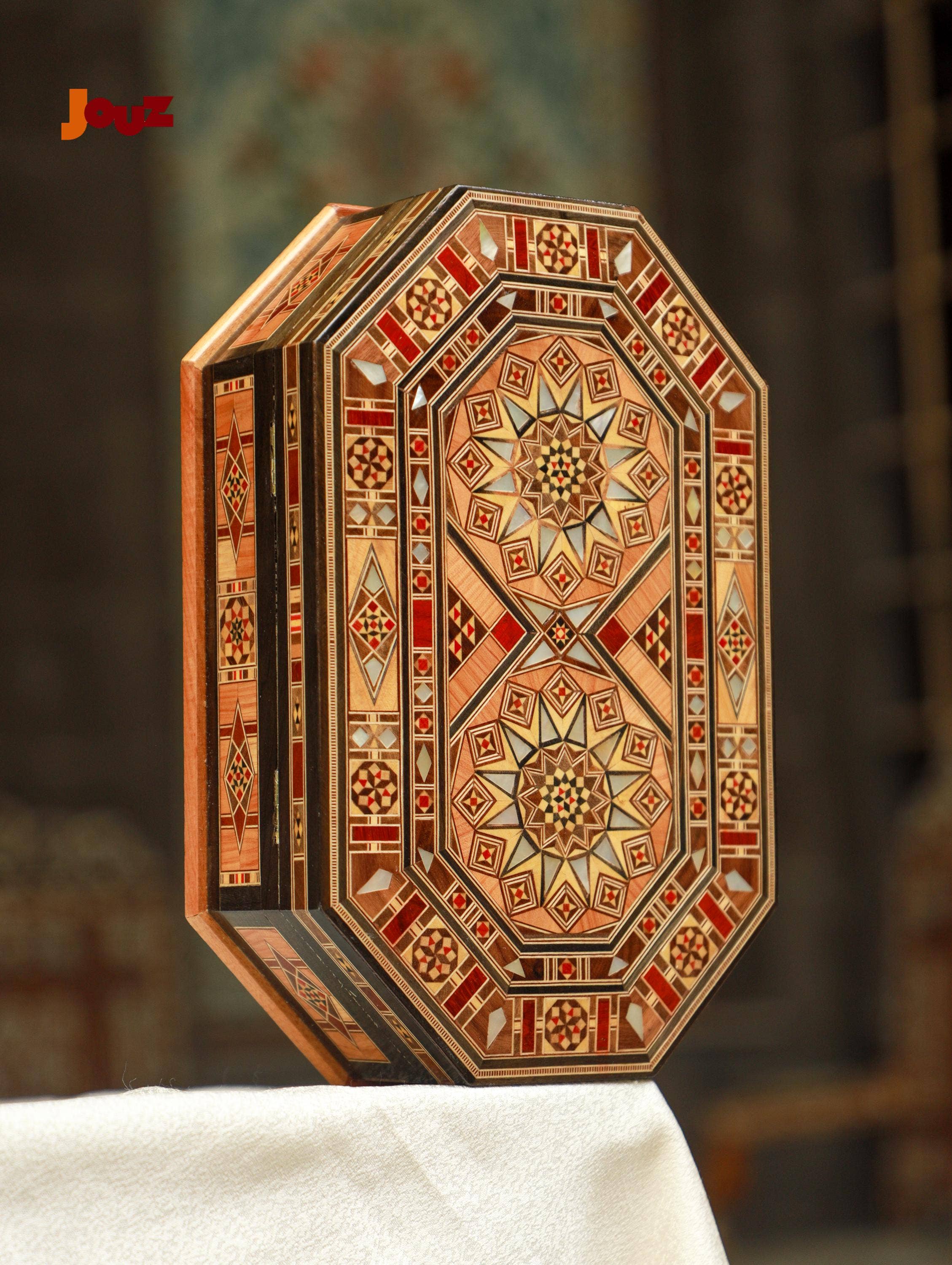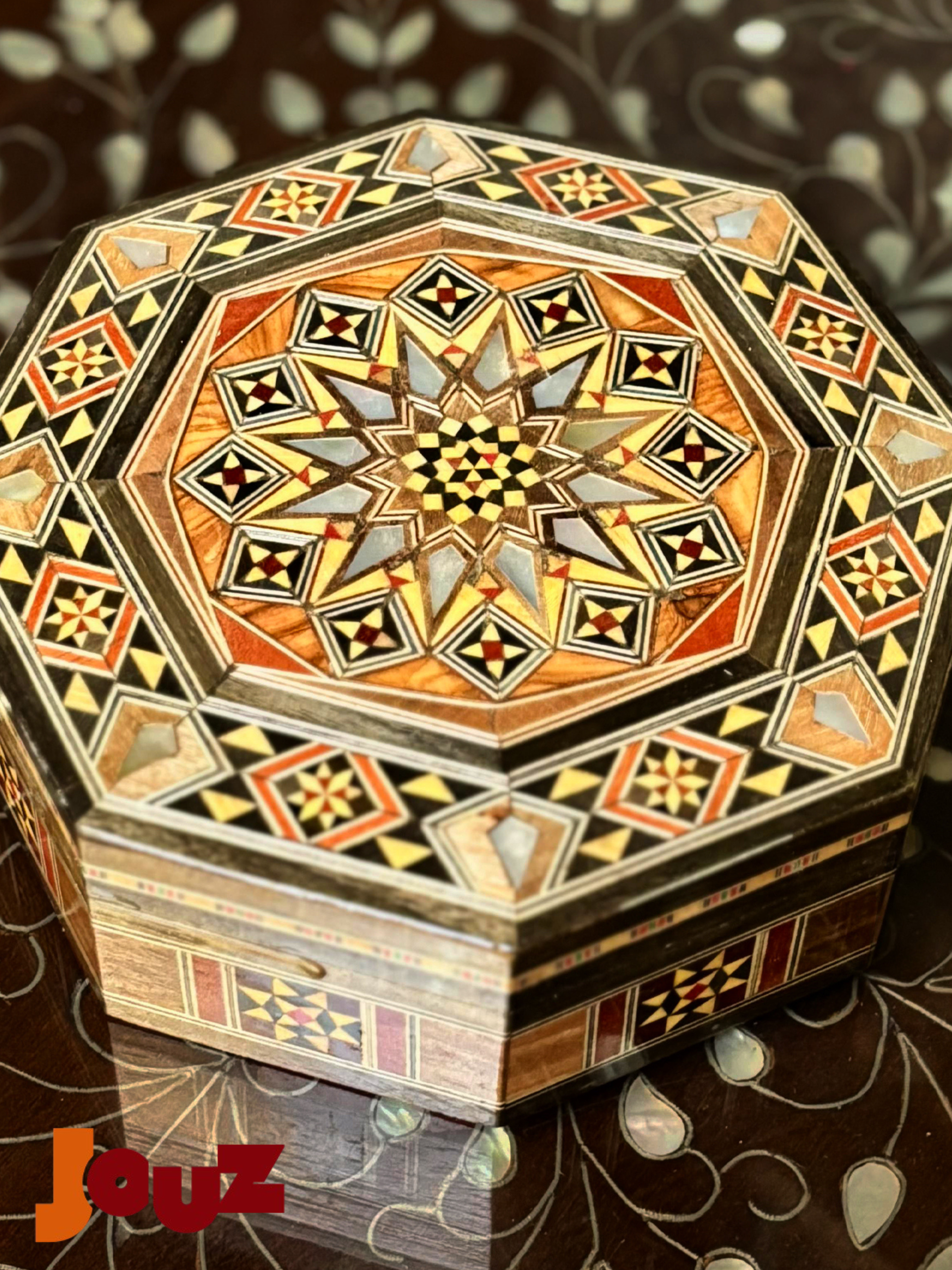Our Team is truly passionate about Handmade Syrian Mosaic. This art has been our family’s business for generations and it’s rooted in our blood. So, we'd like to share our passion with the world. Check out our website: www.jouzstore.com Instagram: @jouz.art We do our best to give you a glimpse of our traditions and our culture, we produce and design great quality, handmade products that will last for ages to come. Mosaic is an ancient Syrian art that is more than 300 years deep in Damascus' history; it is the art of grafting wood with shells, silver or ivory. Early in the 19th century, mosaic existed in the houses of almost all well-established Syrian families, after which it became a familiar décor in presidential palaces around the world. The craft utilizes different types of wood including walnut, beech and other types, but the delicacy of it lies in the maker’s imagination, who innovatively manipulate geometrical shapes, octagons, squares, hexagons and triangles, to come up with unique pieces.