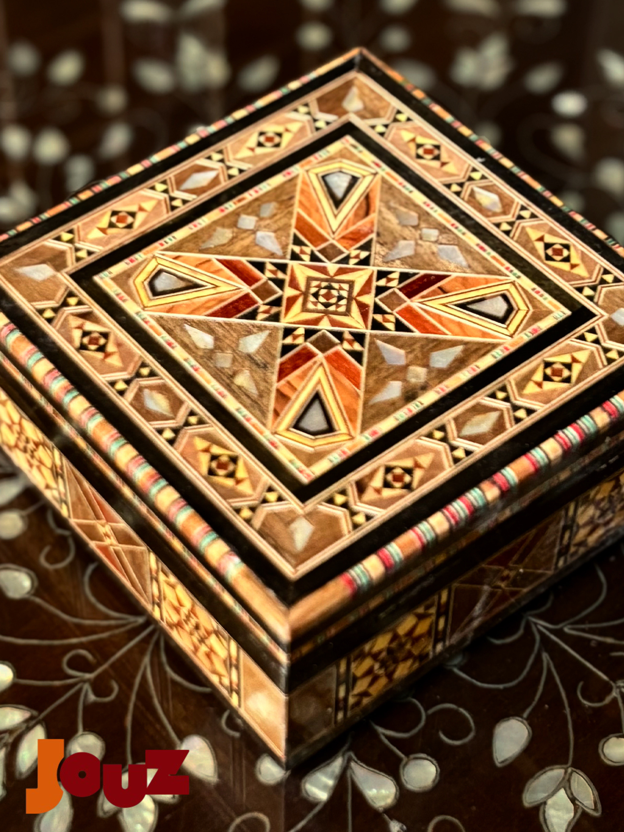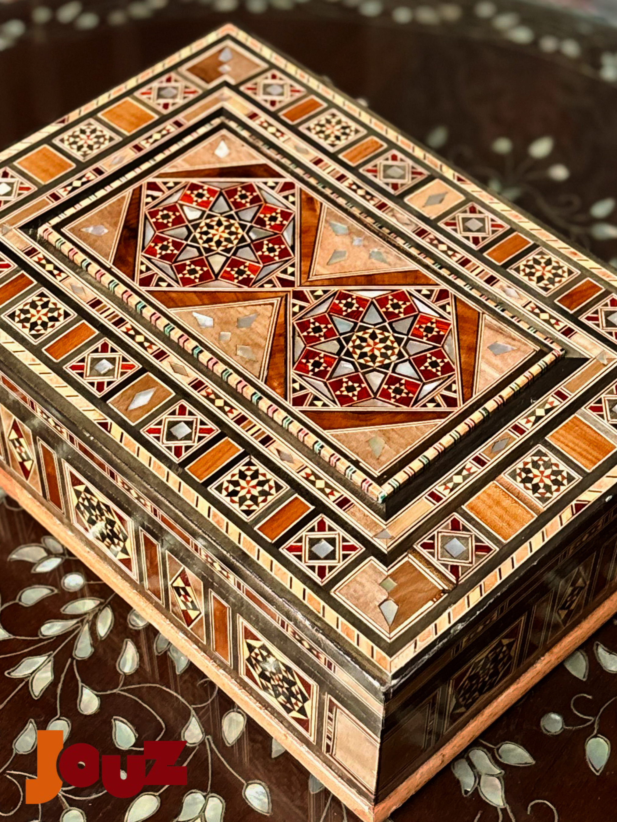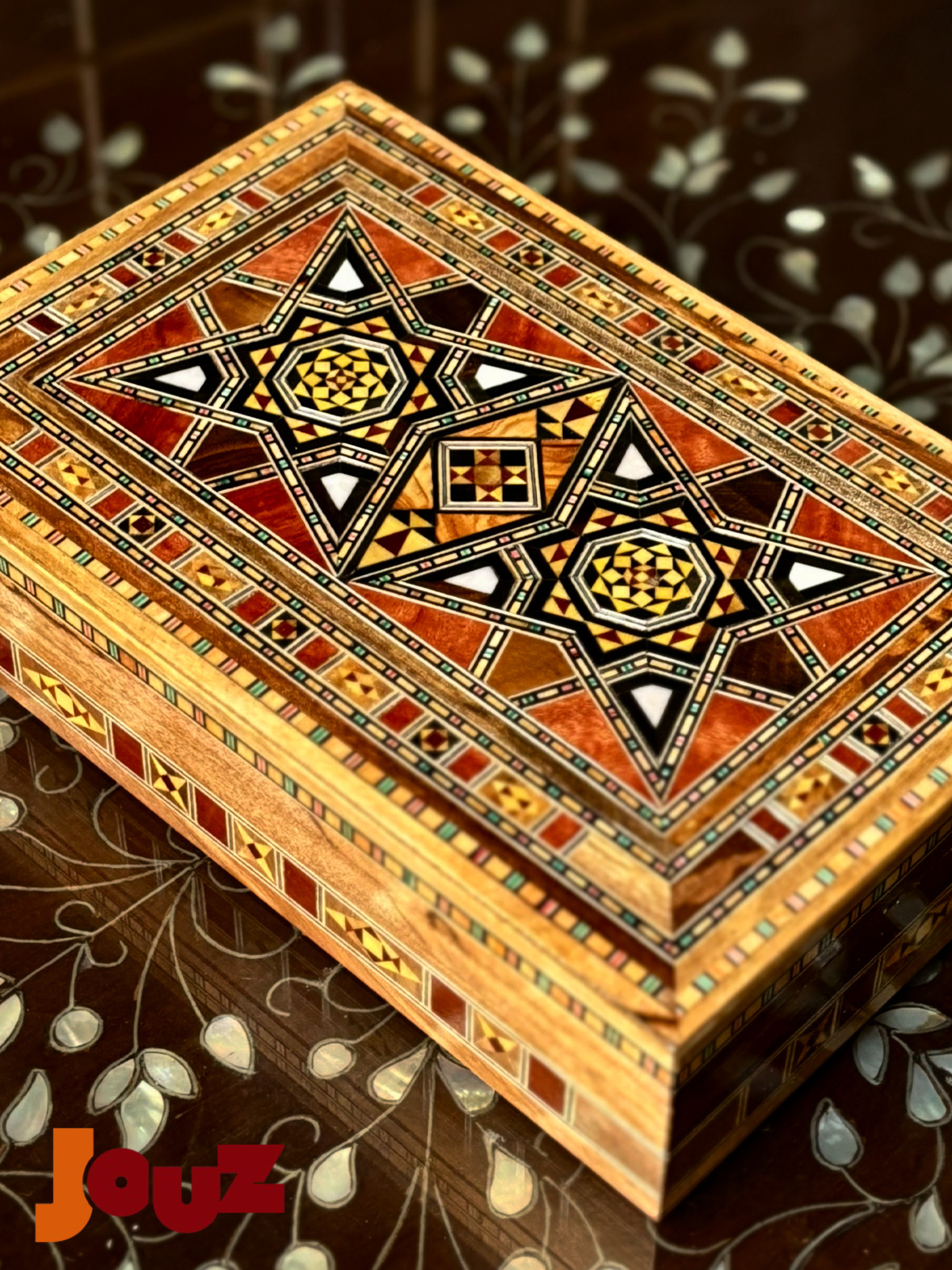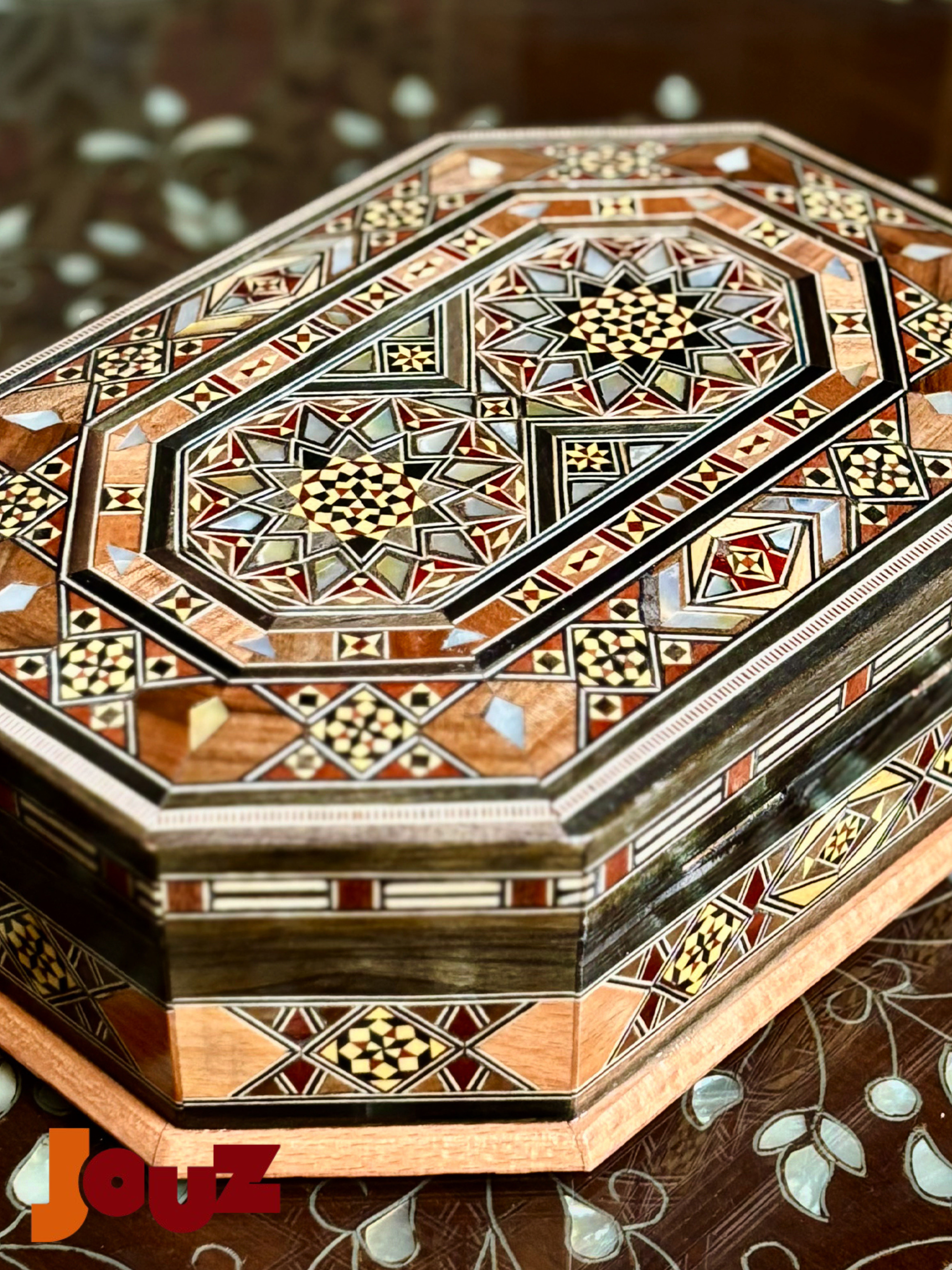 Our Team is truly passionate about Handmade Syrian Mosaic. This art has been our family’s business for generations and it’s rooted in our blood. So, we'd like to share our passion with the world. Check out our website: www.jouzstore.com Instagram: @jouz.art We do our best to give you a glimpse of our traditions and our culture, we produce and design great quality, handmade products that will last for ages to come. Mosaic is an ancient Syrian art that is more than 300 years deep in Damascus' history; it is the art of grafting wood with shells, silver or ivory. Early in the 19th century, mosaic existed in the houses of almost all well-established Syrian families, after which it became a familiar décor in presidential palaces around the world. The craft utilizes different types of wood including walnut, beech and other types, but the delicacy of it lies in the maker’s imagination, who innovatively manipulate geometrical shapes, octagons, squares, hexagons and triangles, to come up with unique pieces.