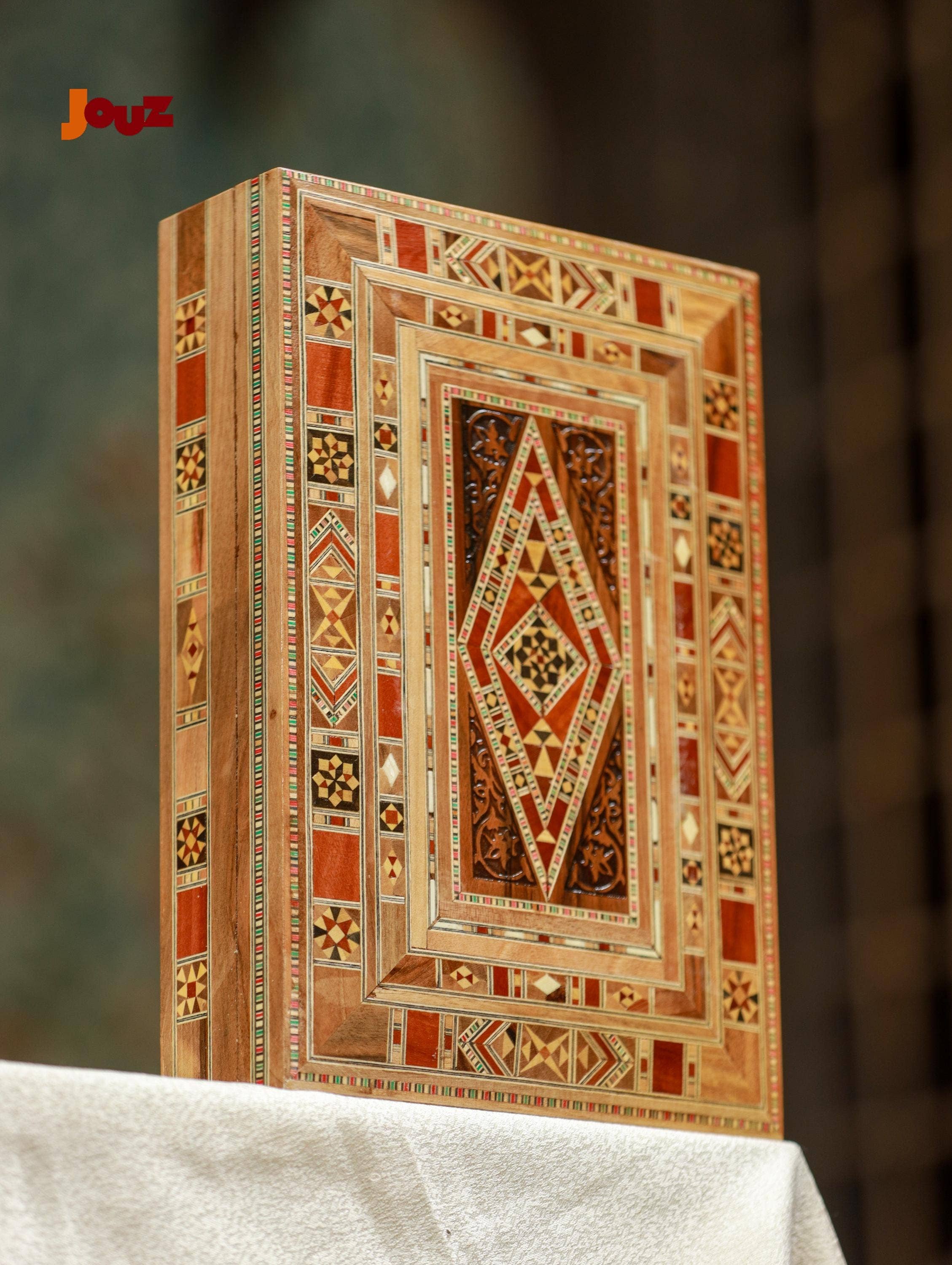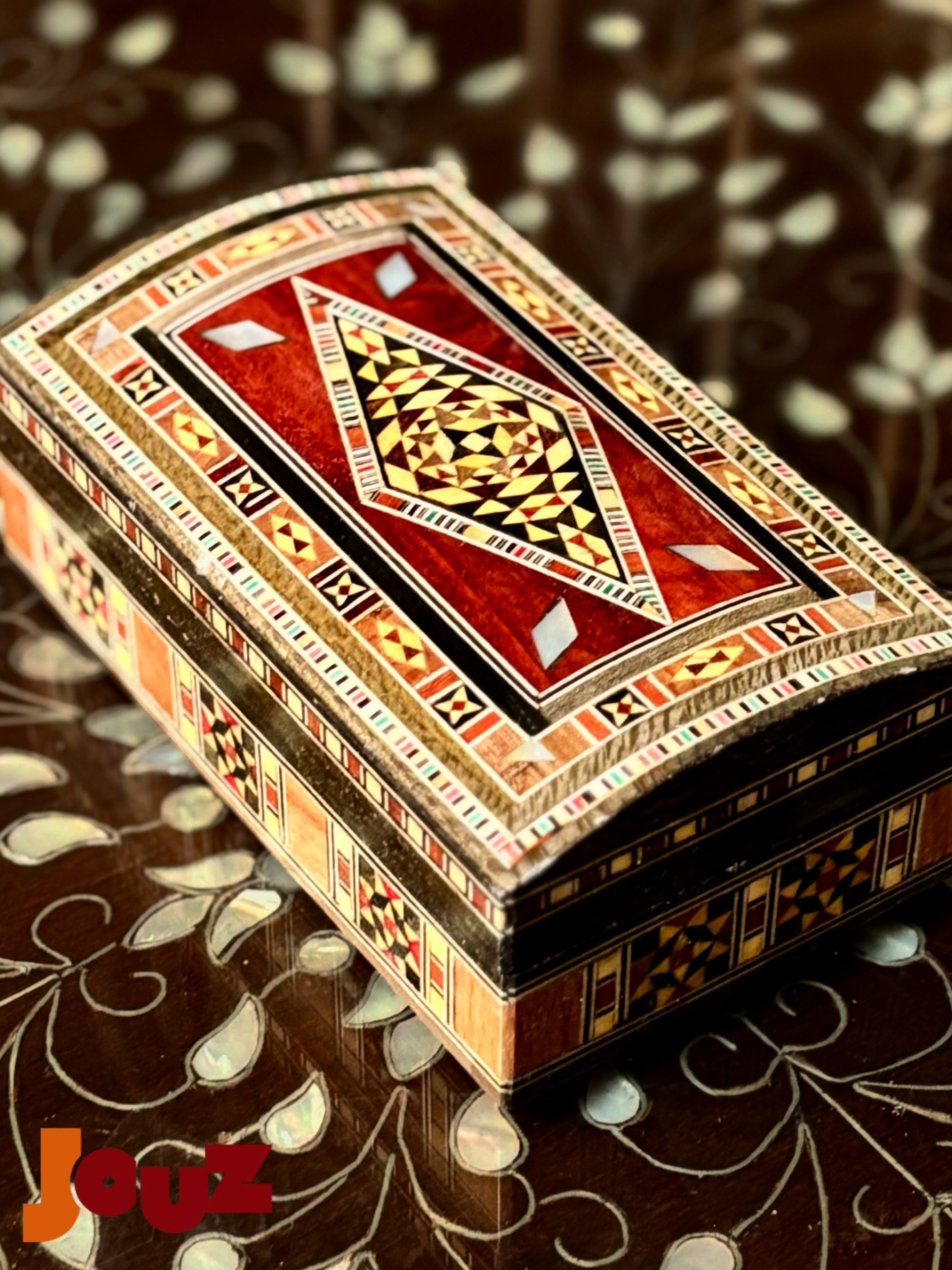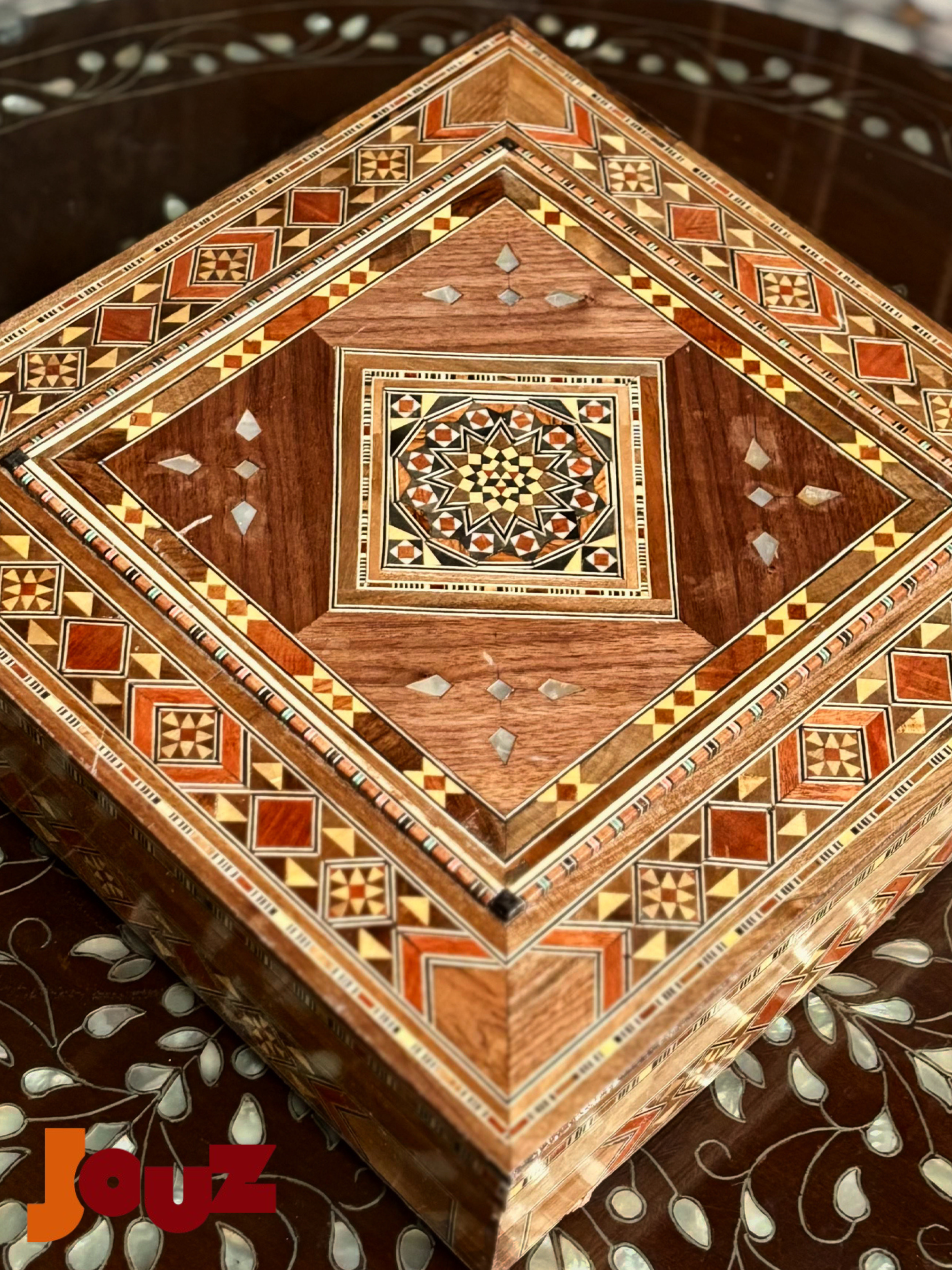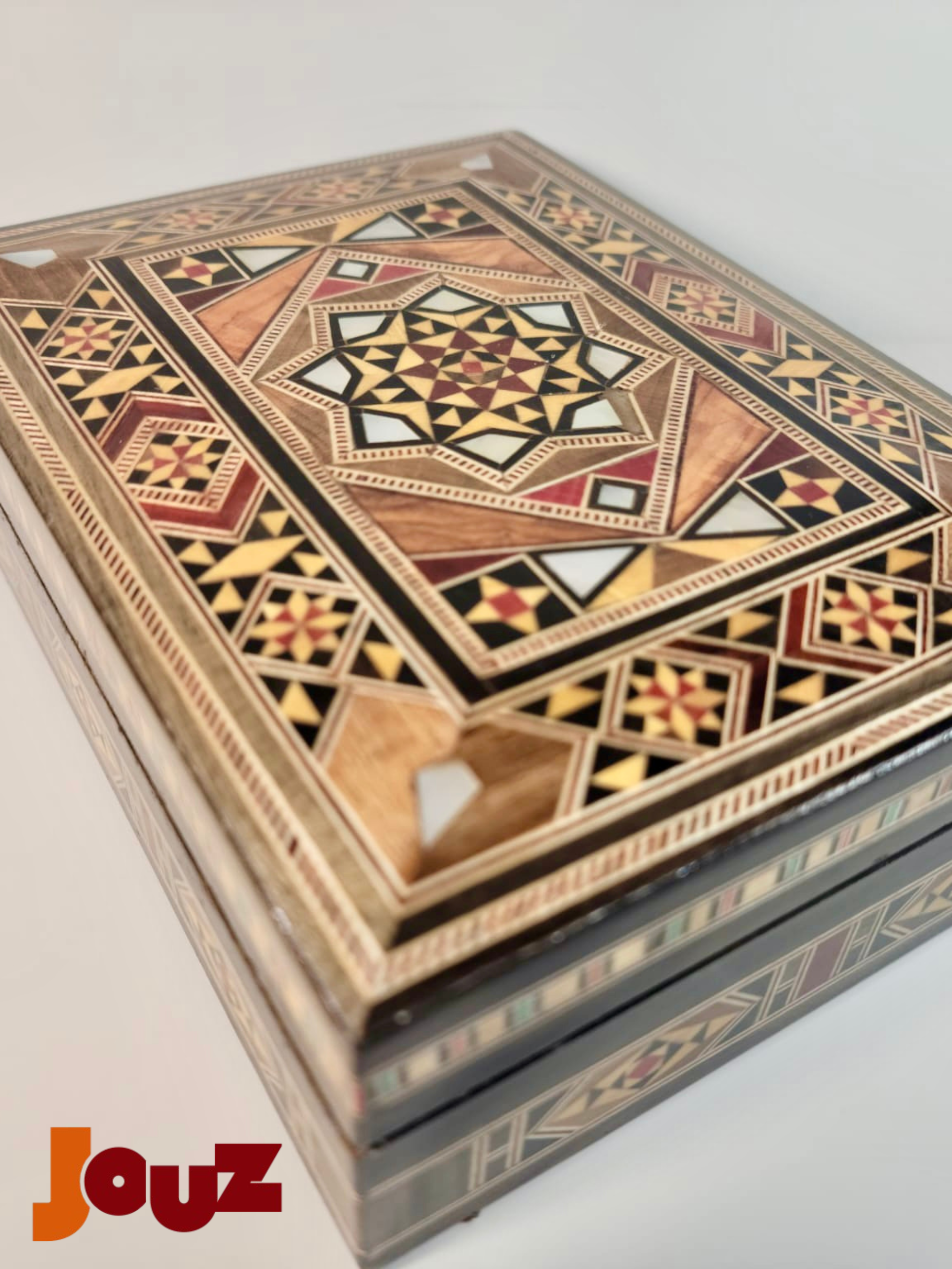 Our Team is truly passionate about Handmade Syrian Mosaic. This art has been our family’s business for generations and it’s rooted in our blood. So, we'd like to share our passion with the world. Check out our website: www.jouzstore.com Instagram: @jouz.art We do our best to give you a glimpse of our traditions and our culture, we produce and design great quality, handmade products that will last for ages to come. Mosaic is an ancient Syrian art that is more than 300 years deep in Damascus' history; it is the art of grafting wood with shells, silver or ivory. Early in the 19th century, mosaic existed in the houses of almost all well-established Syrian families, after which it became a familiar décor in presidential palaces around the world. The craft utilizes different types of wood including walnut, beech and other types, but the delicacy of it lies in the maker’s imagination, who innovatively manipulate geometrical shapes, octagons, squares, hexagons and triangles, to come up with unique pieces.