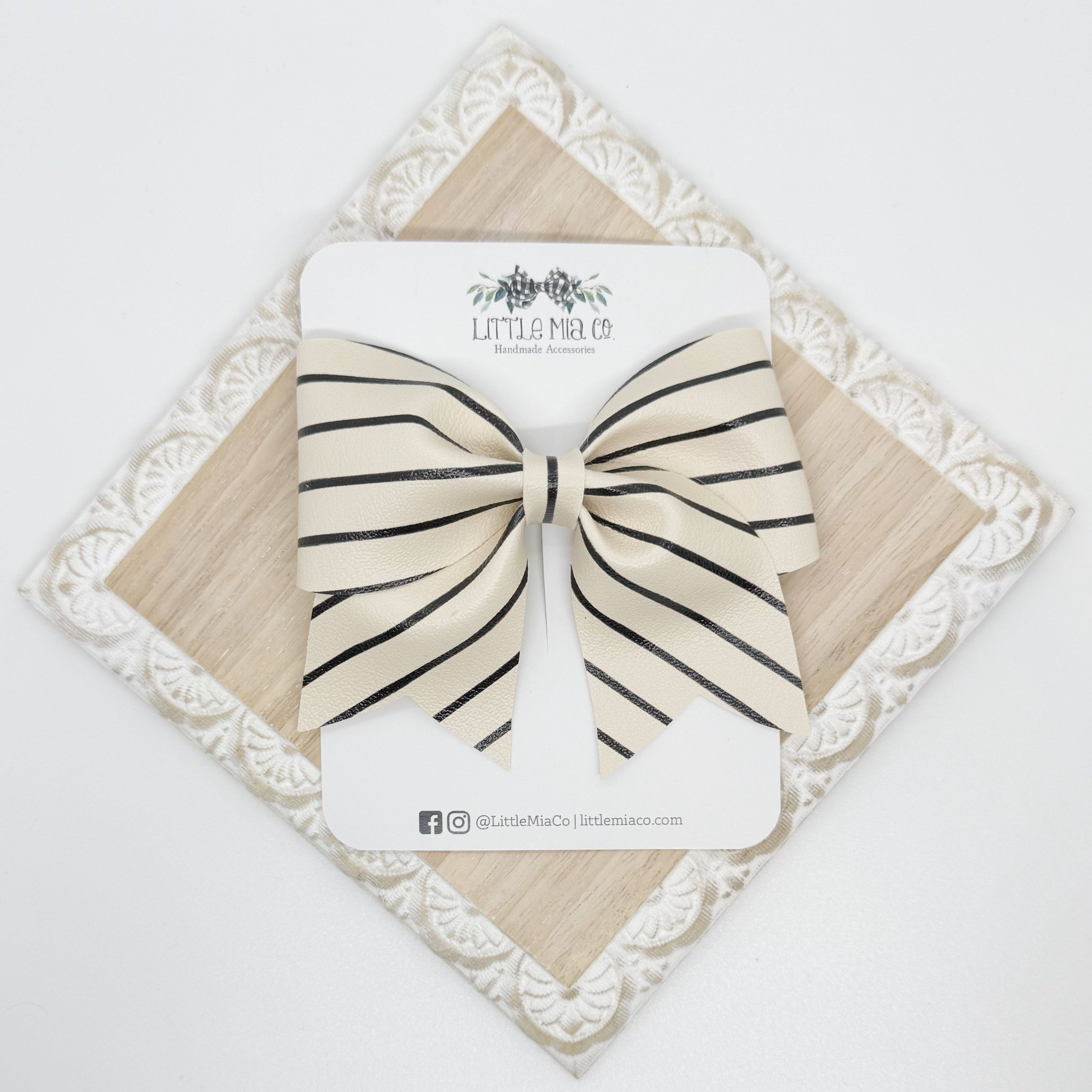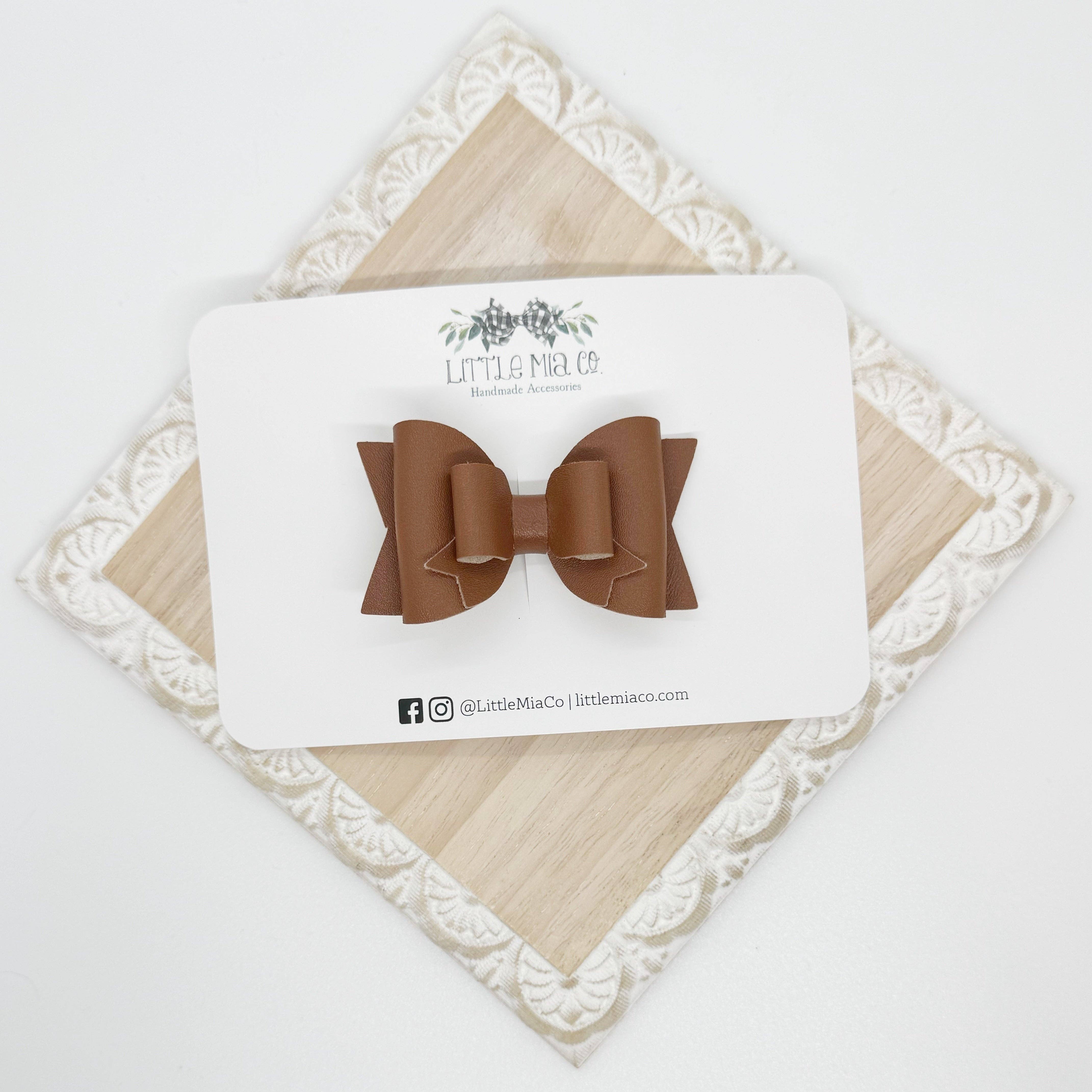 We are a mama run small shop that creates bows and accessories for newborns to adults. All of our bows and accessories are handmade with faux leathers. We offer a variety of sizes, styles, colors and textures.After having two boys we were blessed with a girl and I knew accessories were going to be her thing and Little Mia Co. became a reality.