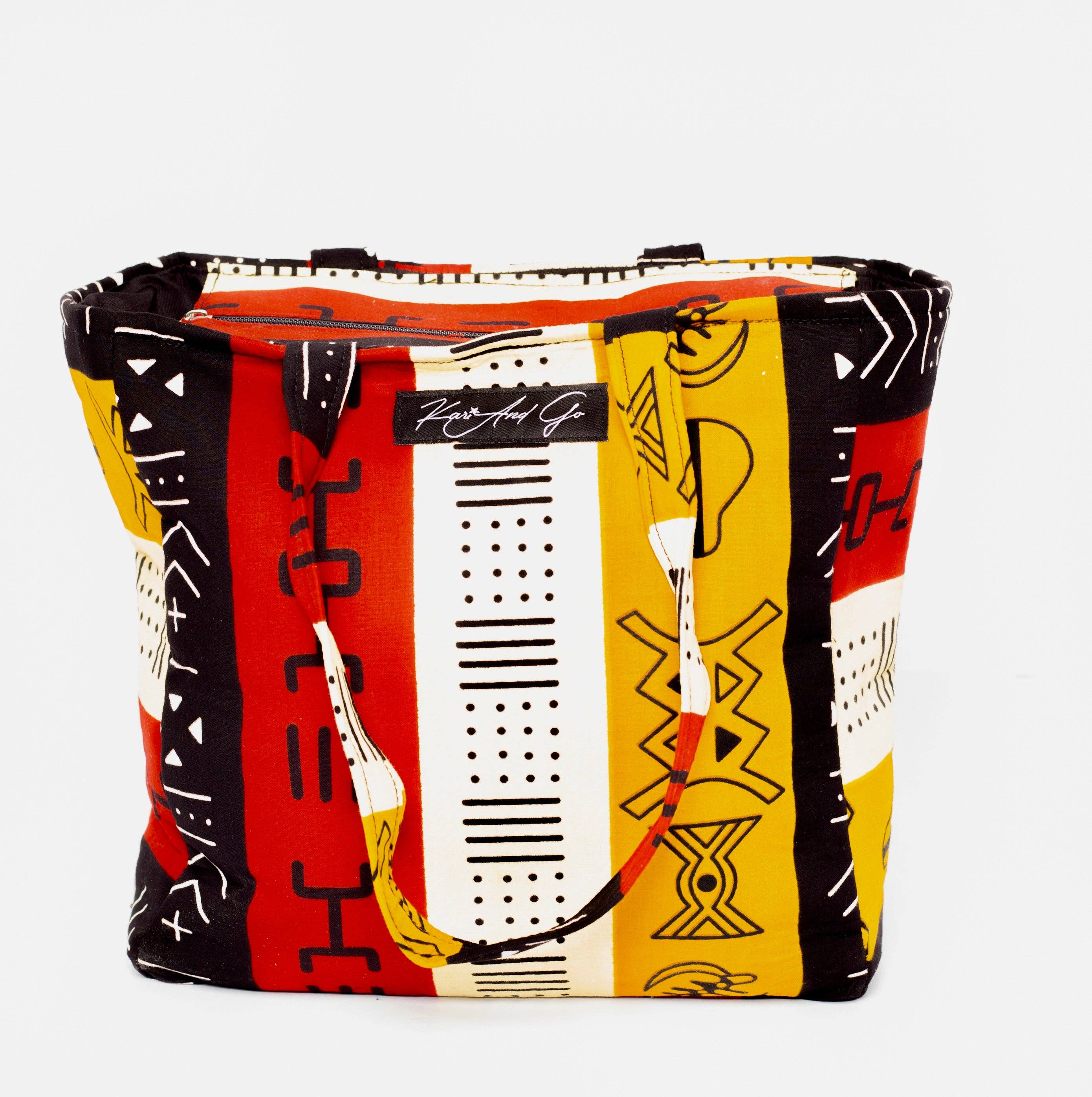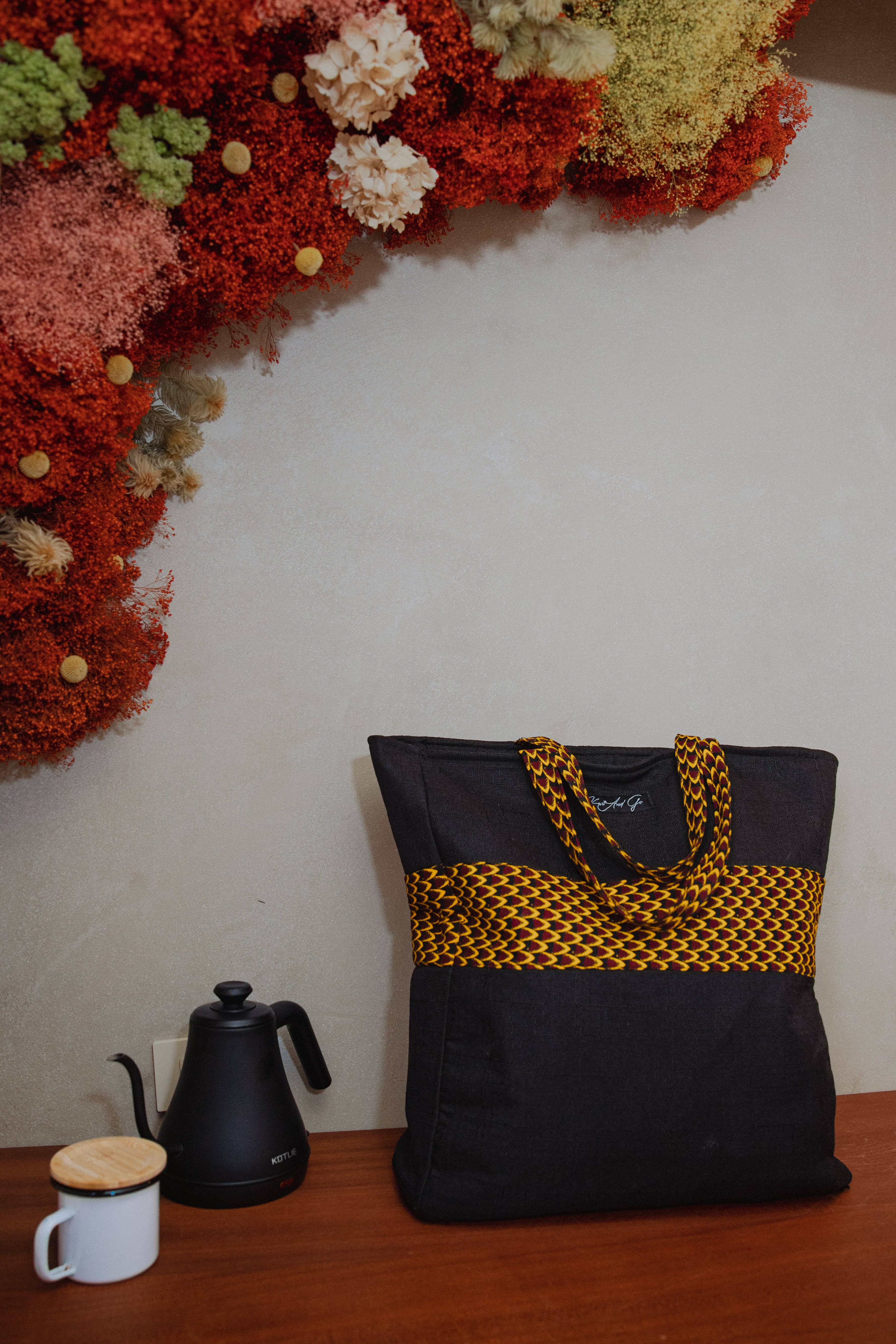 KariAndGo is a West African lifestyle brand that offers unique and functional handmade unisex fashion and accessories. All products are handmade in Ghana and produced with the utmost quality and care, upholding the principles of fair trade. KariAndGo pieces are designed to bring vibrancy and fun into everyday life or the perfect travel accessory while maintaining their durability, making them the perfect choice for anyone. KariAndgo has a direct impact on Ghana by employing local young creatives. Our mission is to "create persistent jobs for local artisans by employing them to help design and create quality African Print and Ghanian inspired accessories". Our main employee is a gentleman called Cephas. Akosua, the brand owner, met him in 2019 at a local market. Cephas was asked to make an African print tote bag that was designed by Akosua. The tote bag became popular very quickly and many people asked where they can purchase. This was the birth of KariAndGo.