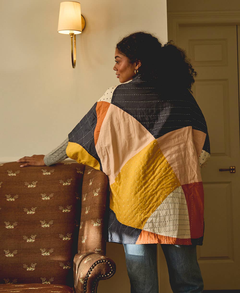 Anchal is a non-profit social enterprise that empowers marginalized women in India by creating sustainable, income-generating careers in eco-friendly textiles. Through collaboration and design, Anchal produces award-winning, handmade products that blend traditional techniques with eco-friendly methods, minimizing environmental impact and championing sustainability in the fashion industry. Led by sisters Colleen and Maggie Clines, Anchal’s contemporary designs are inspired by heritage artwork, vernacular architecture, and the maker's journey. The brand’s dynamic patchwork and unique stitch patterns innovate traditional Kantha quilting, with each piece meticulously hand-stitched by 180 artisans in Ajmer, India, using organic cotton or vintage sari fabric. Anchal’s mission provides its artisans with full-time jobs, healthcare, design training, and educational workshops, offering immediate, life-changing support with every purchase.