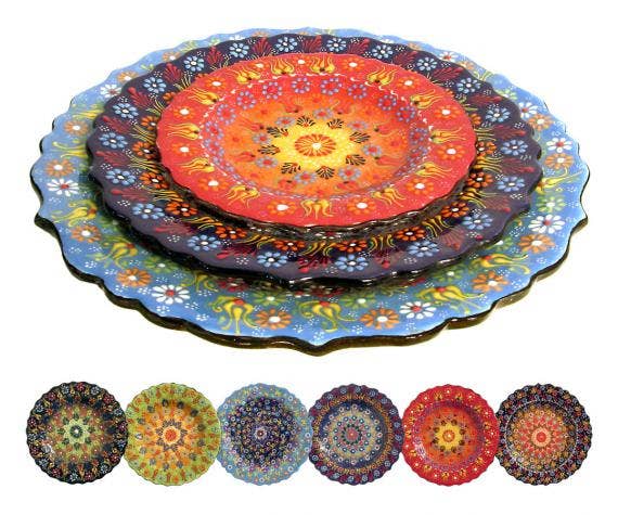 Several years ago while sourcing textiles in Turkey we discovered and fell in love with the Turkish time honored crafts. We found their hand made and hand painted ceramics dated back over 600 years. We knew we had to bring these wonderous works back to share with our customers. It all started with a small 5cm bowl for what we refered to it as "our rings and things accessory bowl". Now we are proud to bring this expanded truely special works of art into the every day lives of our store owners and their customers. We import our ceramics directly from Turkey and from the best factories. All the hand painting is done within the homes of the painters. We only import lead free and food safe finished ceramics. Mosaic Art is also a time honored craft found in Turkey and throughout the Mediterranean region. We are also very proud to present beautifully hand crafted and unique lamps, chandeliers and candle holders to our store owners. Each individual piece of glass is cut and placed by hand. The lamps are rich in color and pattern and create distinct and stunning lighting. Turkey is steeped in history and art and we invite you to experience a piece of if it thru our artisans talents &traditions in the products we bring to share with you.
