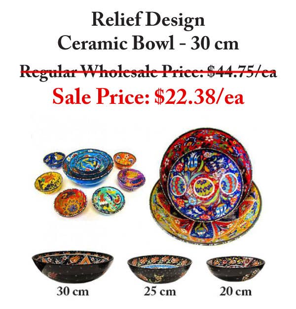 Several years ago while sourcing textiles in Turkey we discovered and fell in love with the Turkish time honored crafts. We found their hand made and hand painted ceramics dated back over 600 years. We knew we had to bring these wonderous works back to share with our customers. It all started with a small 5cm bowl for what we refered to it as "our rings and things accessory bowl". Now we are proud to bring this expanded truely special works of art into the every day lives of our store owners and their customers. We import our ceramics directly from Turkey and from the best factories. All the hand painting is done within the homes of the painters. We only import lead free and food safe finished ceramics. Mosaic Art is also a time honored craft found in Turkey and throughout the Mediterranean region. We are also very proud to present beautifully hand crafted and unique lamps, chandeliers and candle holders to our store owners. Each individual piece of glass is cut and placed by hand. The lamps are rich in color and pattern and create distinct and stunning lighting. Turkey is steeped in history and art and we invite you to experience a piece of if it thru our artisans talents &traditions in the products we bring to share with you.