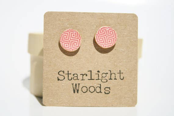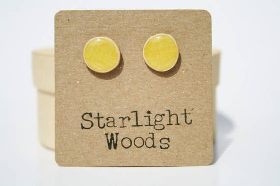Starlight Woods was founded on the idea of re-purposing. All of our products are made from reclaimed wood, tree branches specifically. My family and I hike through the woods to find branches to dry and ultimately turn into beautiful art for your ears. Each set of earrings is handmade by myself and my 17 year old daughter in our home studio in the Pocono Mountain of Pennsylvania.