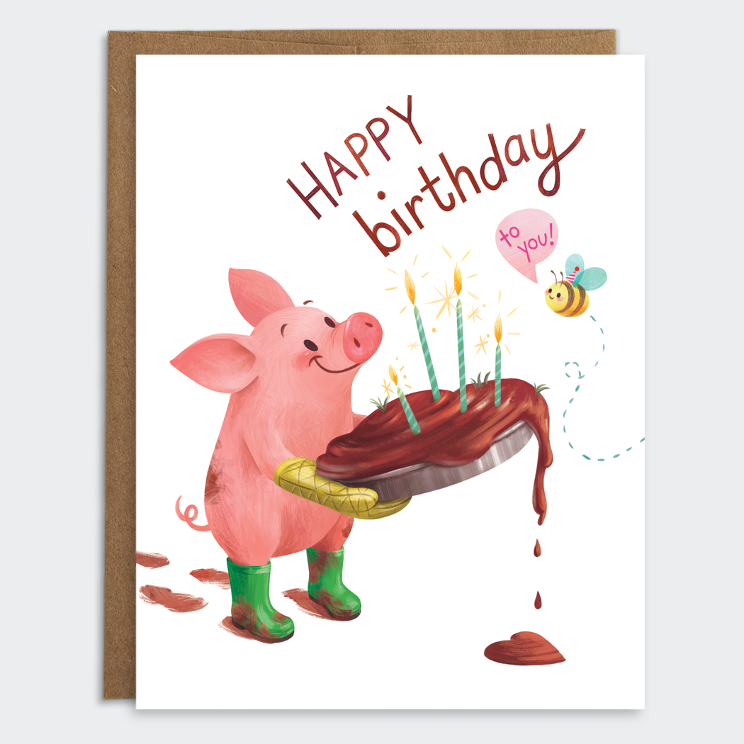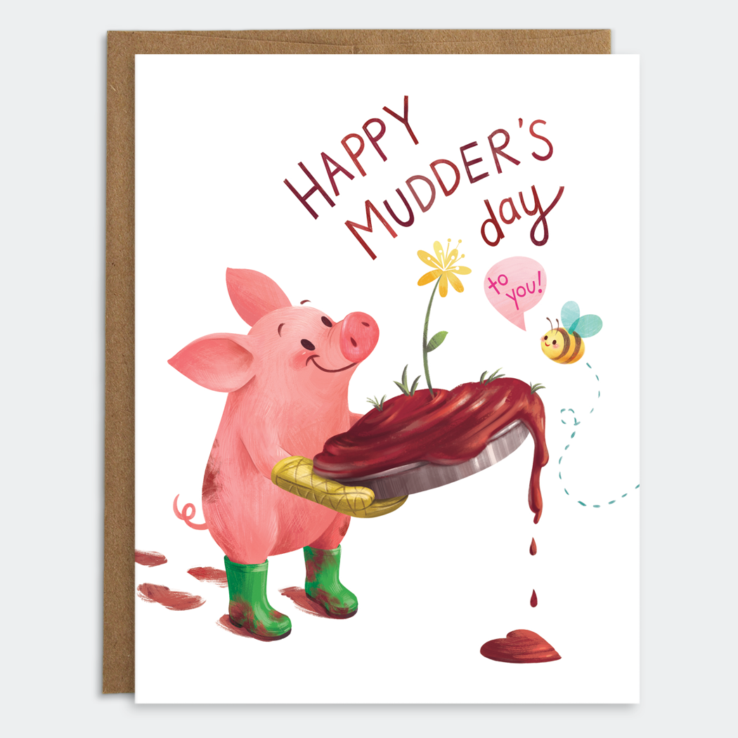 Mudsplash Studios is a playful stationery and illustration brand founded by illustrator Kacey Schwartz. After a few years of making loved ones smile with holiday cards featuring festive animal friends and loads of gingerbread, she launched the “cuter than necessary” line of greeting cards in San Francisco in 2015. Fueled by coffee, croissants, and a generous serving of toddler giggles, our small operation is now based near Raleigh, North Carolina. Our bright and cheerful designs capture sweet moments shared by charming characters with a penchant for sugary treats. Kacey loves to include visual puns and signature unexpected details that cause a second round of laughter when taking a closer look. In addition to designing greeting cards, Kacey has worked with clients to develop original characters, packaging illustration, and children’s art for games and books. Mudsplash designs have been featured in Brit + Co, My Modern Met, Apartment Therapy, Popsugar, DesignTaxi, Buzzfeed, HuffPo, Country Living, Stationery Trends and more!