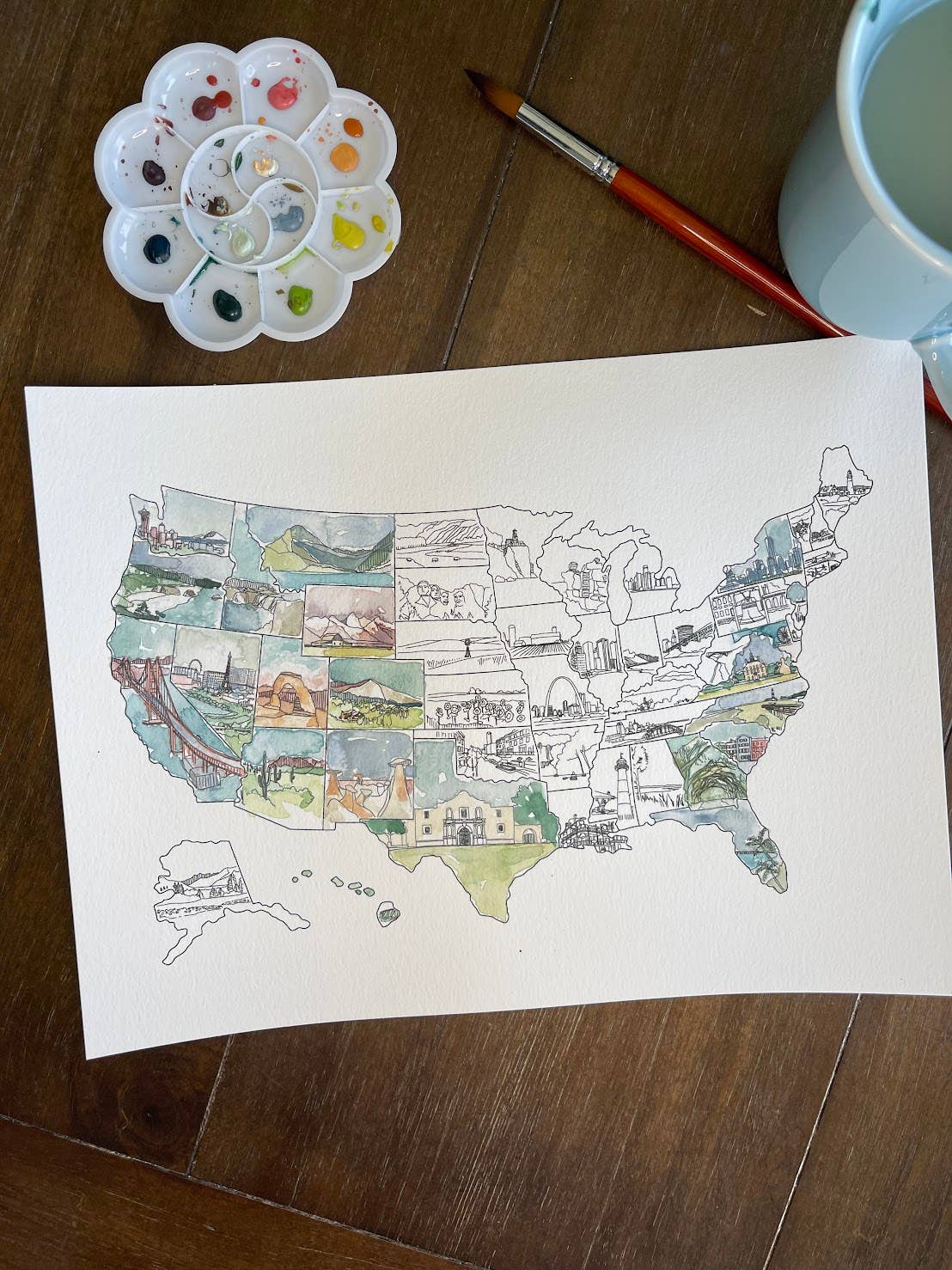 I started making my watercolor scratch maps in 2014. I was looking for a fun way to document my travels and couldn't find anything like I had in mind. My first map was messy and handmade... but people saw my map and loved it and started asking for their own. Little did I know, that one decision would have me where I am today and I couldn't be more grateful. I love being part of a movement to help families and individuals feel inspired to explore new places and cultures.