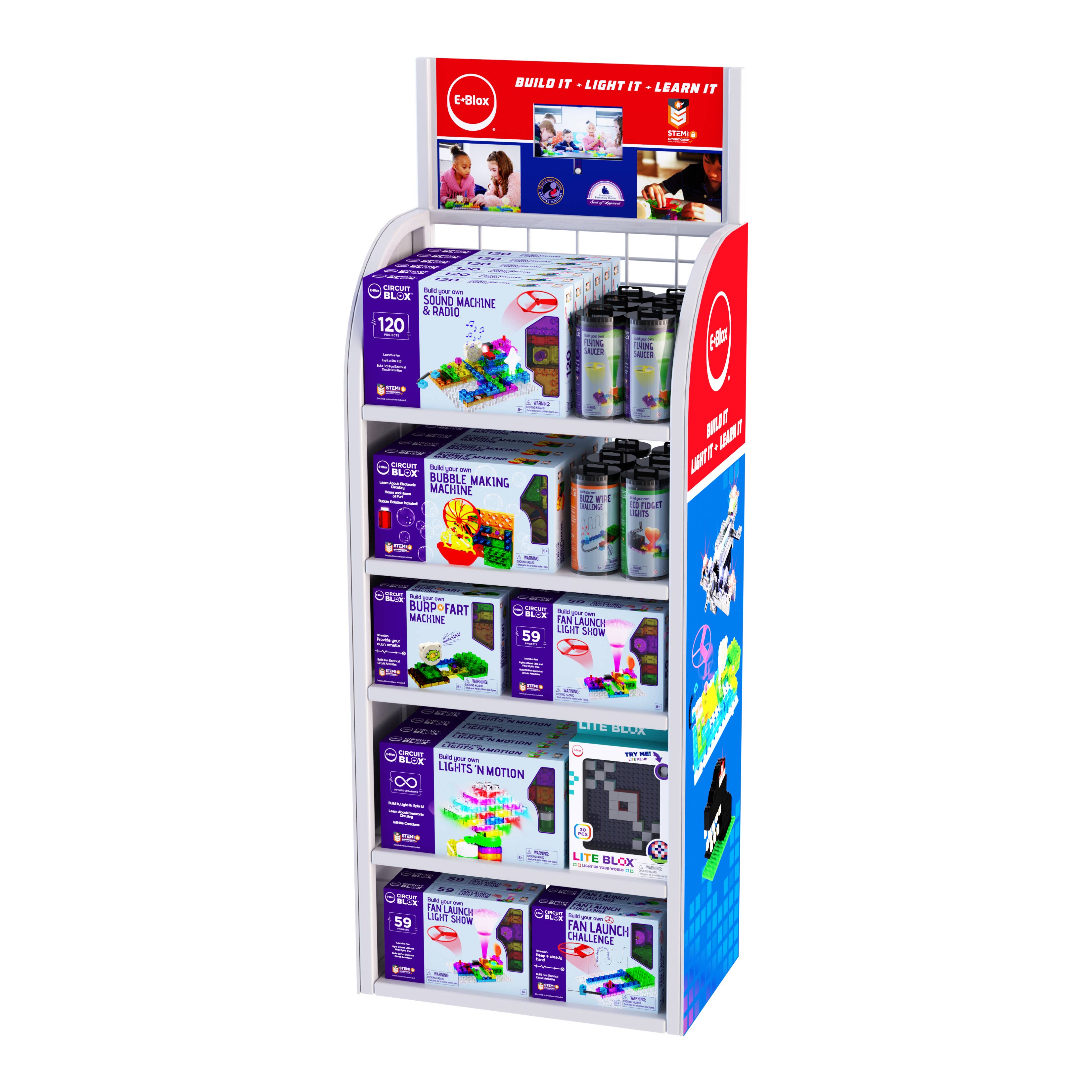 Toys that are tons of fun that kids build themselves while building their knowledge in the sciences and arts and equipping them with the skills they need to succeed in the 21st century--and beyond! E-Blox is an emerging leader in educational electronic toys and products that engage children to Learn by Building.TM Based in Buffalo Grove, Illinois, E-Blox was launched in 2016 by Art Seymour and his sons James and Joseph after more than 90+ years of combined experience as entrepreneurs, inventors, and designers in the educational toys and wireless industries. E-Blox’s founders are now leading the way to a whole new generation of educational toys that give children of all ages the building blocks of a STREAM education–Science, Technology, Reading/wRiting, Engineering, the Arts, and Math–through the joy of play and discovery.