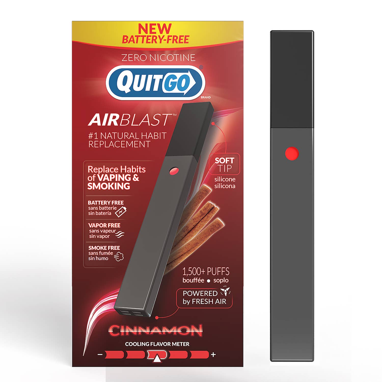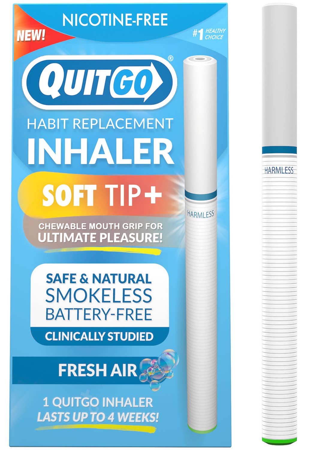 QuitGo was designed to replicate similar features of a real cigarette combined with scent and aroma to help you cope with oral fixation + psychological hand to mouth habit associated with smoking and vaping.