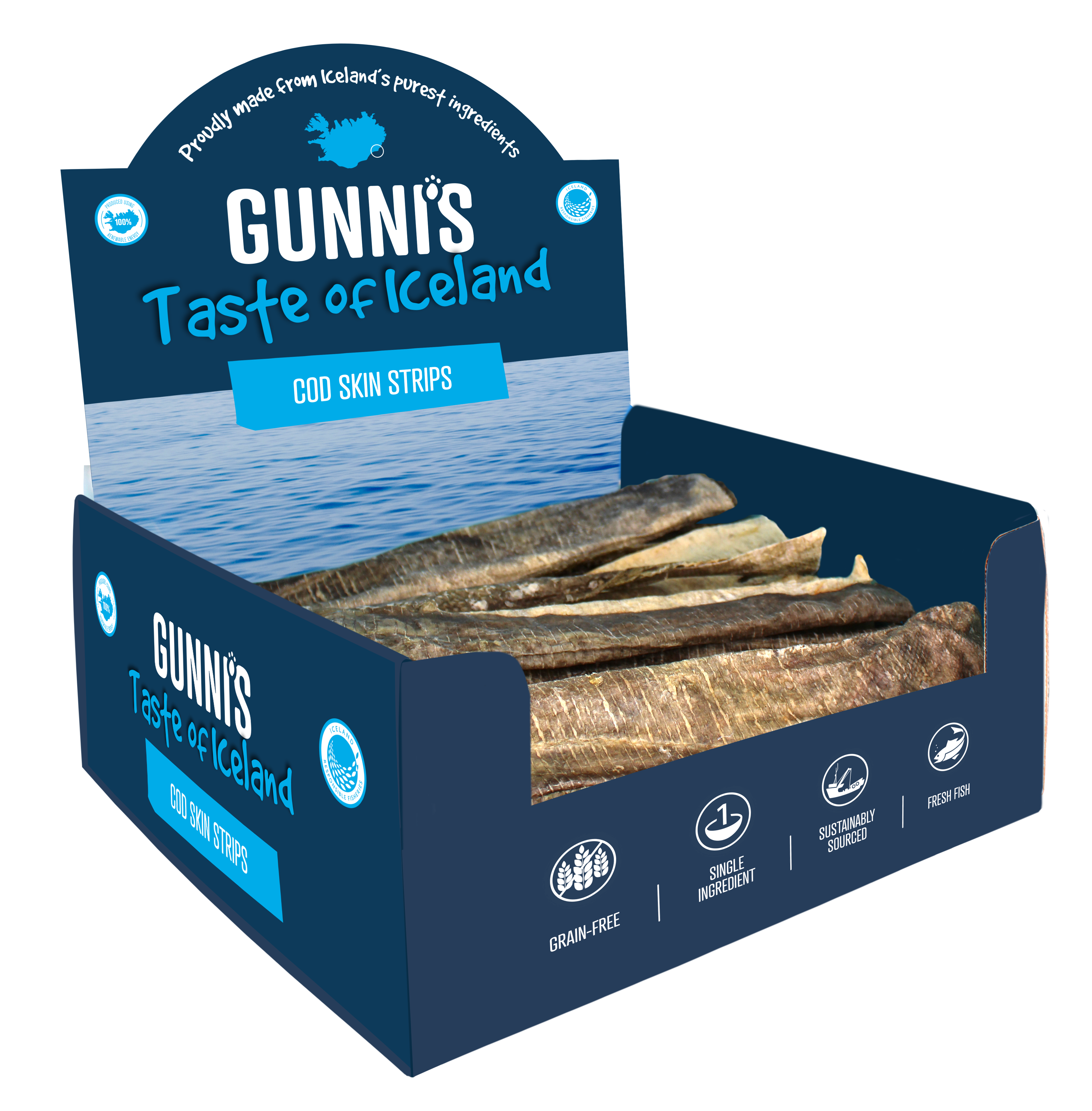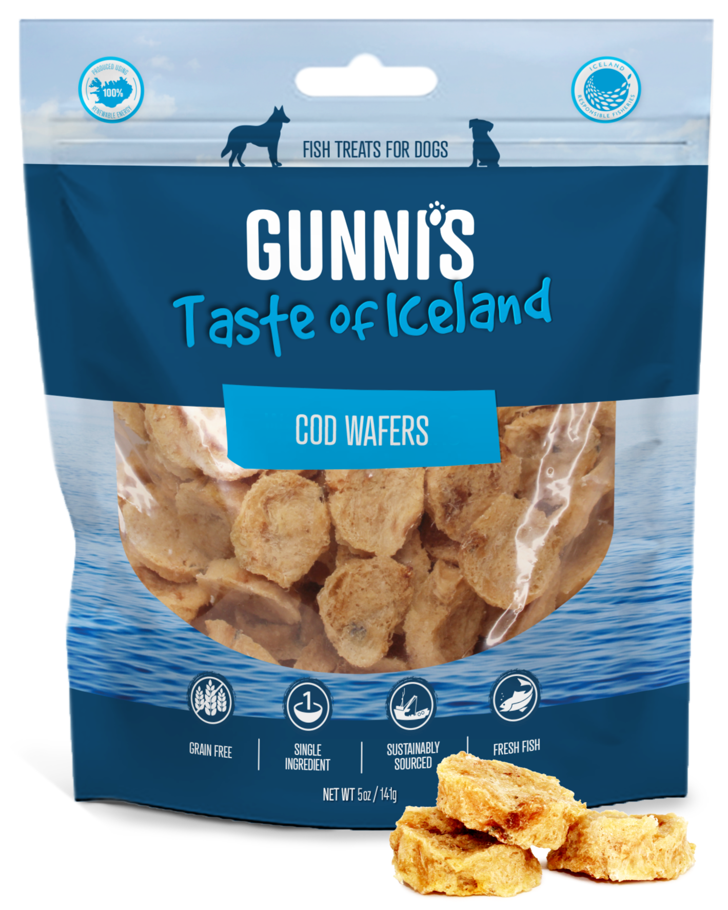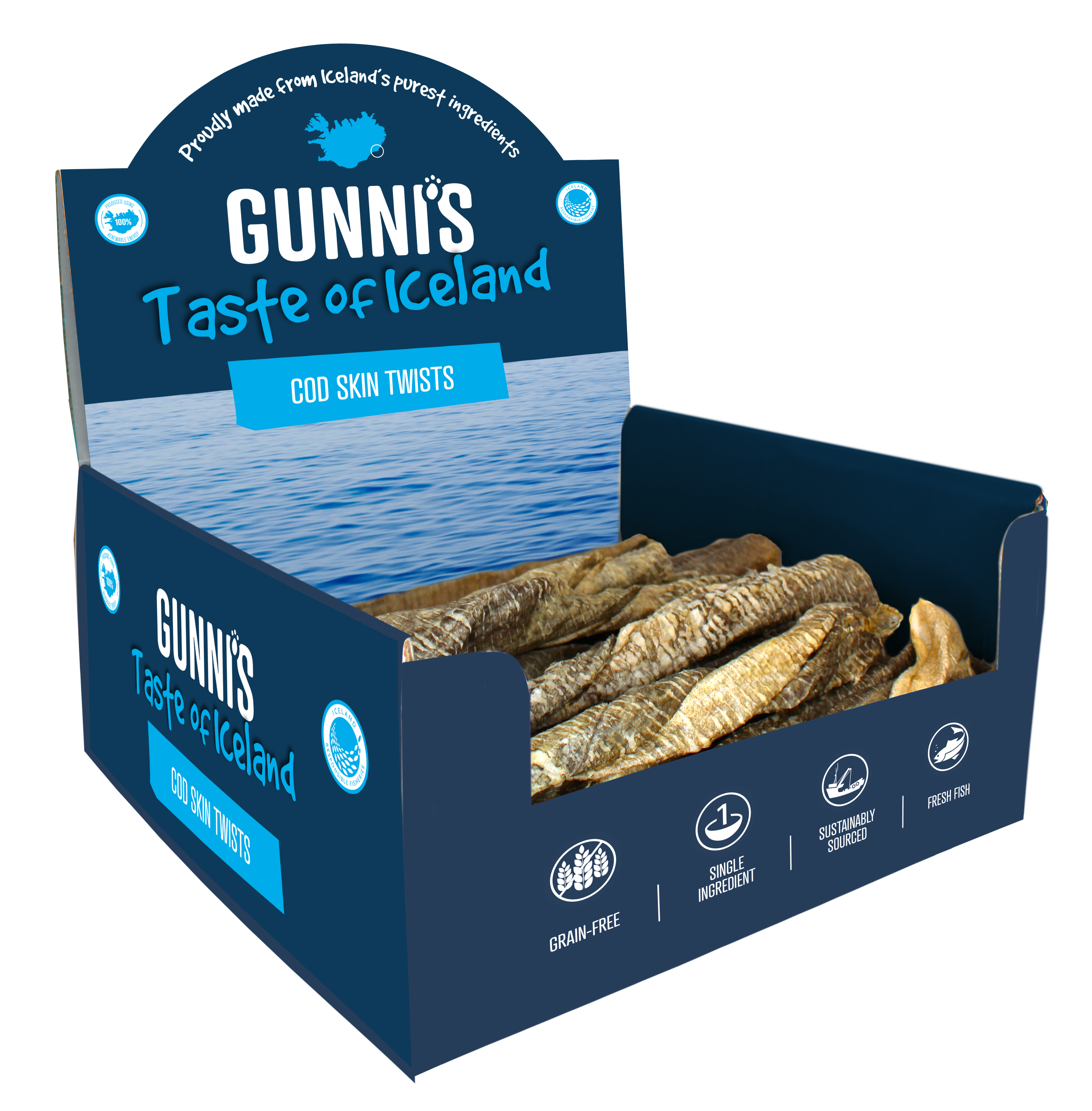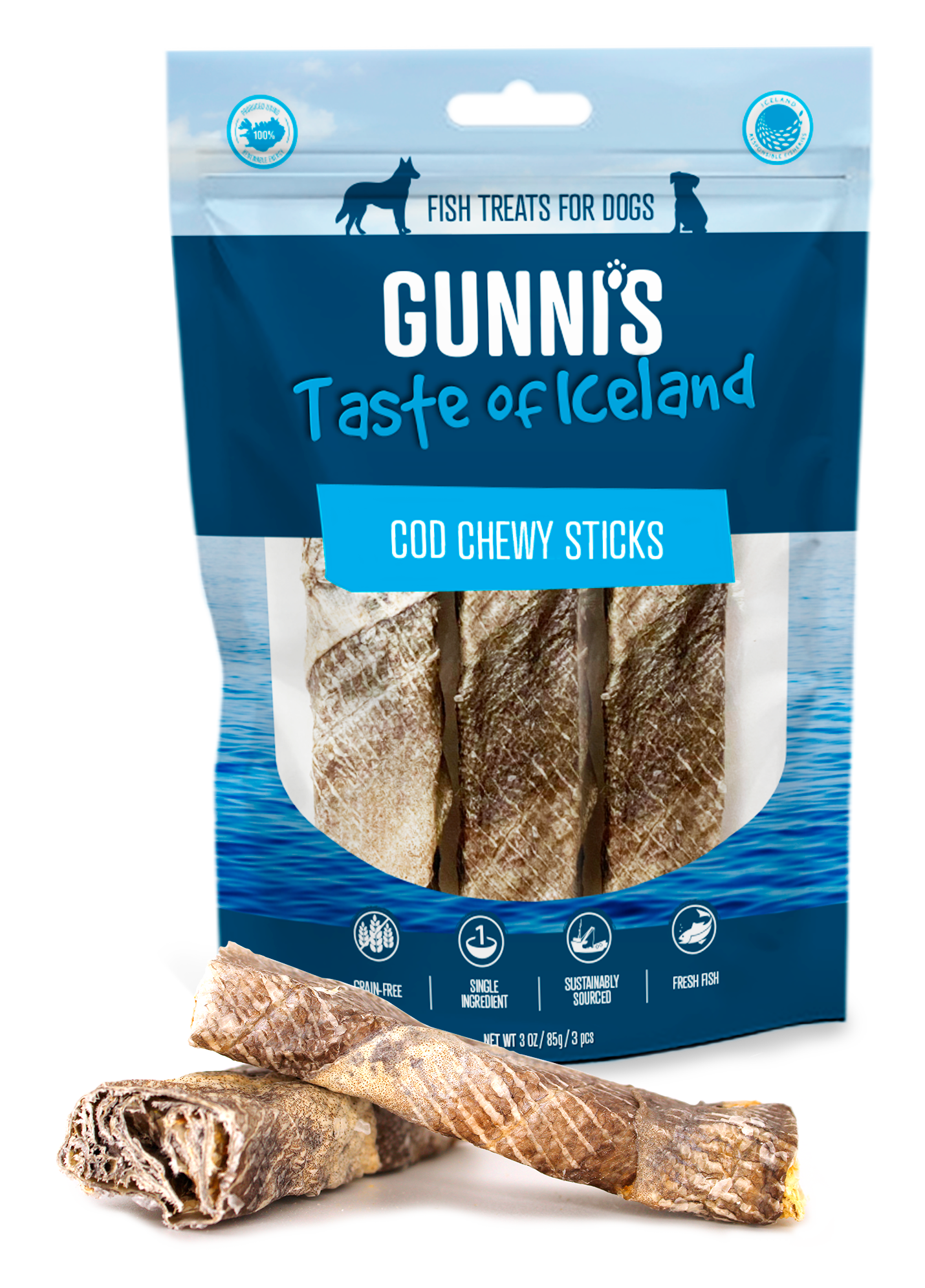 The history of Gunni's (pronounced goo-nees) Taste of Iceland dates back to 2012 when Gunni Sigurdsson found it difficult to source healthy treats for his puppy (his "bonus" child) in his home town of Reykjavik. Being born and raised in Iceland he was well aware of the nutritional benefits of the local fish he had long enjoyed and felt his dog should have access to those same benefits. Gunni started hand folding and air drying fish skins for his dog the Icelandic way, using geothermal energy, in his home kitchen. Gunni's Taste of Iceland strongly believes that our process is as important as our products and the packs we serve. Pure intention is behind every decision we make to ensure we keep you smiling, your four-legged companion's tail wagging and our environment thriving. Years later we are still partnered with the same family-owned fishery whose sourcing practices follow Iceland Responsible Fisheries' (IRF) strict guidelines. They are proud to be certified by IRF and we are all fully aligned with IRF's commitment to our underwater ecosystem and earth as a whole through their environmentally-focused fishery management principles. IRF ensures transparency through vetted documentation and promotes compliant practices while upholding community standards.