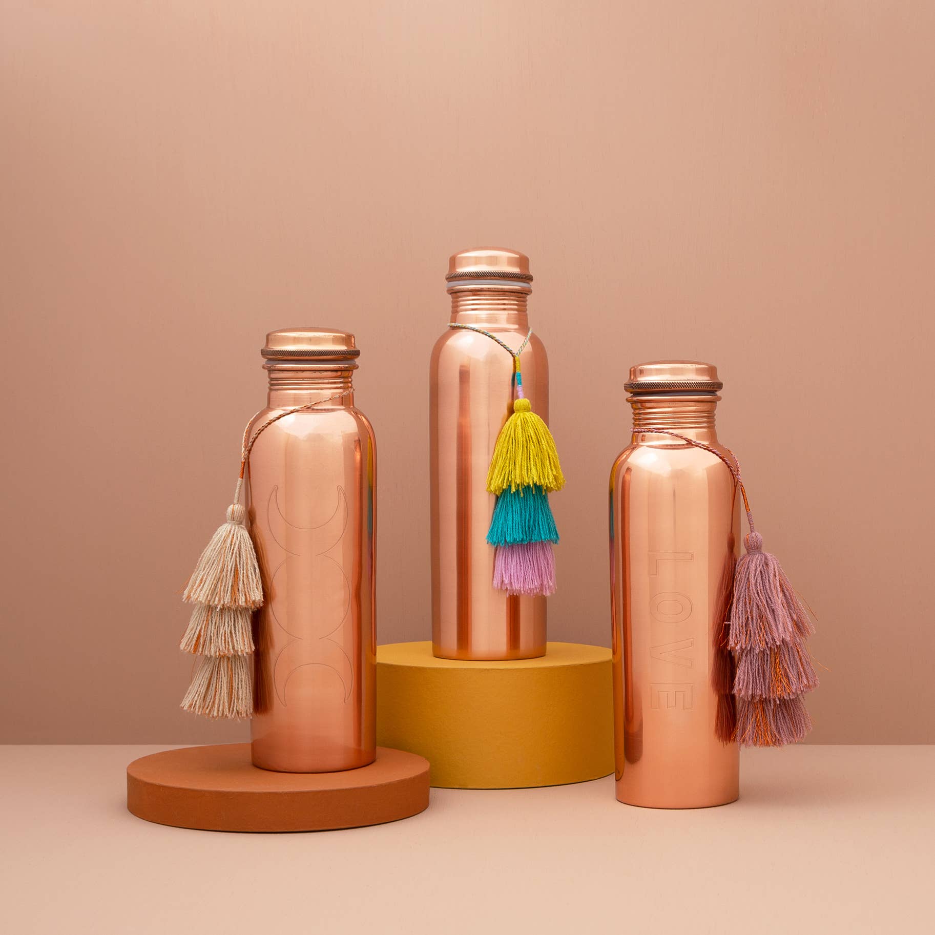 It all started with a solo adventure to India in 1998, and quickly developed into a love of the culture and craft of this vast and ancient land. In 2016, during my first trip back to India in over 15 years, I saw a copper water bottle in Rishikesh. Copper is such a striking, natural material and here it is as a refillable, eco-friendly water bottle? It was on the top shelf of a fairly dusty general goods store and the sun was hitting it in such a way that it actually glowed. The shop keeper then informed me it was "Ayurvedic and good for health!" Obviously I bought it and immediately went to the nearest bookstore and bought a book on Ayurveda. "Ayurveda" -a (5,000 year old) form of alternative medicine that is the traditional system of medicine of India and seeks to treat and integrate body, mind, and spirit using a comprehensive holistic approach especially by emphasizing diet, herbal remedies, exercise, meditation, breathing, and physical therapy. A glass of Tamra Jal ("copper water" in Hindi) is taken first thing in the morning. Everyday. Hmmm...if drinking from a copper vessel is the first thing you do to nourish the body, how can it also nourish the spirit? As a daily reminder to set a positive intention. Tamra Copper bottles are hand engraved with carefully chosen words or symbols to imbue the water contained with specific positive energies. "feed the body, nourish the spirit" - Cheryl Freeman Founder All products are hand made.