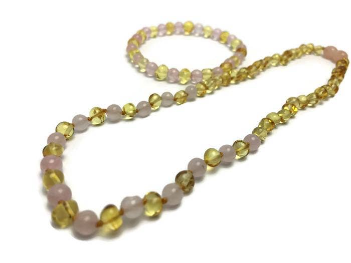 We started the business just over 7 years ago. The idea of Baltic Essentials started when our daughter was 4-5 months old and teething. My husband and I had to watch her suffer from fever for three days, and it was complete misery. We knew there had to be a natural solution out there to treat her symptoms so we did extensive research until we discovered a remarkable bead -- Baltic Amber -- that is actually derived from tree resin. It falls from trees in the Baltic and is collected along the shore although many initially believe the precious beads are made from stone. Intrigued, my husband and I spent several months researching Baltic Amber and finding ways to determine which are genuine and which are fake (as it is often replicated and sold as cheap plastic), because we did not want our daughter to wear the latter. We were fortunate enough to come into contact with a family in Lithuania who agreed to make a necklace in raw multi for our daughter in order to stop her suffering. Although it took some time going back and forth to get exactly what we needed, we were able to create a custom necklace for her. We noticed any time she began wearing it, her teething symptoms would disappear immediately. Our daughter gained her next few teeth that came in unnoticed, and soon my husband and I realized that this little miracle necklace calms inflammatory related symptoms from teething.