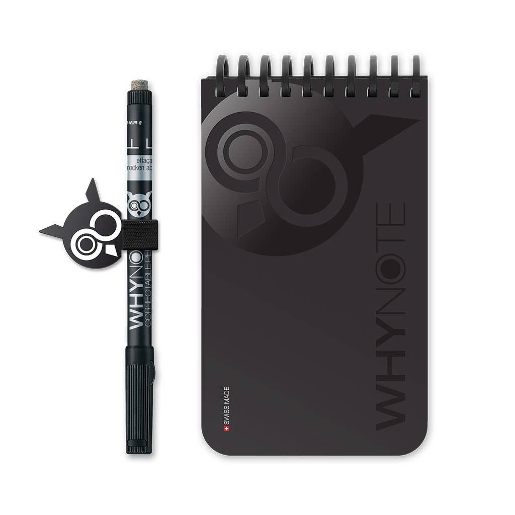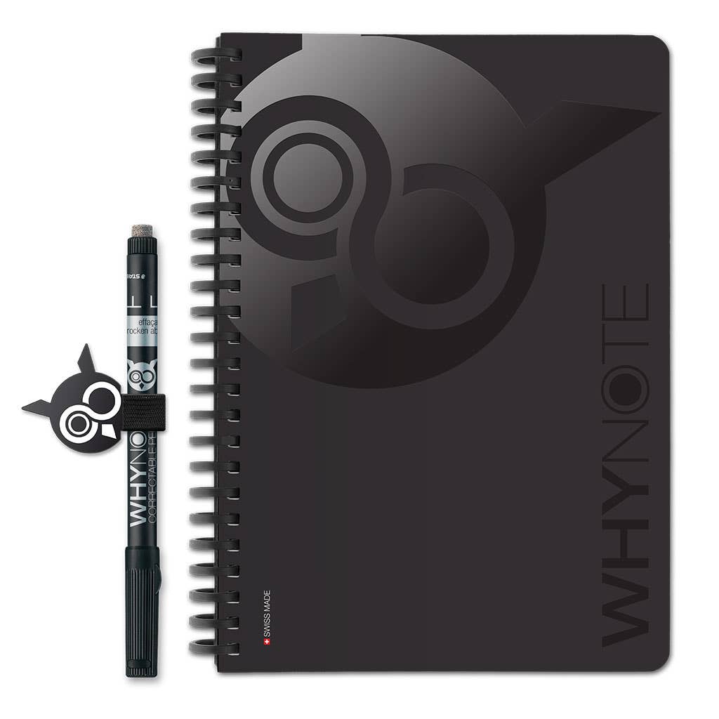 The WhyNote notebook is both ecological and practical. This reusable notepad allows you to erase its pages at will like on a real whiteboard. Stop wasting paper! Its Swiss Made manufacture guarantees local production of quality and respect for the environment. It is produced with FSC certified paper from responsible forestry. Use, erase, start again!