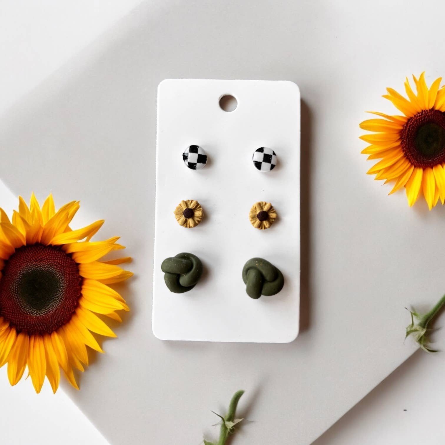 At the heart of our handmade earring brand is a desire to create beauty with purpose. What began as a quiet creative outlet has grown into a meaningful business that celebrates femininity, faith, and individuality- one handcrafted pair at a time. I design each pair of polymer clay earrings with care, intentionally making every set unique so the women who wear them feel like the one-of-a-kind creation that they are. I want them to know they are designed by God who thinks they are beautiful just the way he designed them. From bridal parties to everyday wear, my earrings are designed to help women feel confident, lovely, and seen. Whether you're drawn to a classic neutral or a bold floral statement, there is a piece here that was made just for you! Everything is handmade in small batches with love- and a lot of joy- in the heart of the Midwest from a stay at home mom of 5 young children.