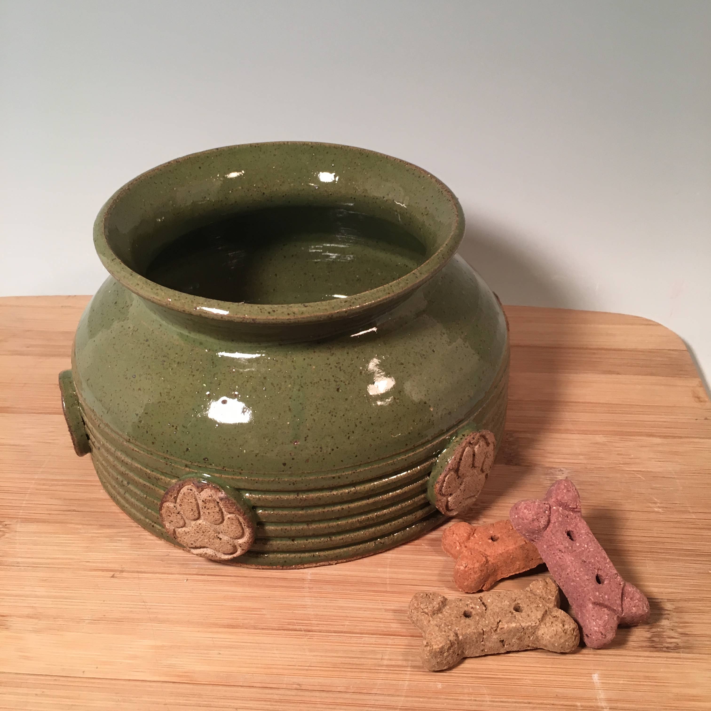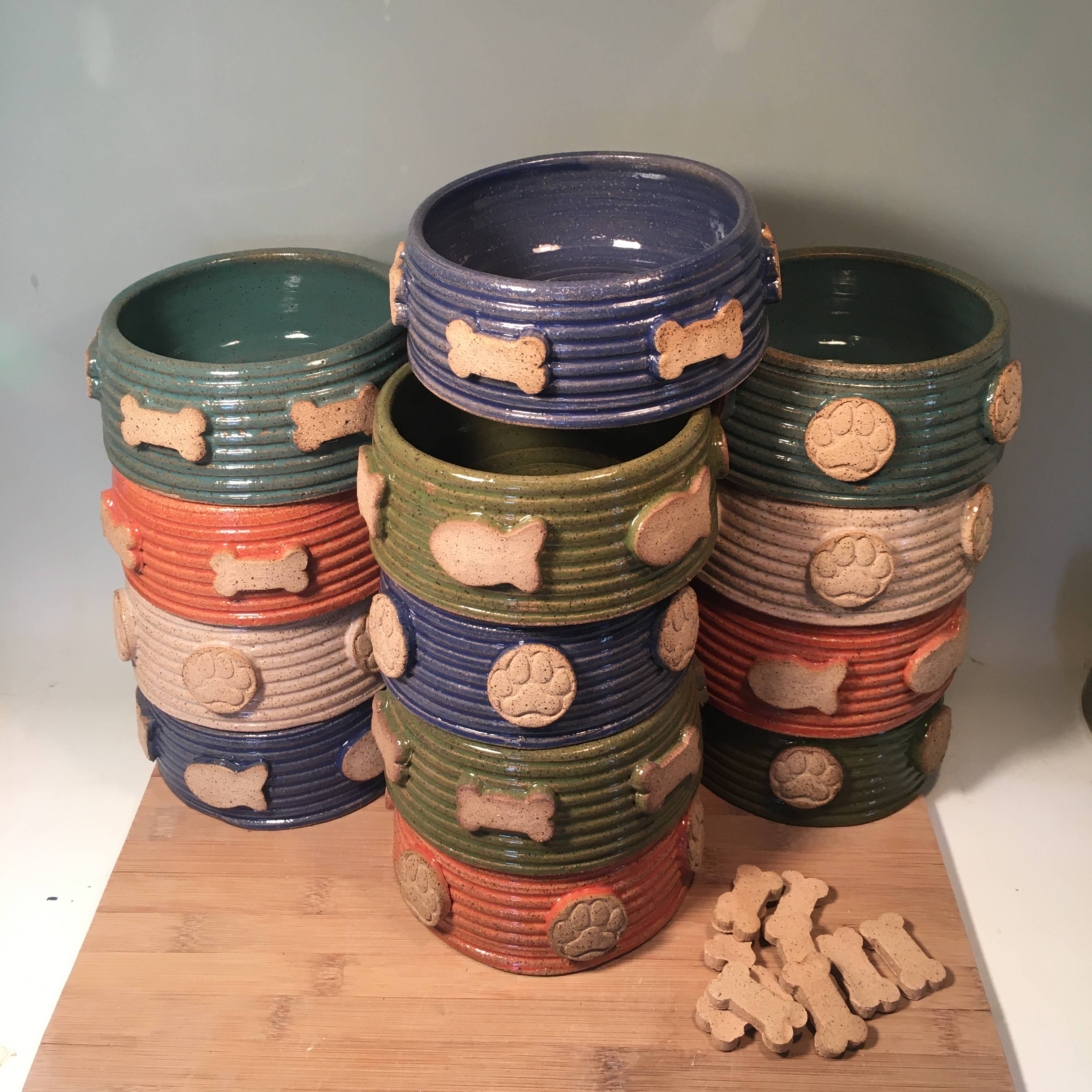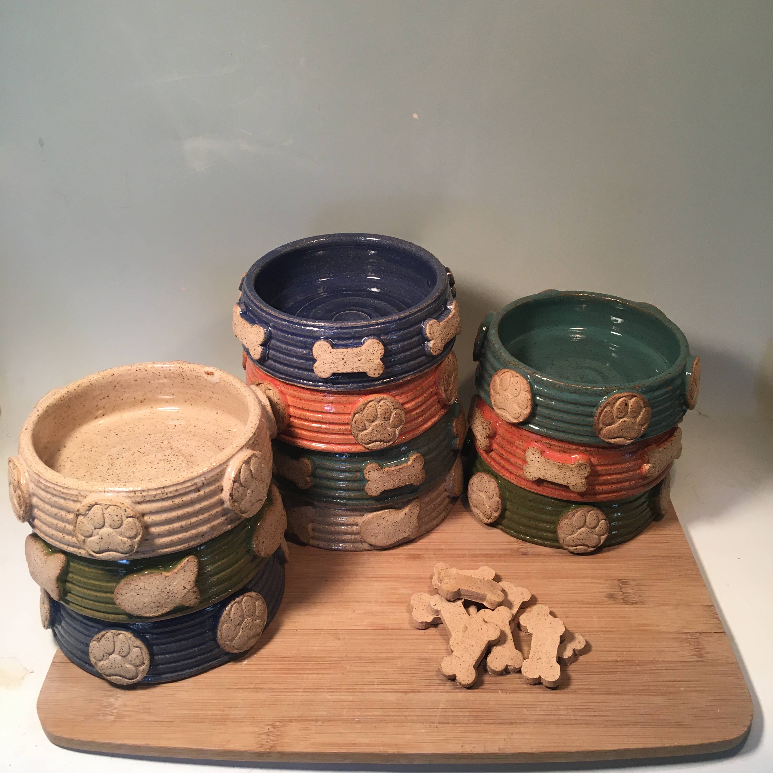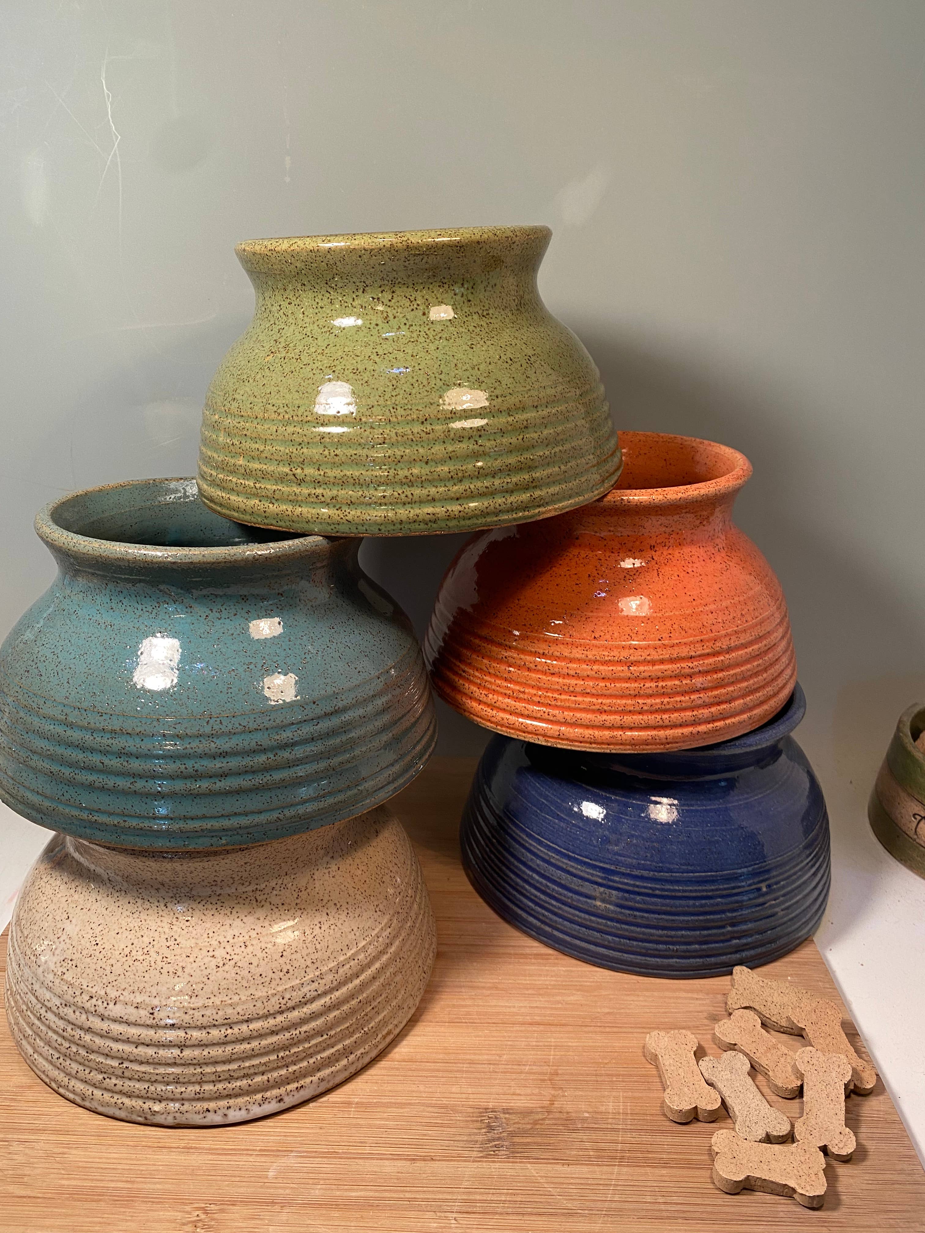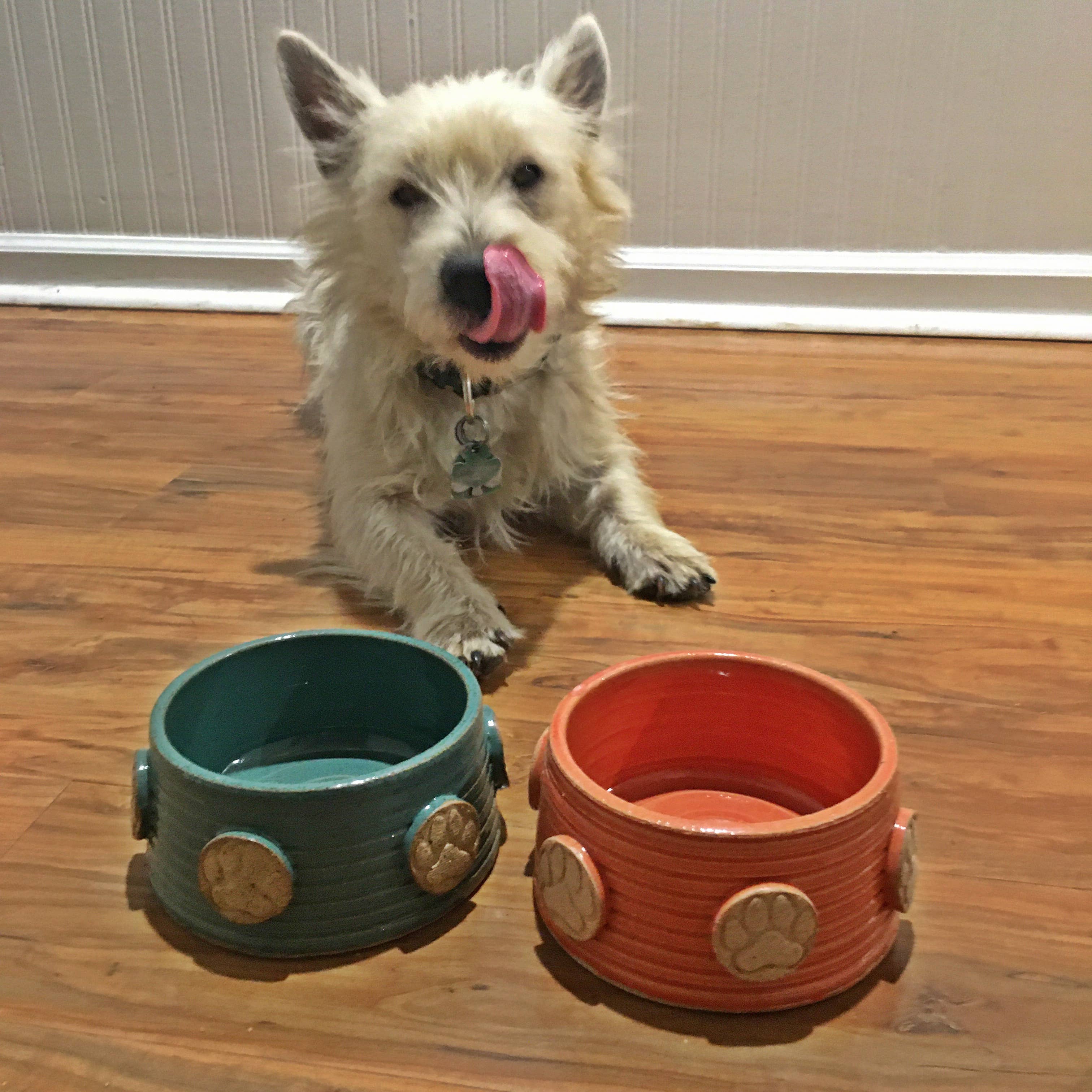 My name is Jennifer O’Keefe and I am a ceramics artist based in Indianapolis Indiana. I specialize in making colorful handmade wheel thrown pottery for pets and for the people who love them! I work in my home studio supervised by my four dogs, two Labrador Retrievers, a West Highland White Terrier and a Beagle. A portion of proceeds helps pets in need.