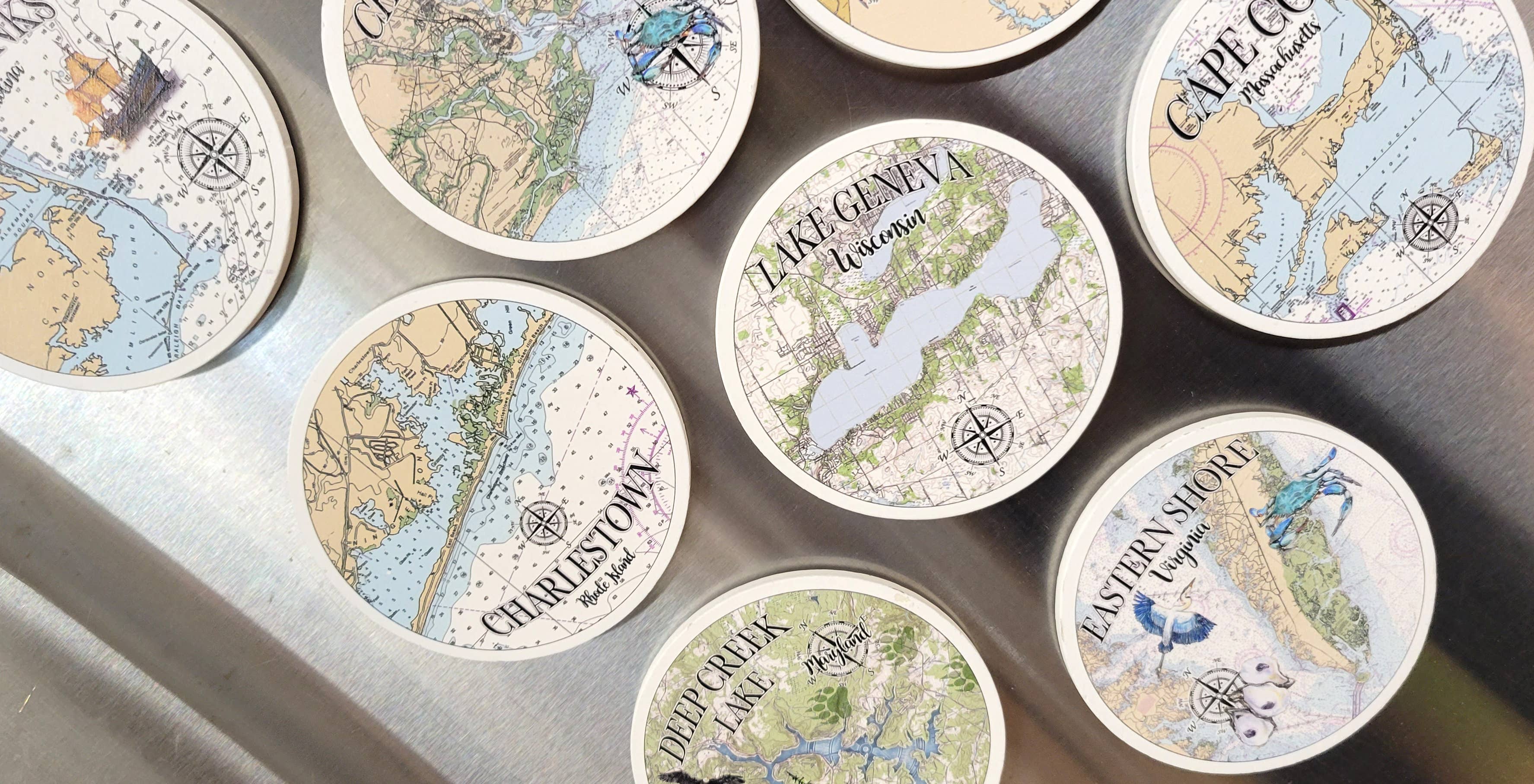 CUSTOM WOOD MAPS FOR ANY LOCATION!! -Map Mom was born behind the apron of a stay at home mom and the ramblings of the past art world still swirling around in her mind. Staying at home to care for her two young children Map Mom continued to seek ways to fill their world with art. Map Dad worked briskly behind the keys of a computer desk but craved deeply the smell of sawdust and the reprieve working with wood brought from the daily grind of office life. Surrounded by their Coastal Charleston life, “quiet time” resulted in therapeutic paintings of crabs, shrimp and a slew of ideas that had been locked away. The first map printed on wood was the result of a simple anniversary gift combining Map Moms love for personalized design and Maps Dads Love for the smell of wood. And the American Dream was born! Each Map Mom piece is made with love from our family to yours.