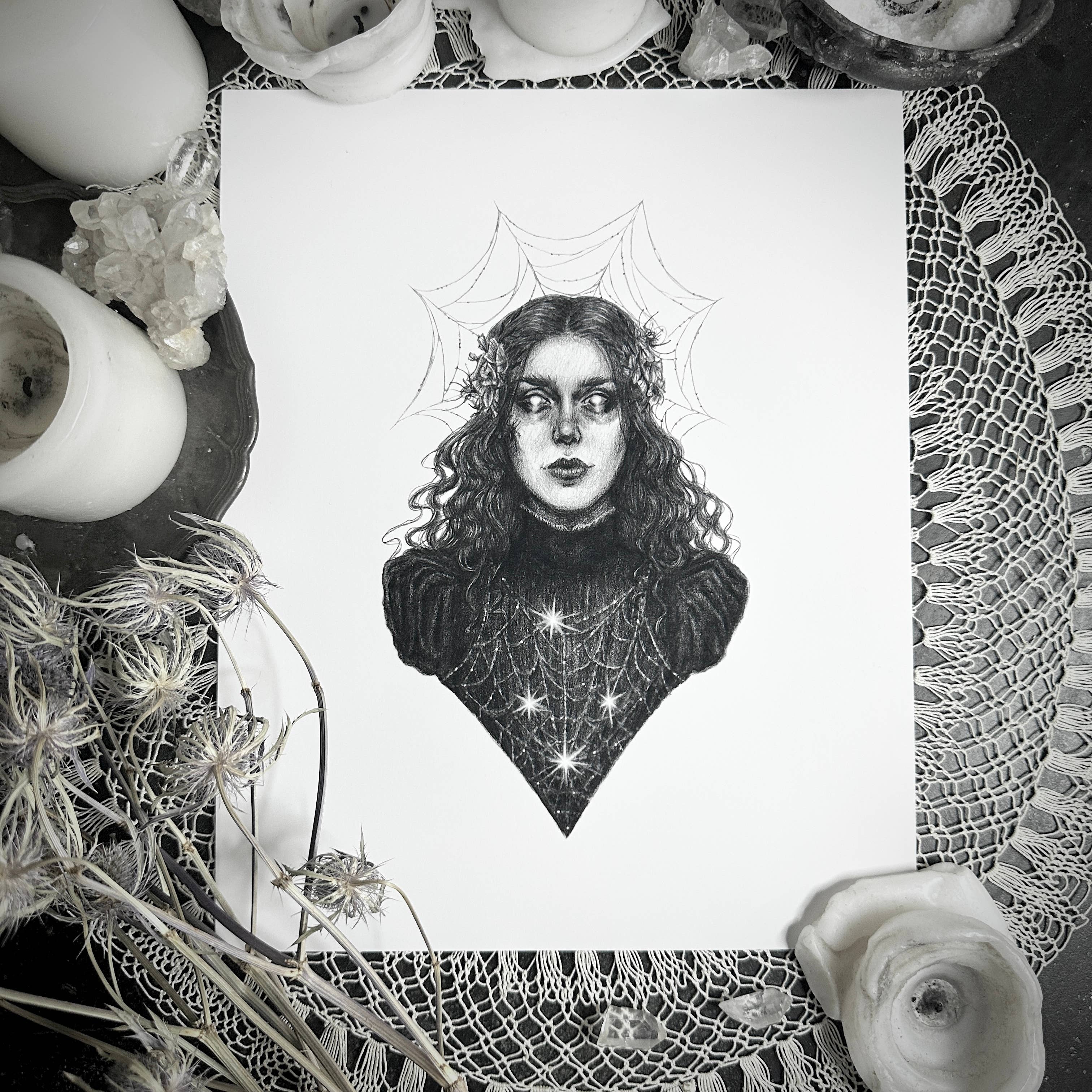 Caitlin McCarthy is an artist and illustrator currently living in Northern California. Since a young age Caitlin has been interested in magic and using art as a tool to explore it. Her work often features visions of dark dreamy women in the form of seers, goddesses, mystics, and witches. Channeling her fascination of Victorian sensibilities and the occult, her drawings invoke feelings of melancholy, and create an eerie, otherworldly atmosphere. Caitlin’s preferred medium is graphite on paper. She is the creator of The Dark Goddesses Oracle Deck. All of Caitlin's fine art prints are made in-house on quality archival matte paper and each order is put together and shipped with love and care.