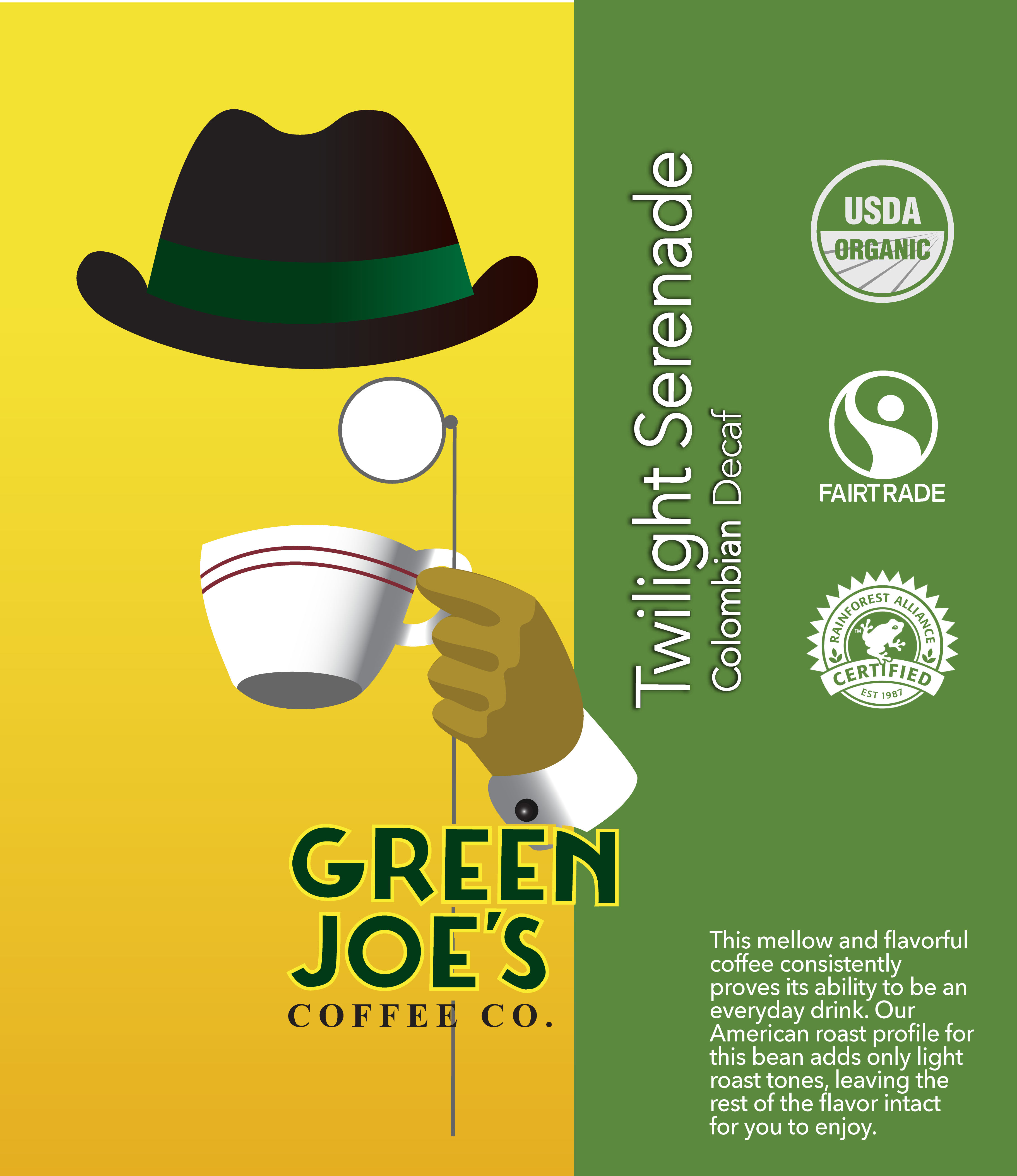 Green Joe's Coffee Company began because somewhere along the line, coffee companies that had once been great, no longer were, and no one seemed to notice. Taste expectations everywhere dropped, even though the industry was growing. Green Joe's Coffee Co. is proud to bring you our superior coffees, the taste of which you can always trust. You can rest assured that never again will you have to go back believing that average is great.