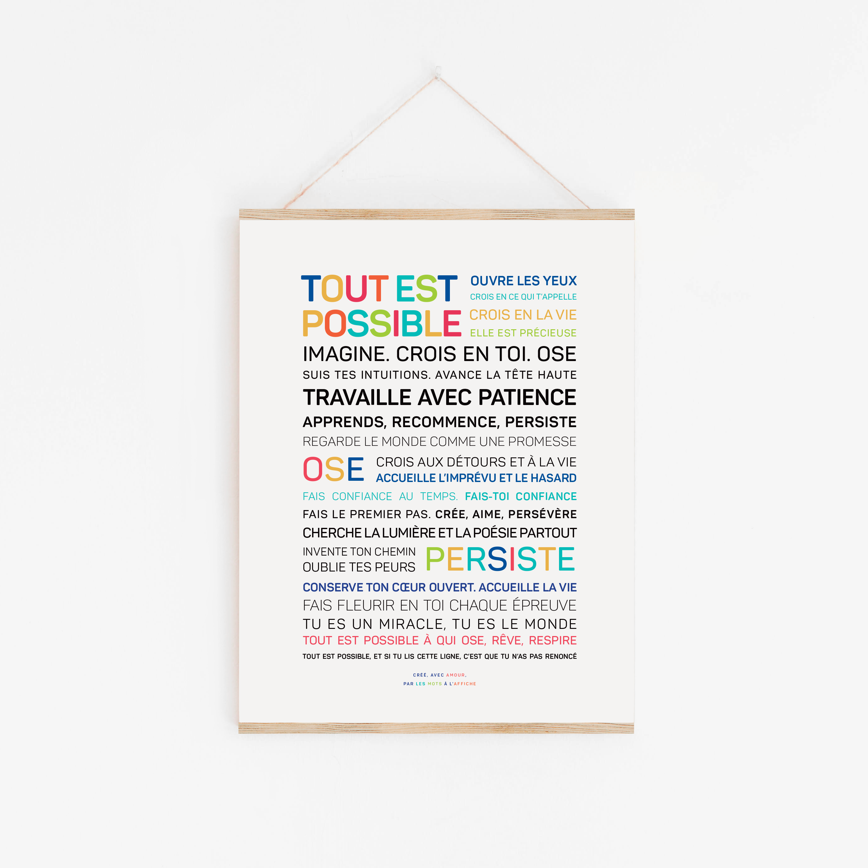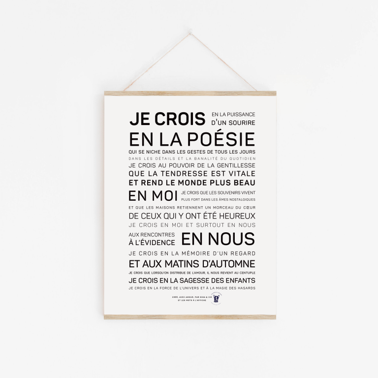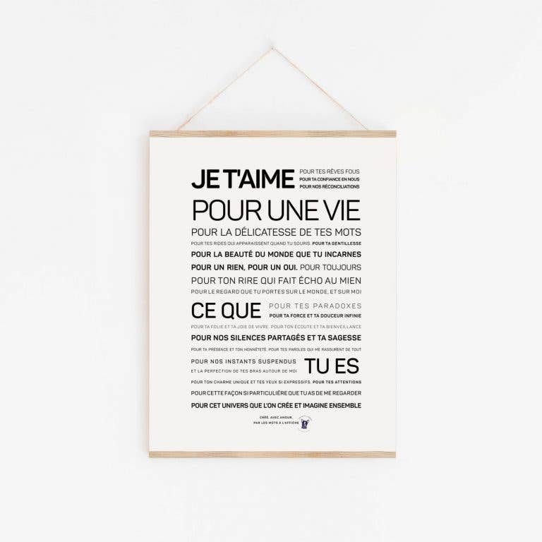 In December 2016, I offered the “Live” poster for sale. I put it up for sale without really thinking. As usual, I listened to my intuition. I wrote it, in Mexico, a few weeks before, during a somewhat complicated period, as a promise I was making to myself. I offered it for sale before ordering the printed version, telling myself that if no one ordered it, I would just have to not place the order. Finally, and a few days later, I had 250 copies printed - shaking a lot, yes. I sold all the copies in a few months. After that, I asked myself a lot about what I wanted to do, what really made me happy and whether I wanted to continue marketing this poster, or even create new posters. I gave myself a few months to think about it. Today, I know that I want to put the words on display: what to write, to format them and to tell myself that my words will come to life and accompany other people's dreams and perhaps also make them a little happy: that, in turn, would make me really happy. Please note that posters are sold without suspension. They can be ordered separately.