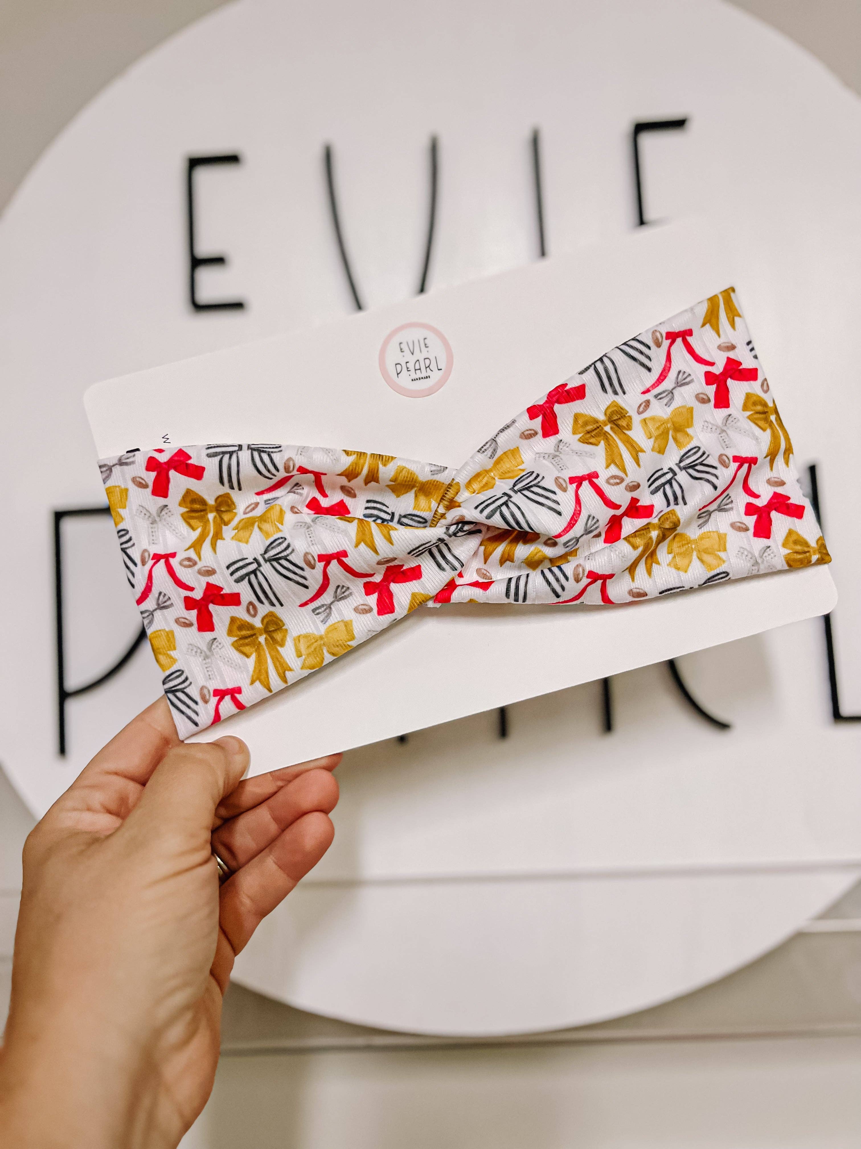 Hi there, my name is Jenni Shields. I am a Midwest mama, married to a firefighter and have three little babes. I started my business about four years ago. It was shortly after my daughter was diagnosed with type one diabetes. She was starting school full-time and I was a ball of nerves. I had to find some thing that I could do to take my mind off of worrying about her at all times. So I channeled my creativity to help me cope. Ever since Evie was a newborn I made her bows and it brought me so much joy so I decided to make them to sell this time. My shop is named after her Evie Pearl Handmade. I continued to keep designing and sewing new bows for every holiday. That lead me to starting my own Etsy shop, which lead me to launching my monthly bow subscription then designing a beautiful new website, attending large events, creating my own booth storefront, putting my products in stores and now selling wholesale. This shop has been the biggest blessing for our family and I’m so glad that I took a huge leap of faith four years ago when I did. It has continued to grow in ways I never expected. We thrive off of beautiful handmade products that you can wear for years to come. We hope you have a wonderful experience with our little shop because amazing customer service is one area we strive to be the best in. Thank you for supporting my small shop.