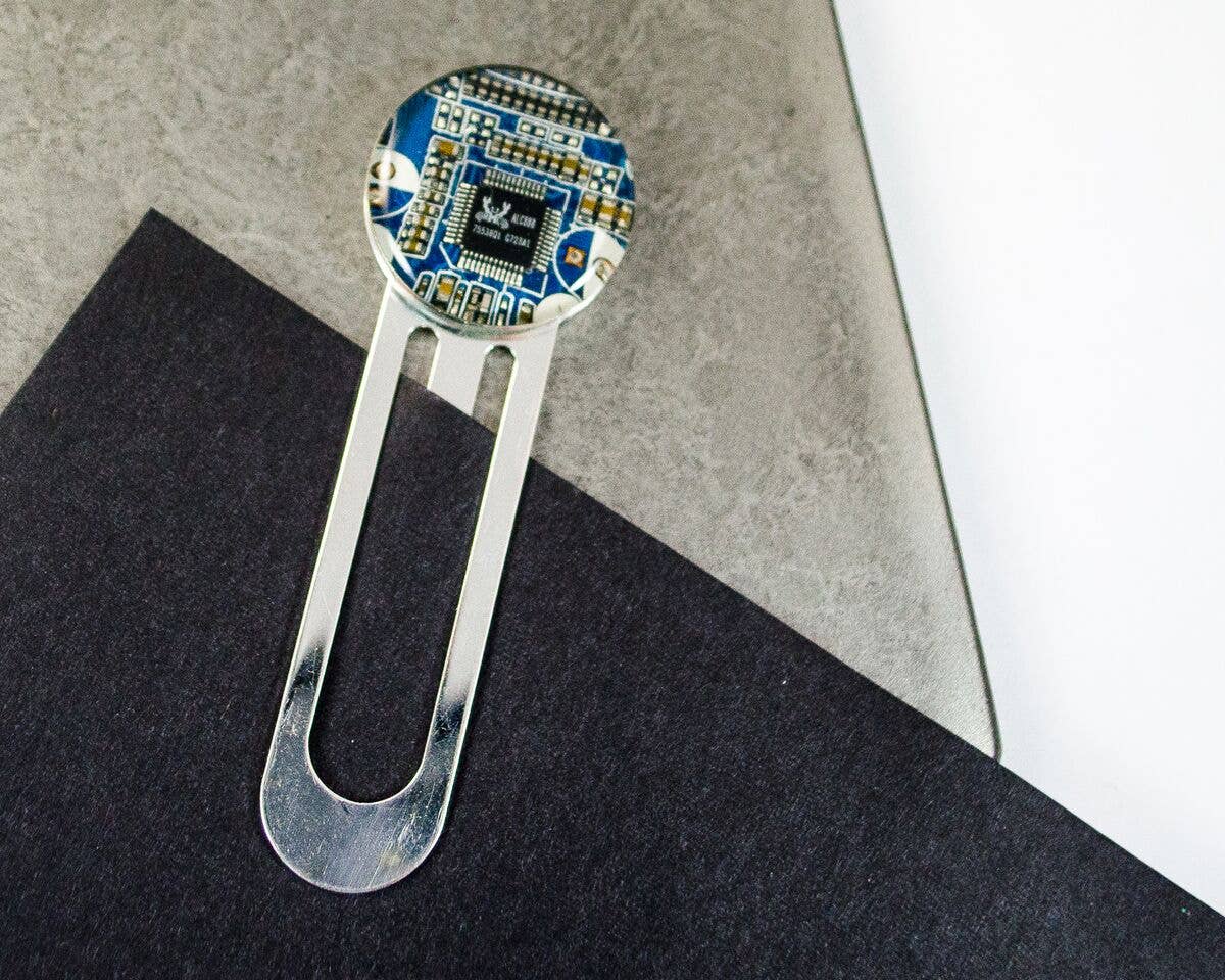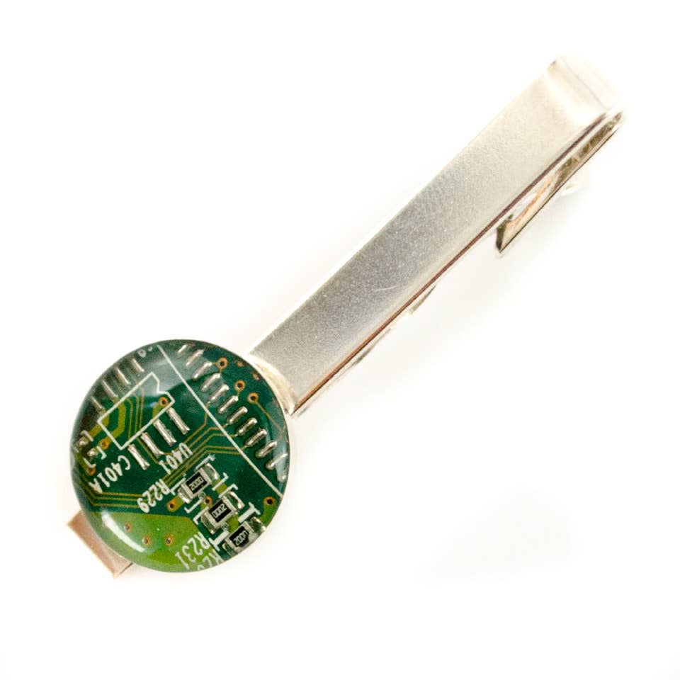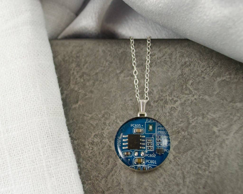 Amanda Preske of Circuit Breaker Labs creates products with simple forms to best highlight the aesthetics of e-waste (circuit boards, resistors, and other electronic scrap), while complimenting the geometric nature of technological items. She transforms this e-waste into contemporary jewelry & accessories, home gift items, and men’s accessories. Her work is enhanced by the use of epoxy resin to add depth and she often works with recycled silver to further her sustainability endeavors.