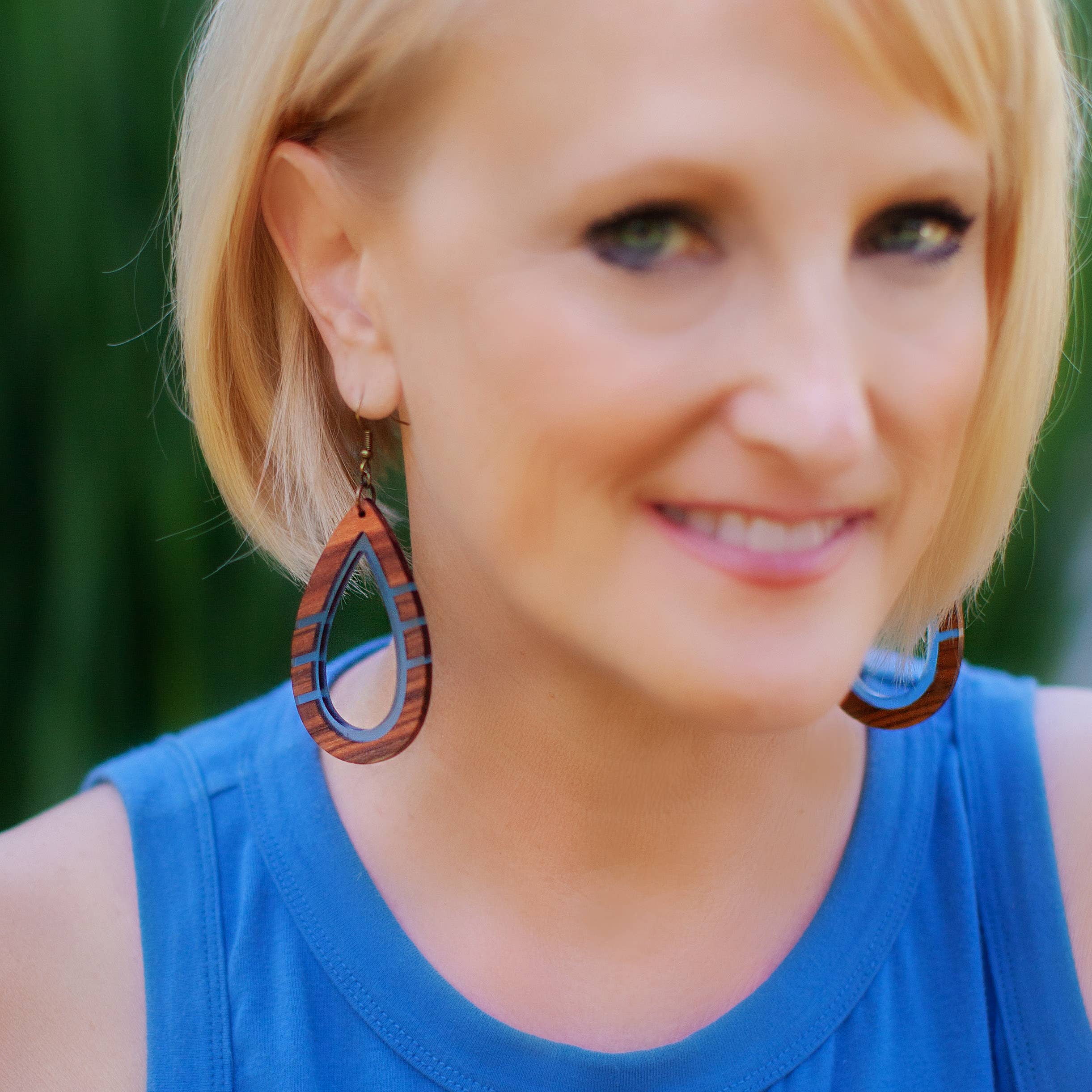 Hi! I'm Dionne Pedersen, artist, designer, wife, stepmom of 2, and fashion lover. I just fell into this wonderful venture thanks to my husband and his business partner. They have a Shutter Company in NC. After a layoff in February 2020 due to Covid, we were brainstorming ways to repurpose the wood in the shop, so that it is not wasted. We came up with making jewelry. We started playing around with designs, colors, and the different woods to create some beautiful designs. After brainstorming lots of names, the name Second Nature Jewelry stuck. After a lot of prayers, I took a leap of faith and went to my first Atlanta Gift Market in January 2021. So far, our earrings are in about 130 stores across the US. This new career is truly a blessing. I found something I love and hopefully you will love it too.