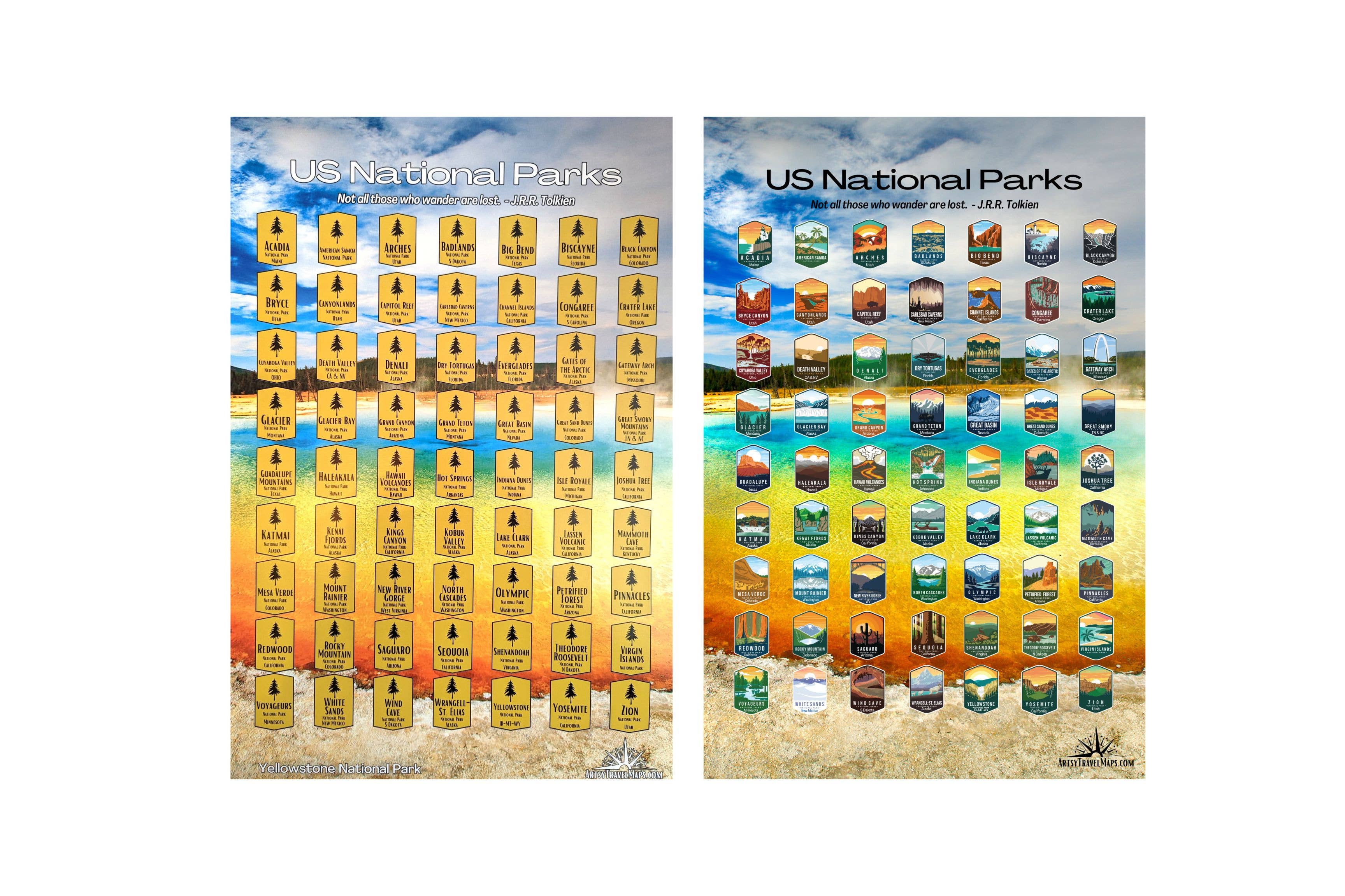 Jennifer has always had a passion for the outdoors. She combined that passion with her digital art skills and made a creative way to track your travels - scratch-off maps of the United States and US National Parks. Like a giant Lottery Ticket, as you visit a Park or State, scratch-off the digital foil to uncover different artsy map themes such as State Butterflies, State Birds, State Flowers, State Capitol Buildings, State Symbols, State Welcome Signs and all 63 National Parks. Makes for a fun and unique way to track your travels and they make great gifts.