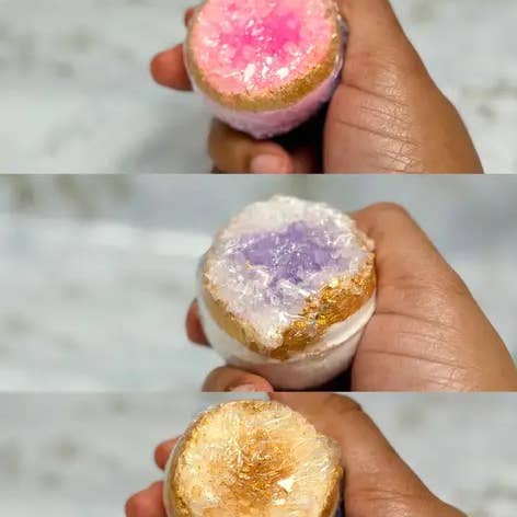 We are a WBEC-certified business creating premium bath products. Our premium bath bombs are hand-designed and hand-painted to look like beautiful geode crystal rocks. Each bath bomb is made with essential or fragrance oils, organic coconut oil, and 100% vegan, all-natural ingredients. Our premium shower steamers are hand-designed and hand-molded with real dried flowers. We pride ourselves in crafting the best bath products to increase your business revenue. Each bath bomb comes individually wrapped in biodegradable plastic shelf ready for your label. If you are located in Arizona, Southern California, or Vegas we offer free delivery for qualifying orders. Please direct message us for order minimums for free delivery. Our premium products are perfect for Hotels, Resorts, Airbnb's, Spa's, Nail Salon's, Wellness Centers, Retail stores, E-commerce stores, Gyms, Gift Shops, and more. We are here to serve you and your clientele.